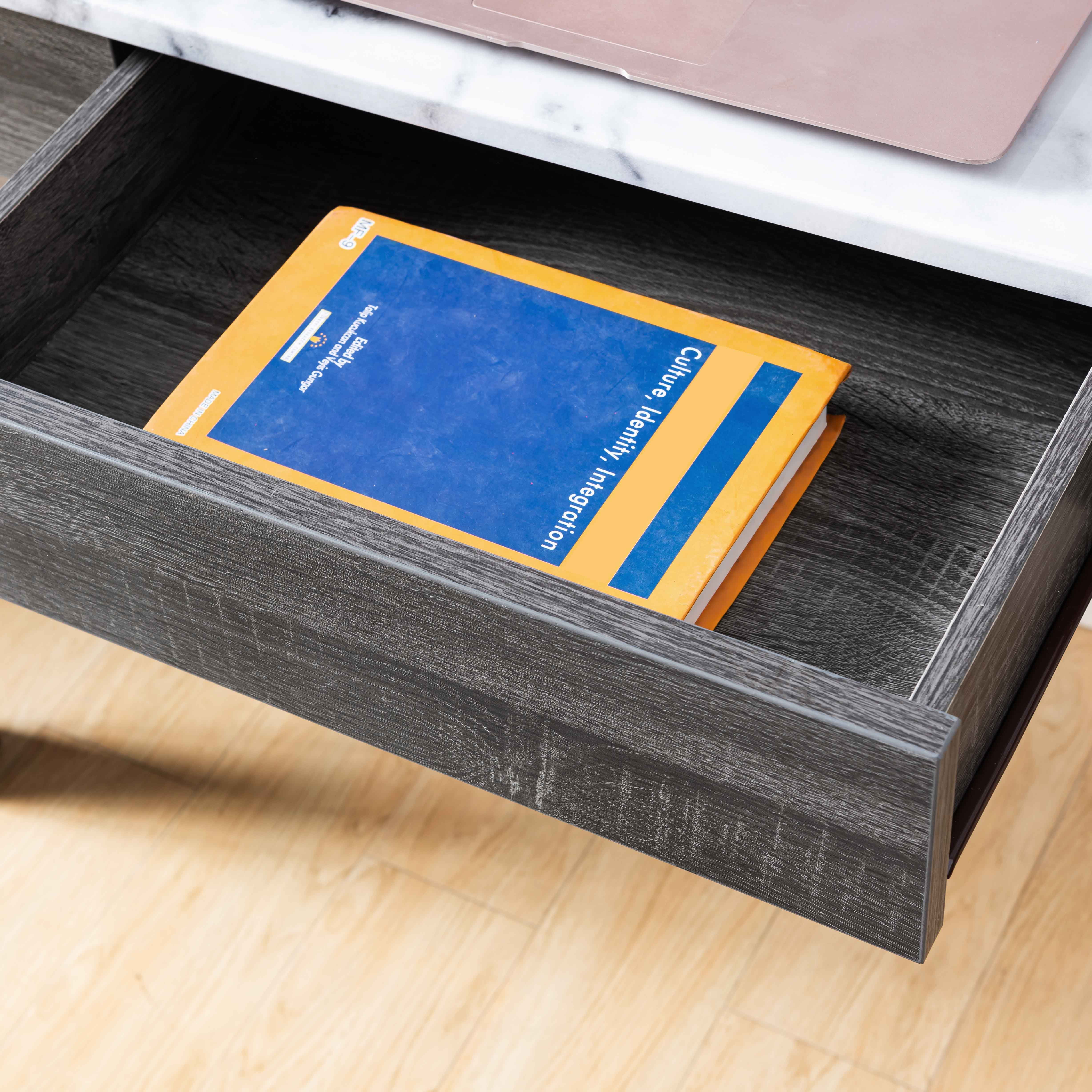 ICE ARMOR Faux Marble White & Distressed Grey Home Office Desk with Drawer