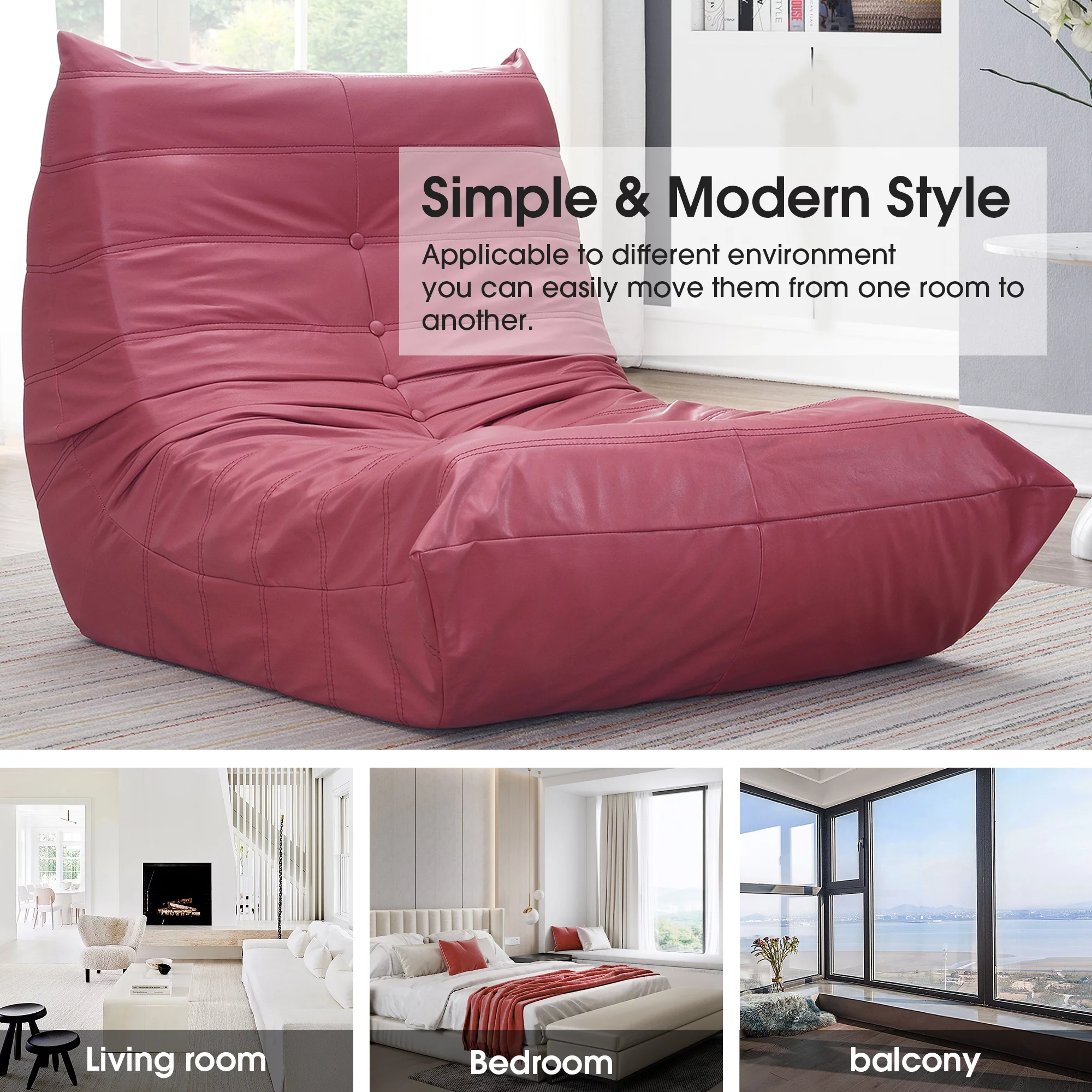 Comfy Oversized Lazy Sofa, Modern Armless Lounge Chair with Backrest Retro Single-Seat , 100% Sponge-Filled Sofa for Living Room, Bedroom, Salon, Office,3 Colors
