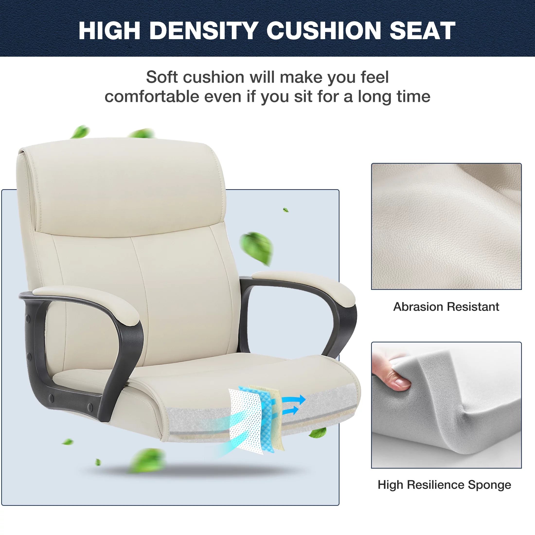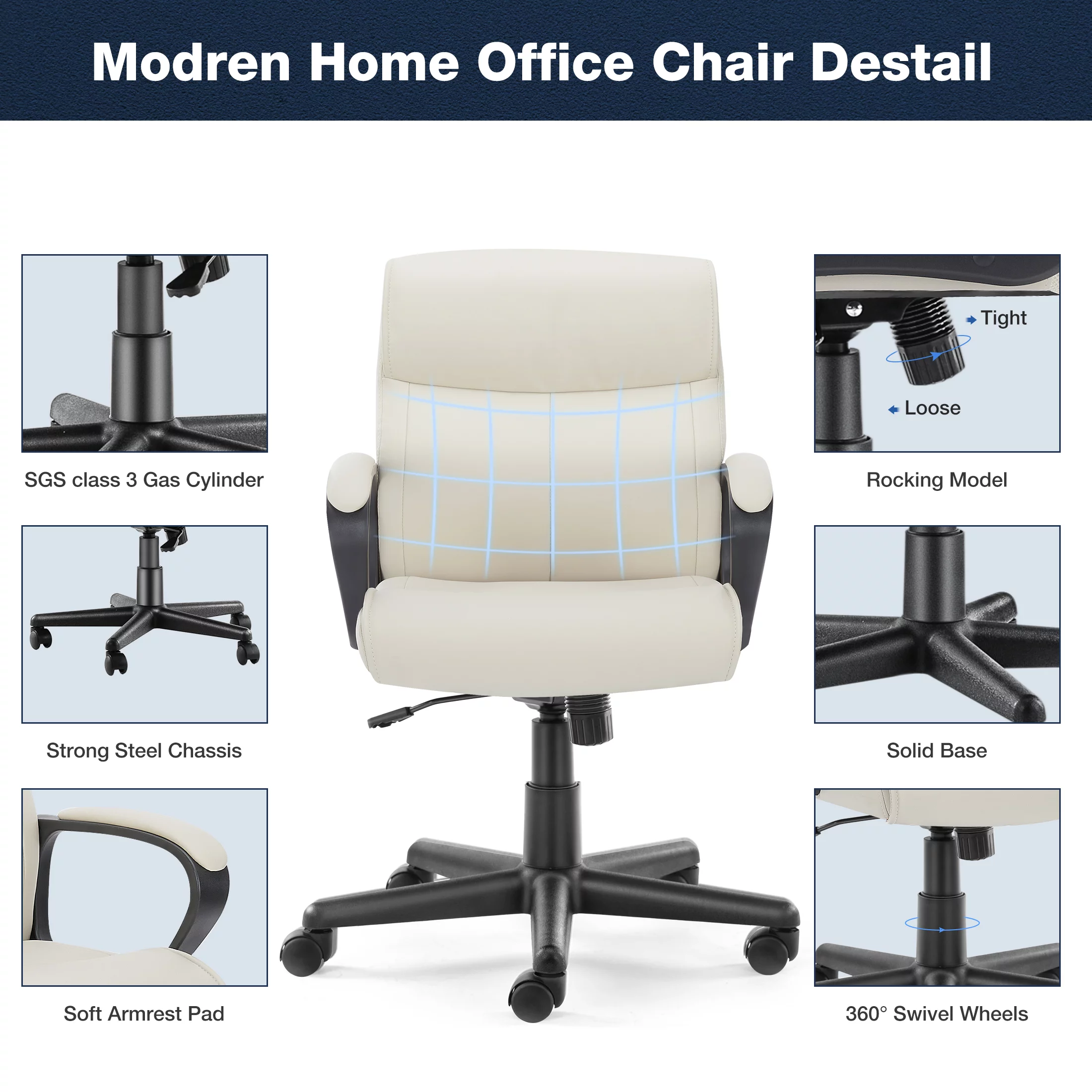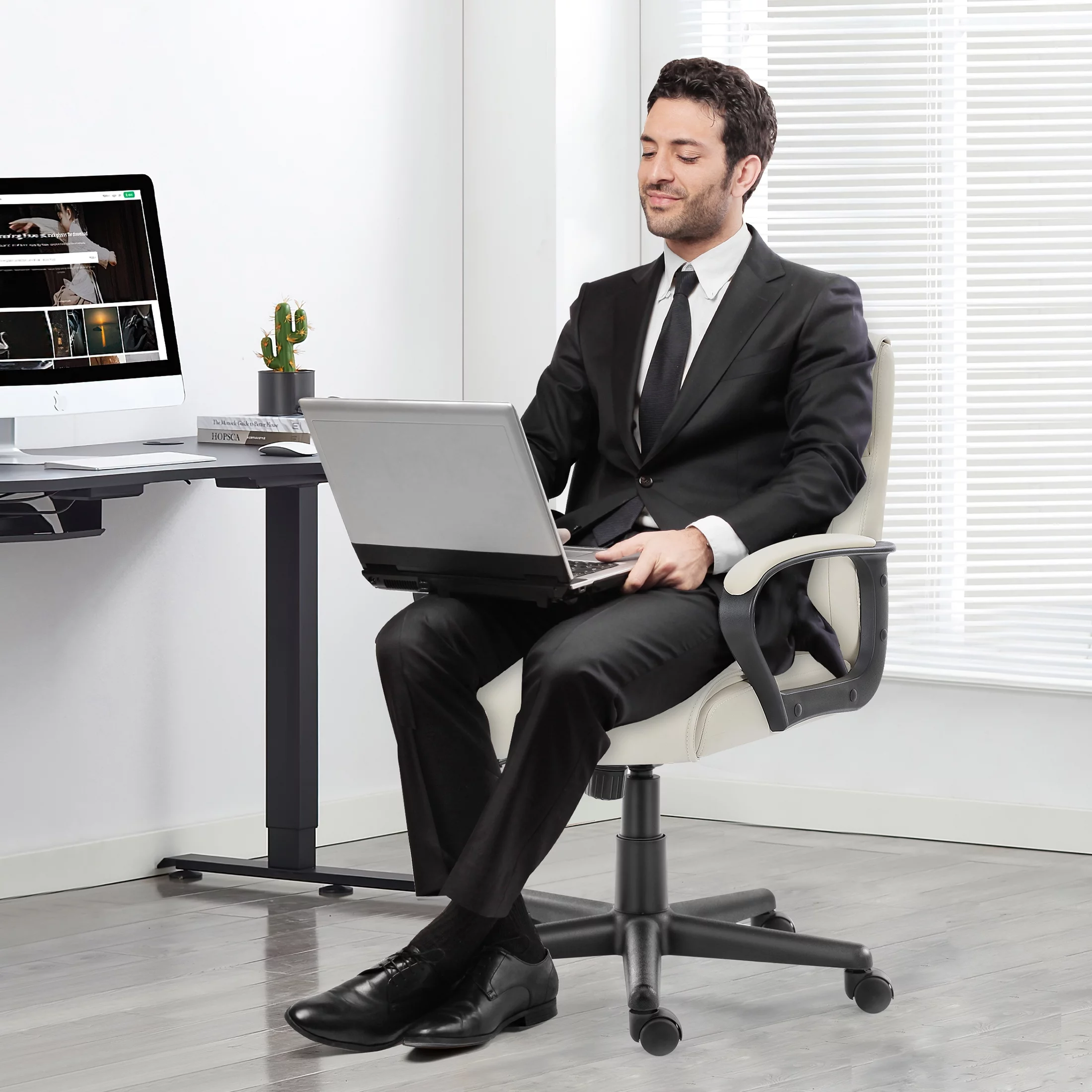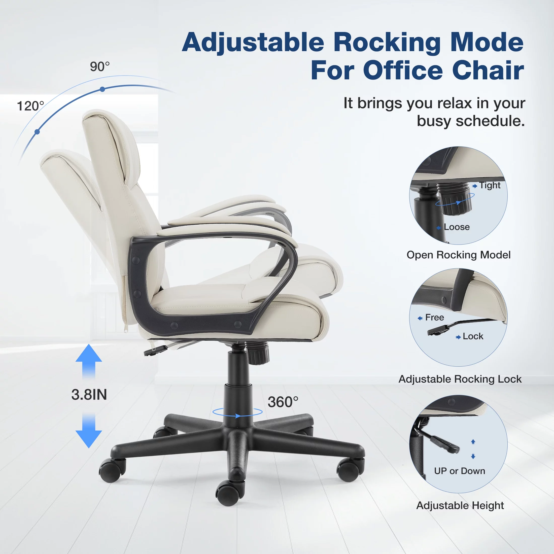 Yoyomax PU Leather Office Chair, Adjustable Mid-Back Computer Desk Chair, Swivel Executive Desk Chair with Padded Armrests for Home Office, White