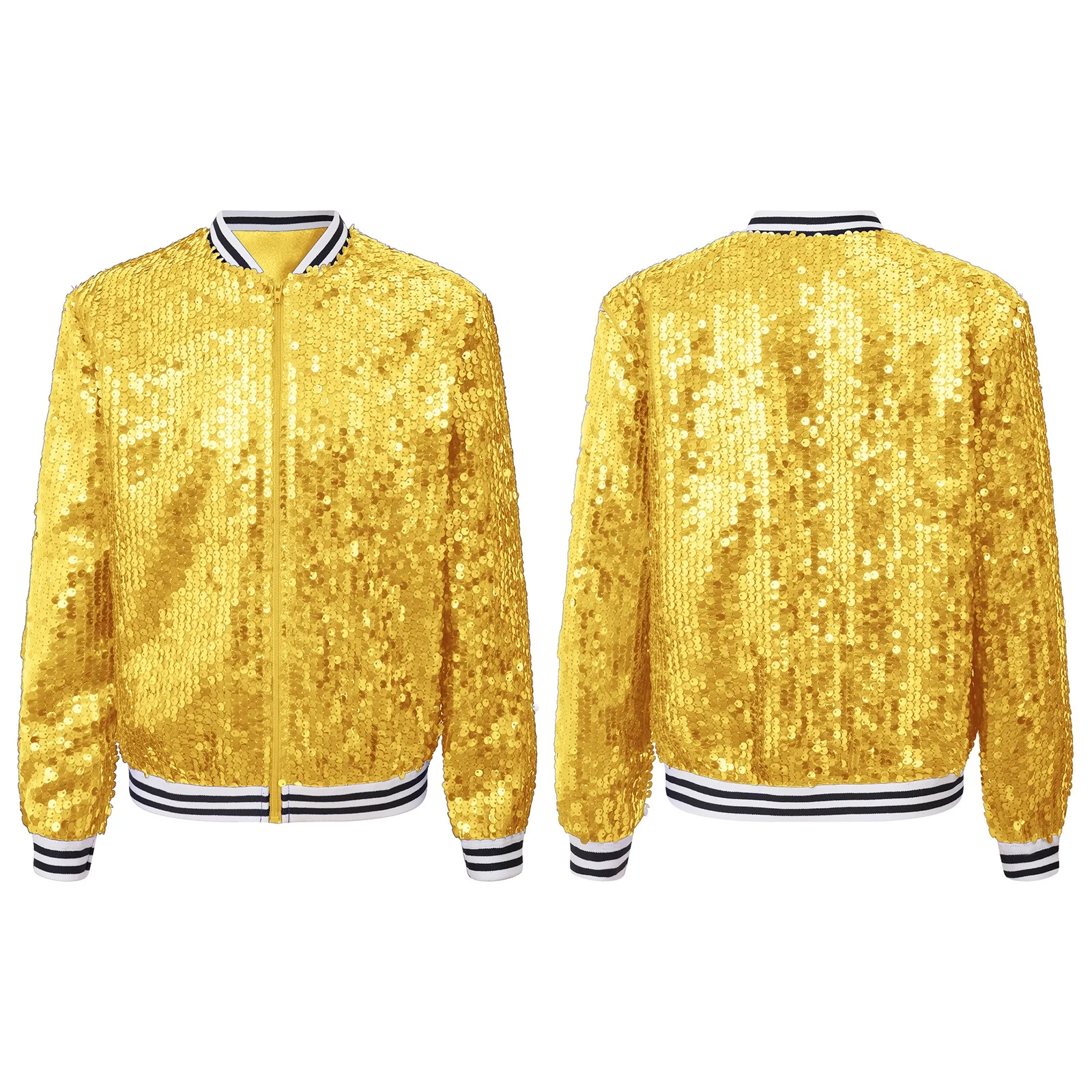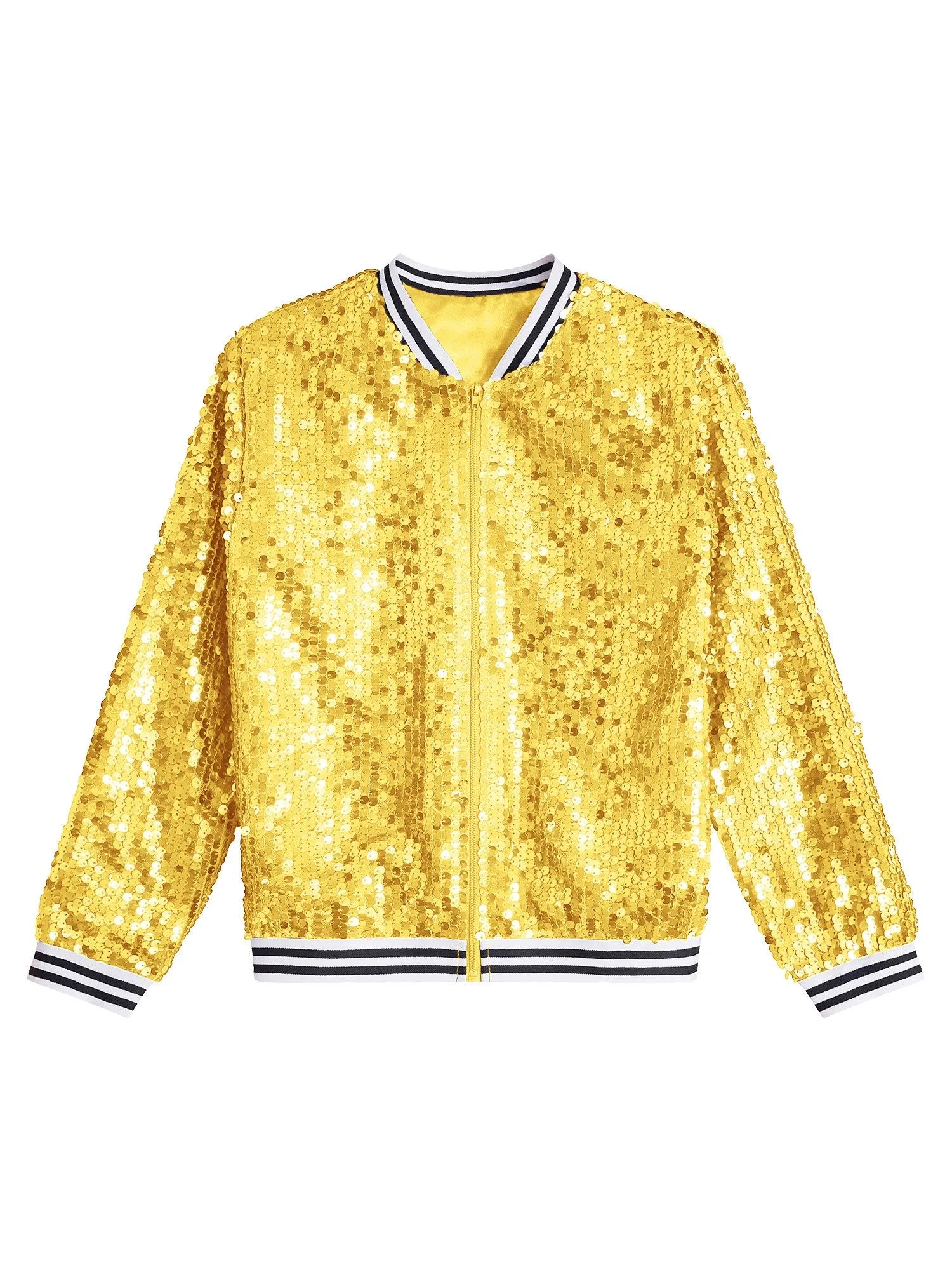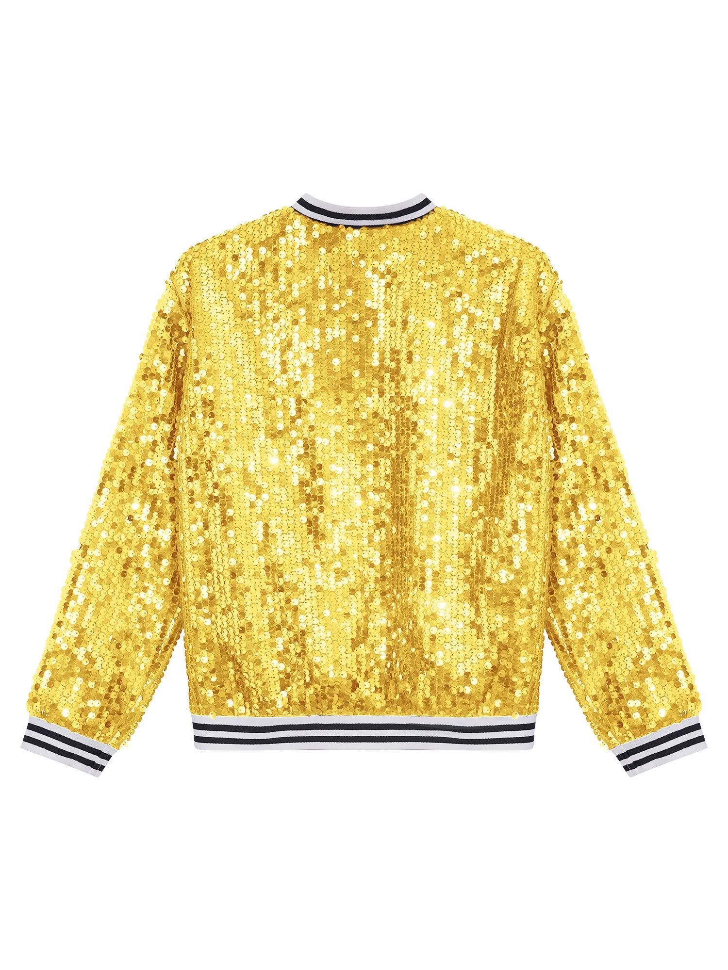 iEFiEL Girls Sparkle Bomber Flight Jacket Shiny Sequins Zipper Hip Hop Jazz Dance Performance Coat Tops Gold 14
