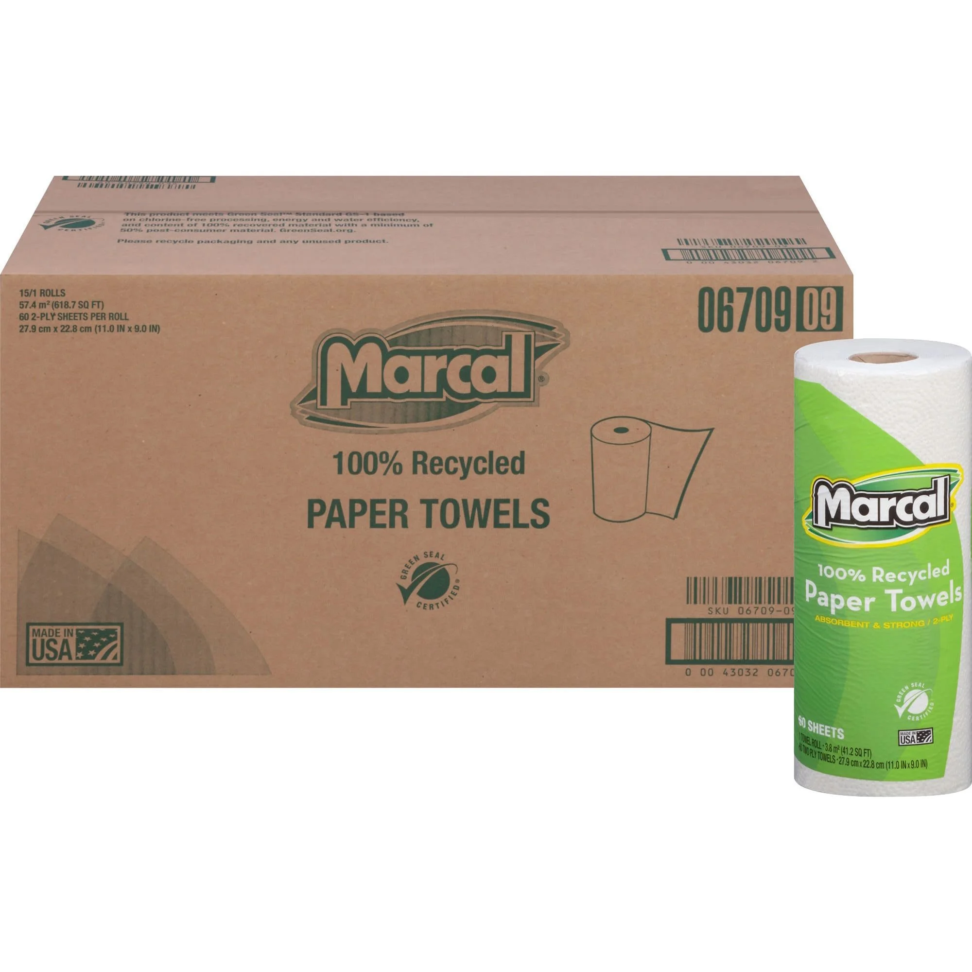 Marcal Small Steps 6709 100% Premium Recycled Roll Towels, 9 x 11, 60 Sheets/Roll, 15/Carton