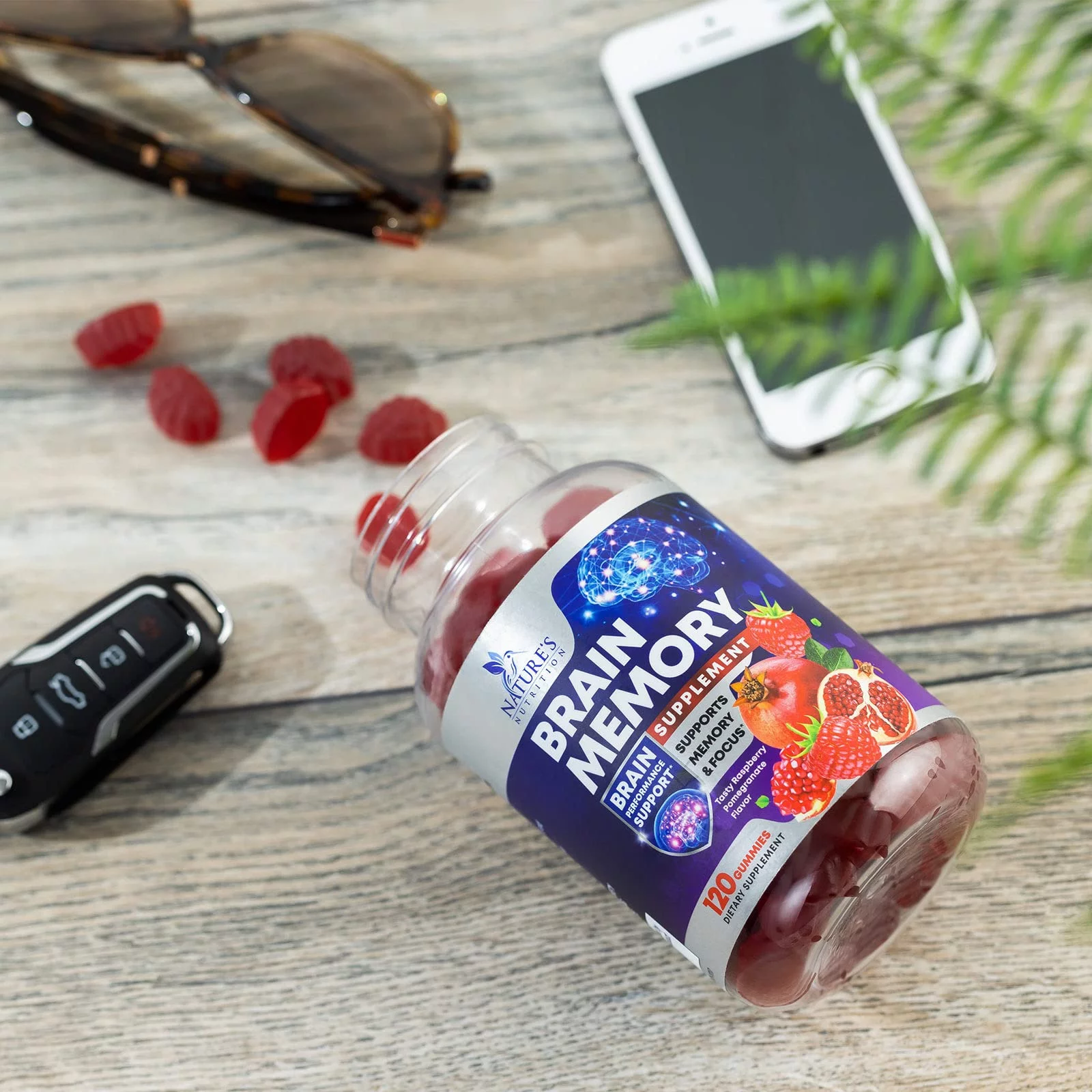 Nootropic Brain Booster Memory Supplement Gummy for Concentration & Mental Focus - Brain Health & Energy with B12, Phosphatidylserine, Coffee Extract, Nature's Vitamins for Men & Women - 120 Gummies