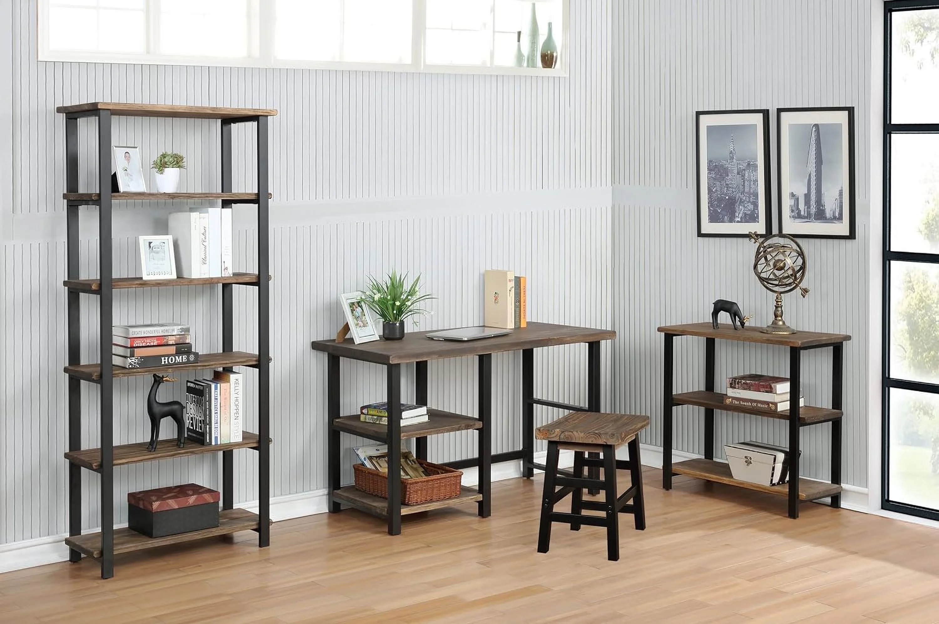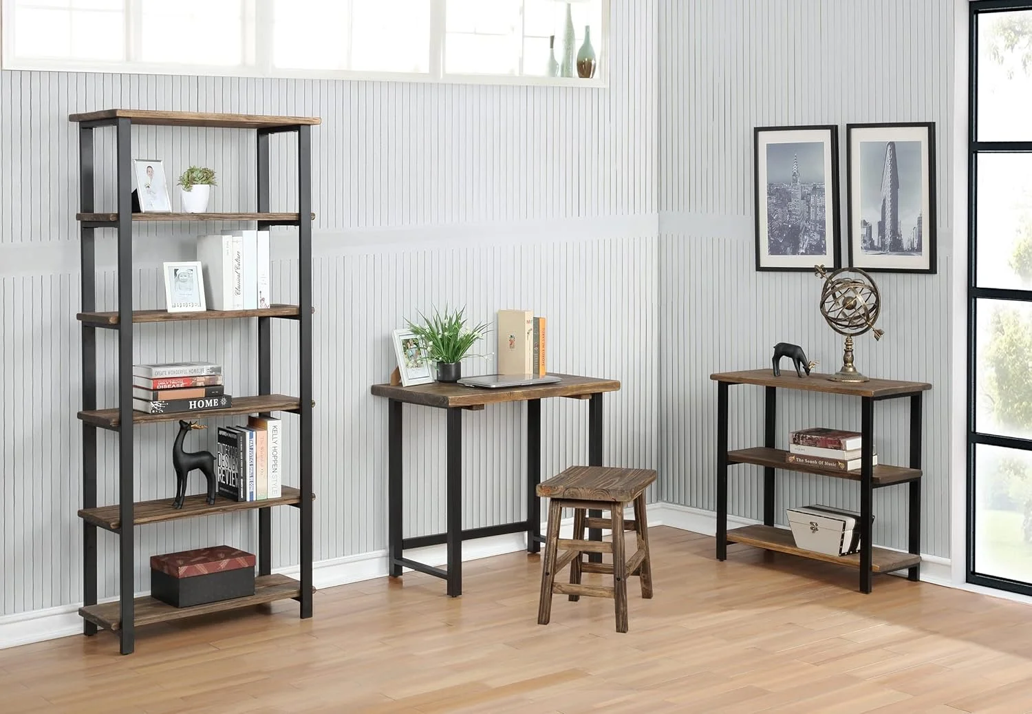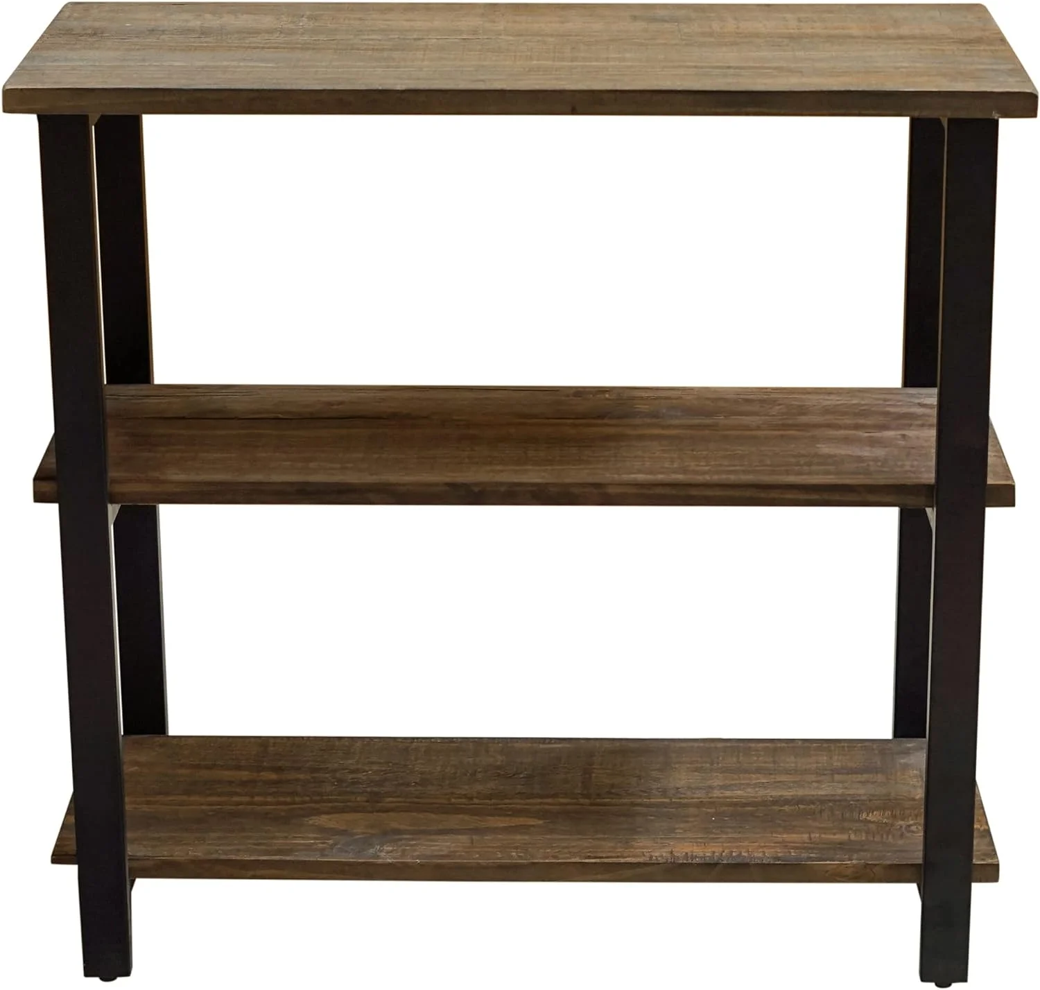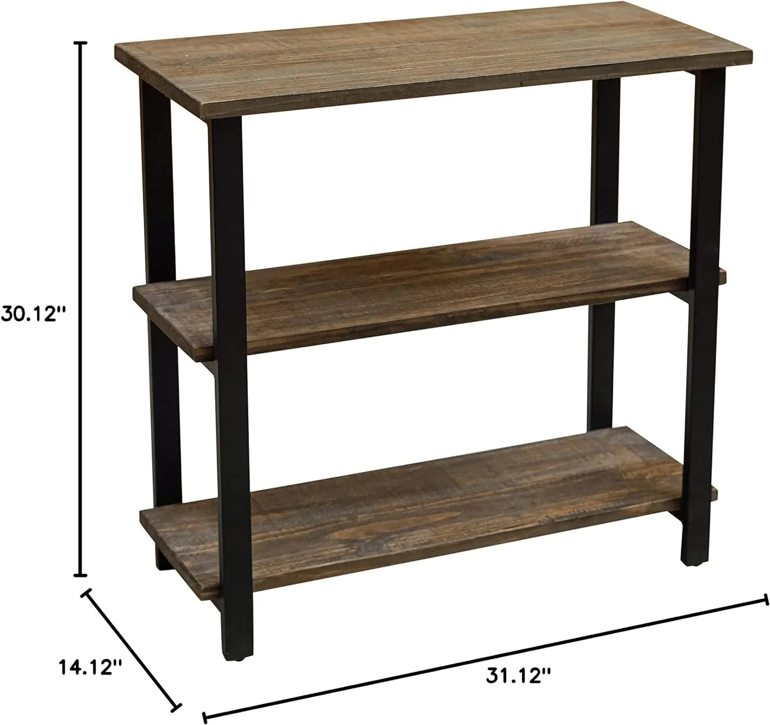 Pomona 31" Tall 2-Tier Solid Wood And Metal Under-Window Bookcase, Rustic Reclaimed Wood Design, Industrial, Stylish, Durable Lacquer Finish, Living Room, Home Office, Bedroom