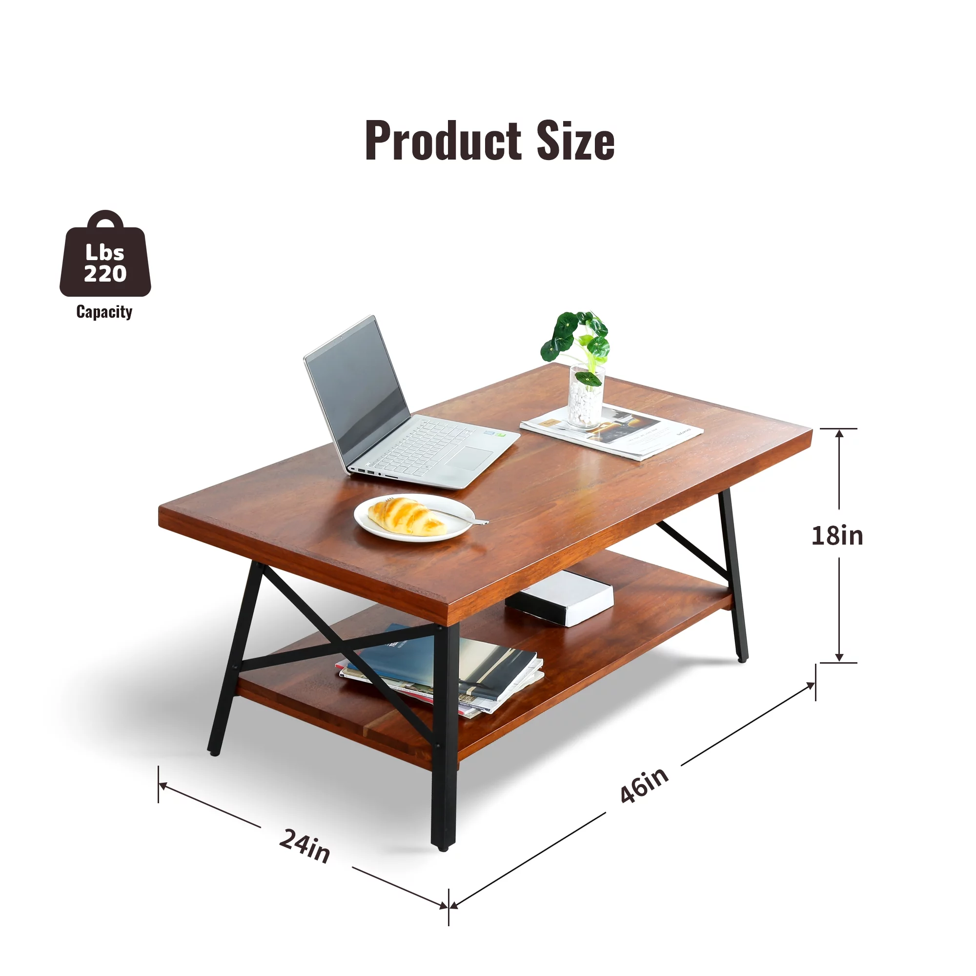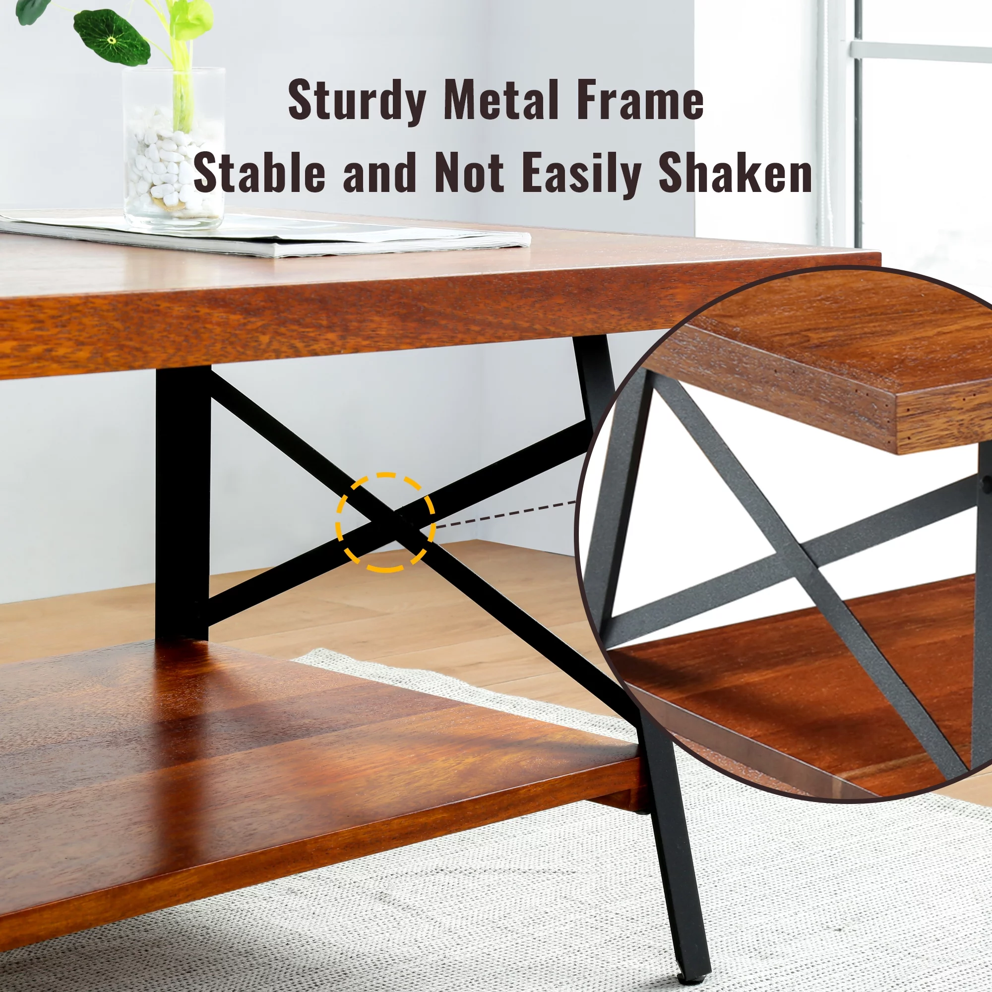 GrandRest 46" Rectangle Coffee Table with Solid Wood Top & Steel Legs