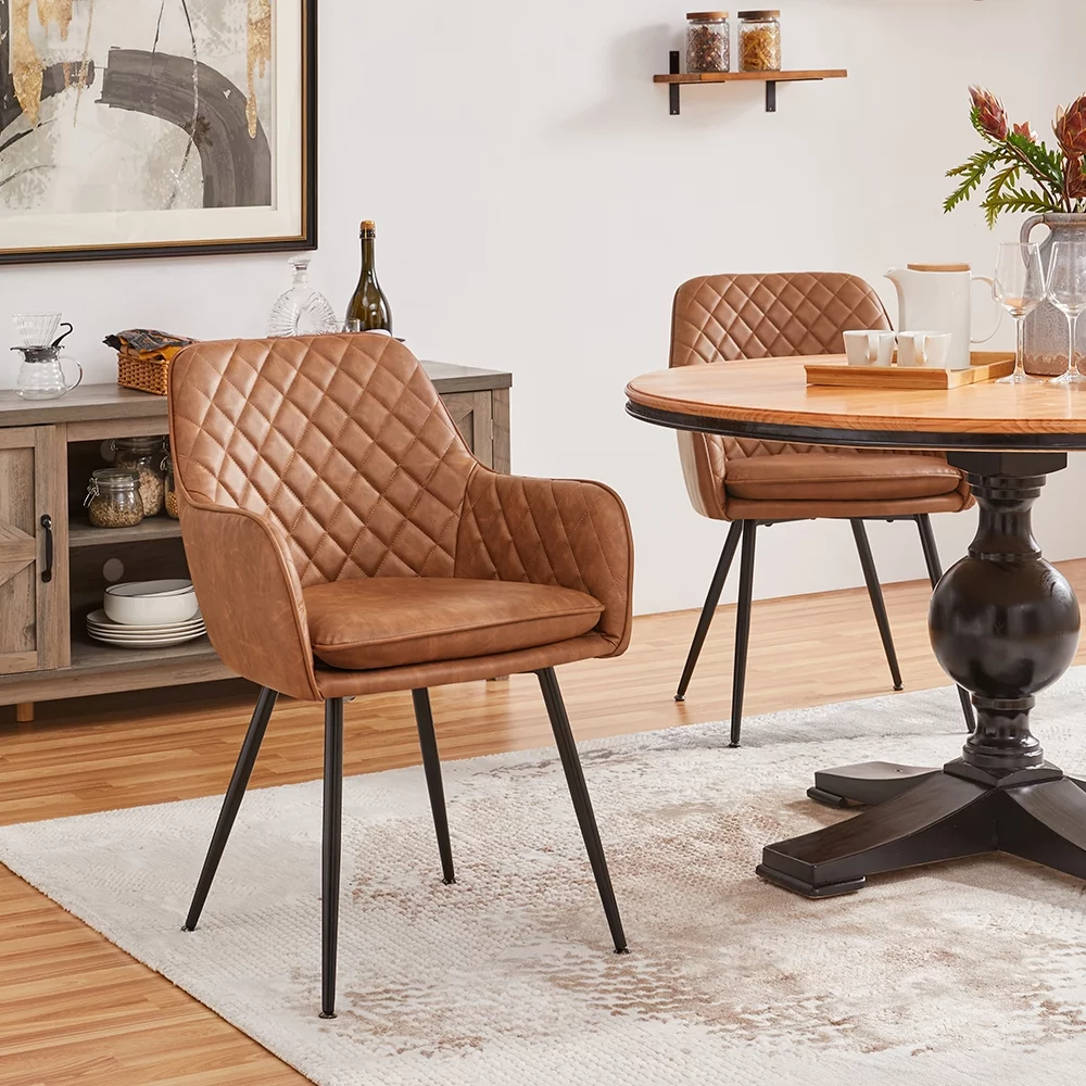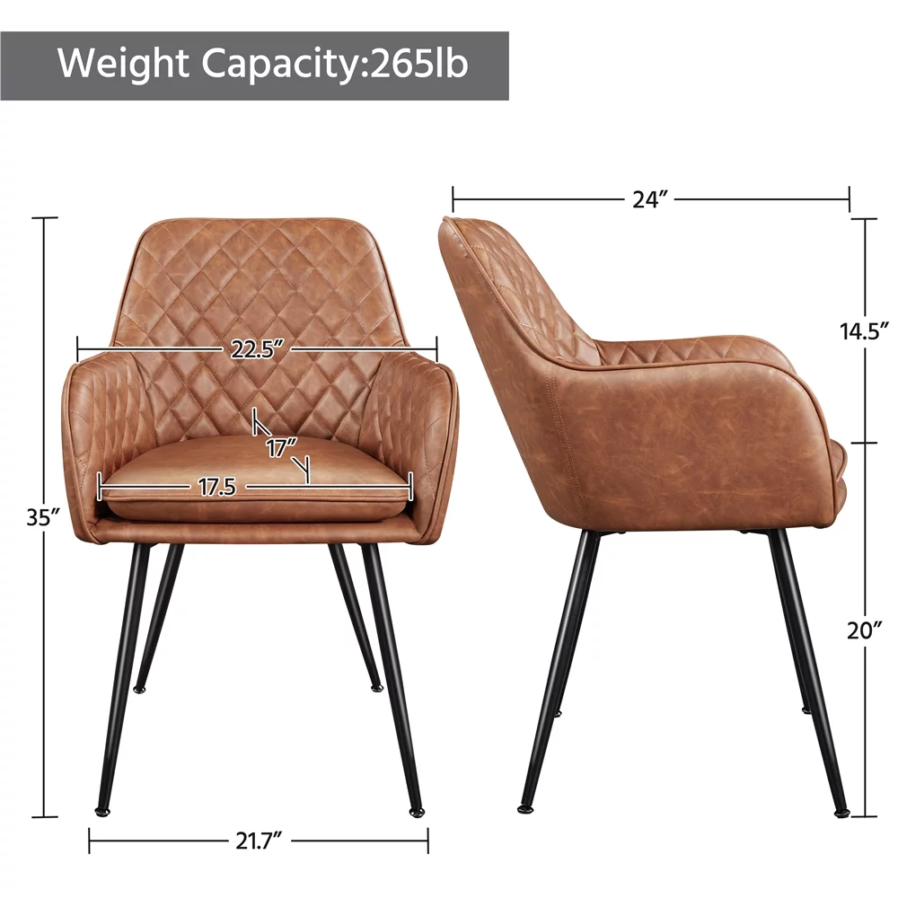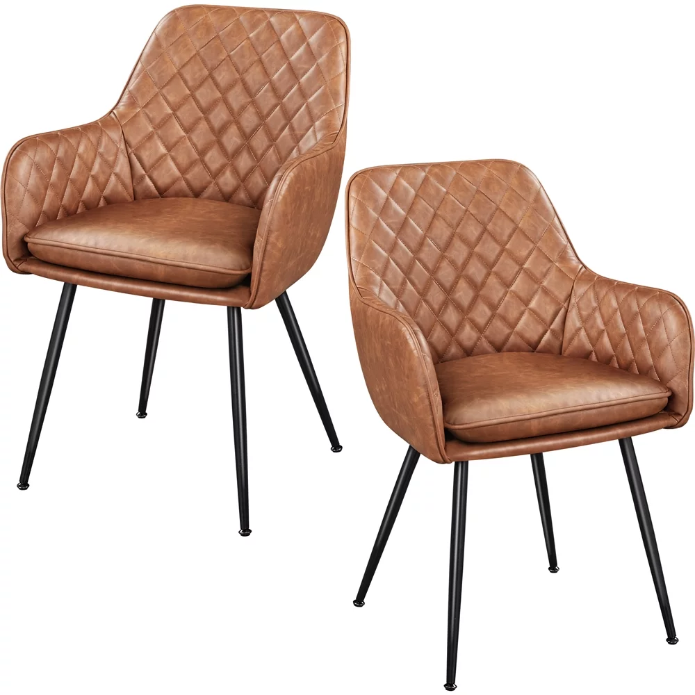 SMILE MART Set of 2 Modern Tufted Dining Chairs with Backrest/Armrest for Living Room Kitchen, Brown