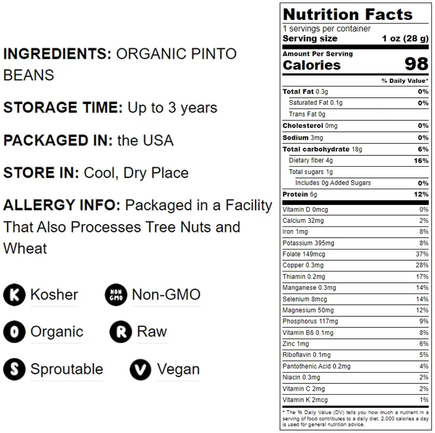 Organic Pinto Beans, 5 Pounds — Non-GMO, Sproutable, Kosher, Raw, Vegan — by Food to Live