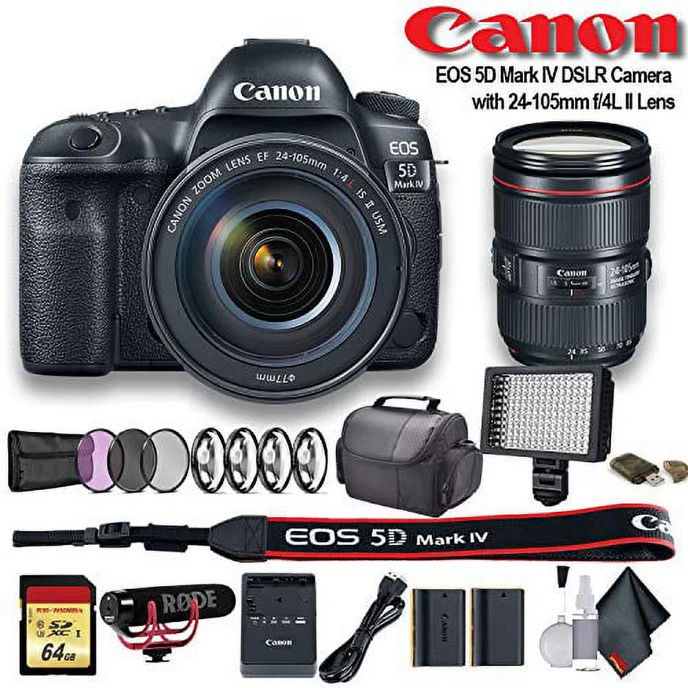 Canon EOS 5D Mark IV DSLR Camera with 24-105mm f/4L II Lens (Intl Model) W/ Bag, Extra Battery, LED Light, Mic, Filters and More - Advanced Bundle
