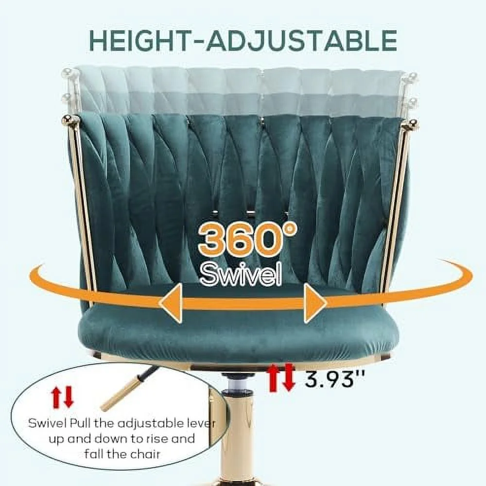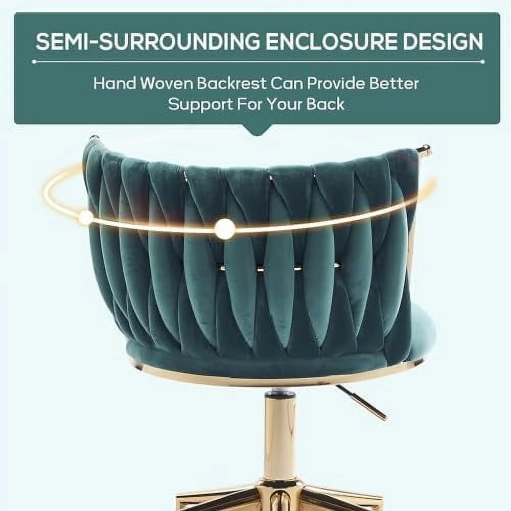 KHBIULIFE Velvet Office Desk Chair with Woven Backrest ° Swivel & Height Adjustable Task Chairs Makeup Chair Computer Chair with Stainless Base and 5 Wheels (Rose Red)