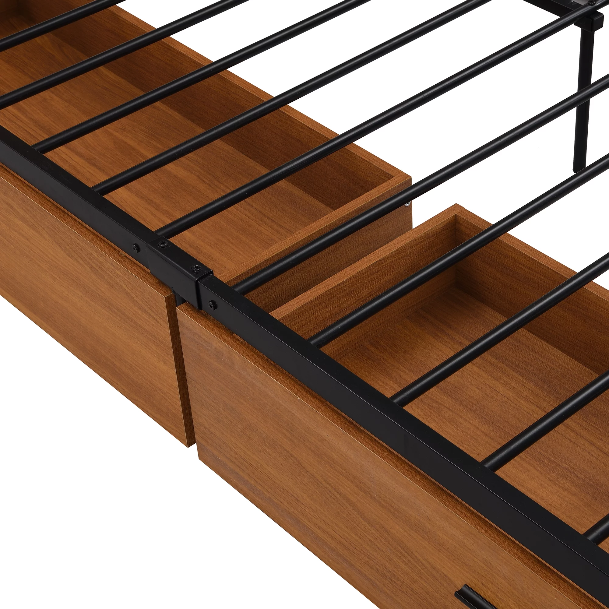 BTMWAY Metal Queen Bed Frame, Queen Size Platform Bed Frames with Wood Headboard, 2 Drawers, Sockets and USB Ports for Bedroom, No Box Spring Needed, Black