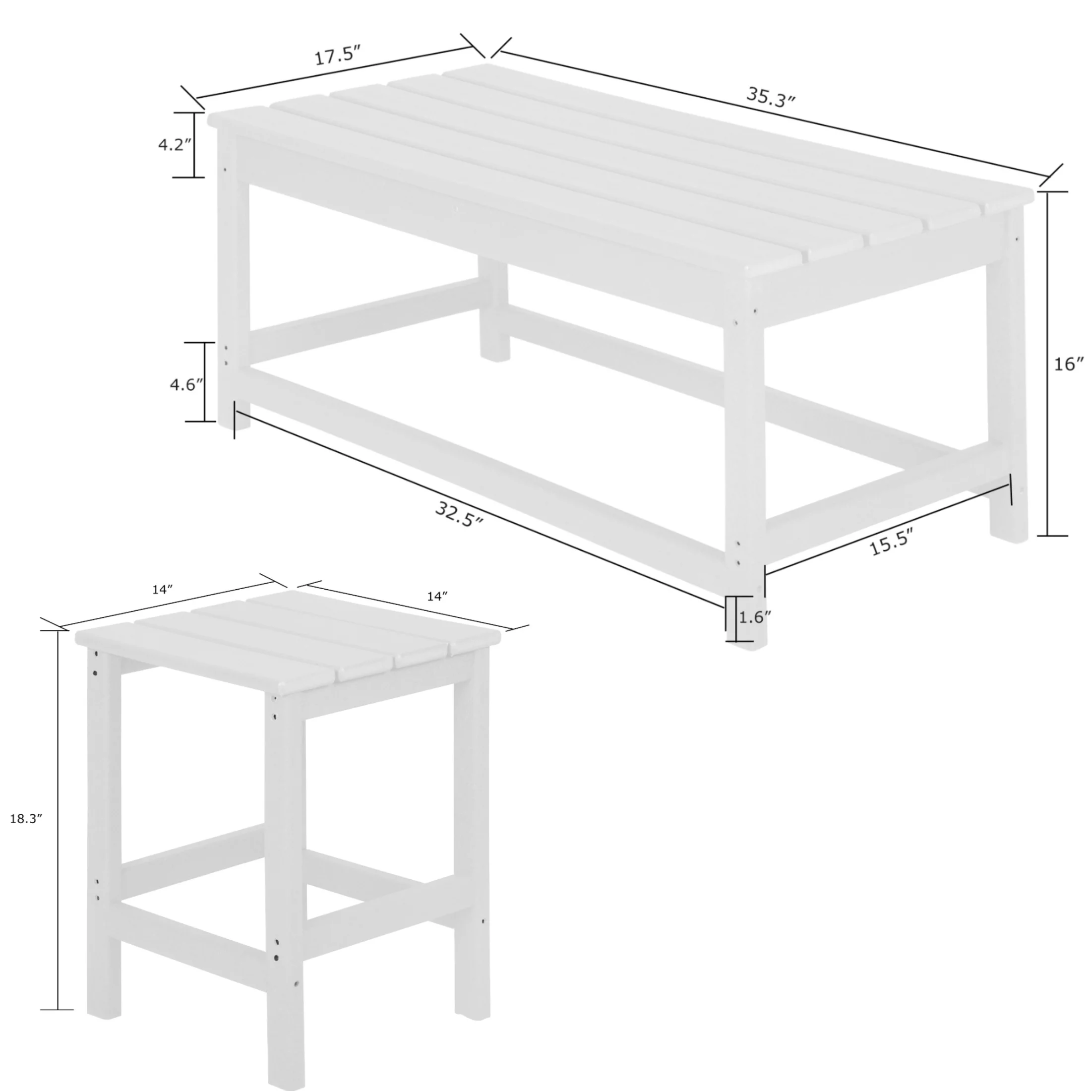 WestinTrends Malibu 3-Pieces Outdoor Table Set, Includes 1 Coffee Table and 2 Side Table, All Weather Poly Lumber Adirondack Patio Furniture Set, Weathered Wood