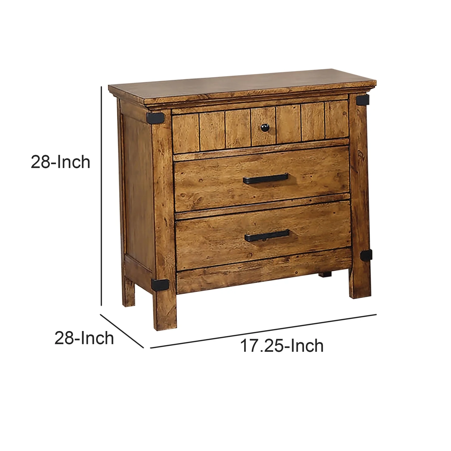 Maykoosh Country Cottage Wooden Nightstand With 3 Drawers, Warm Honey Brown