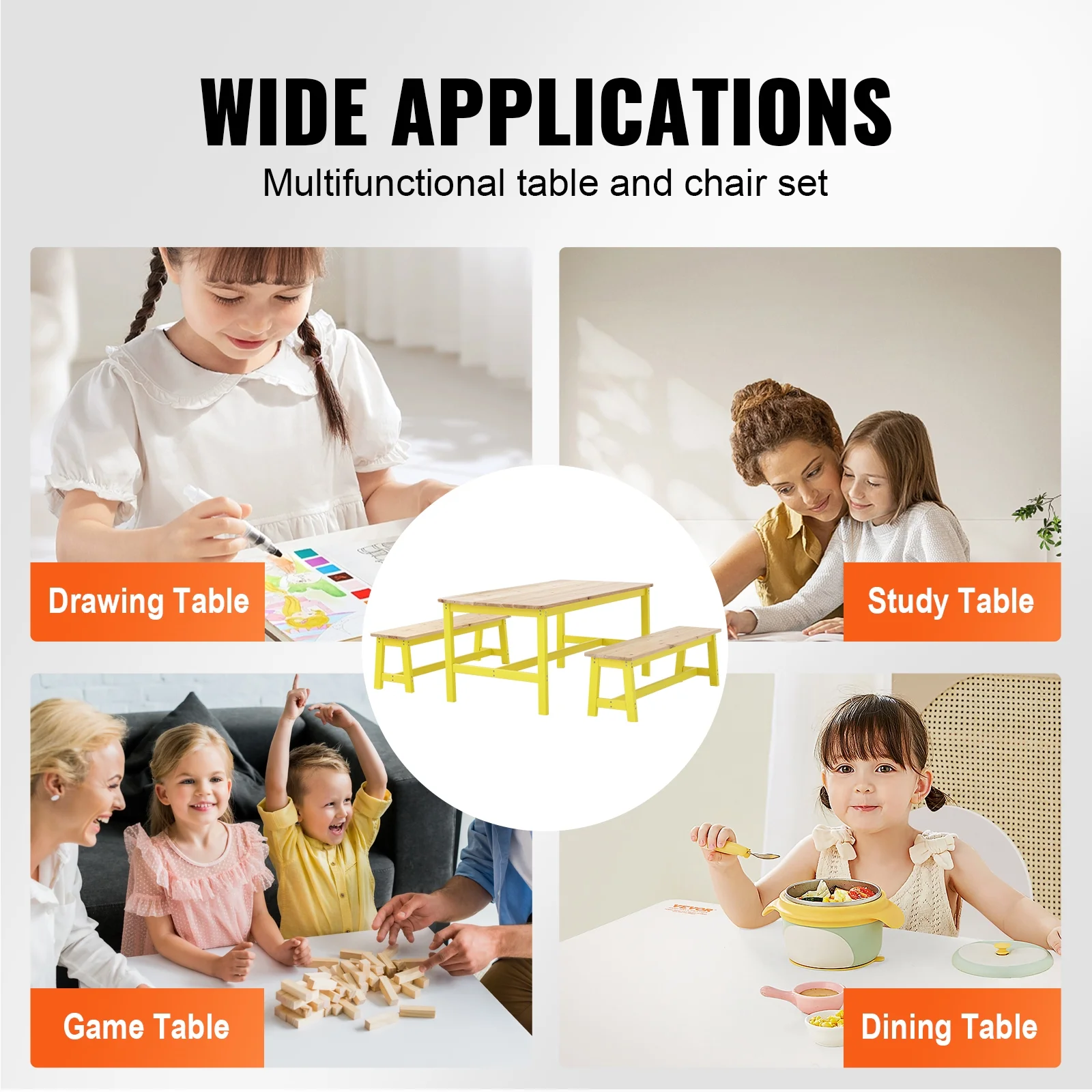 SKYSHALO Kids Table and Bench Set Toddler Table and Chair Set of 3 for Arts Crafts
