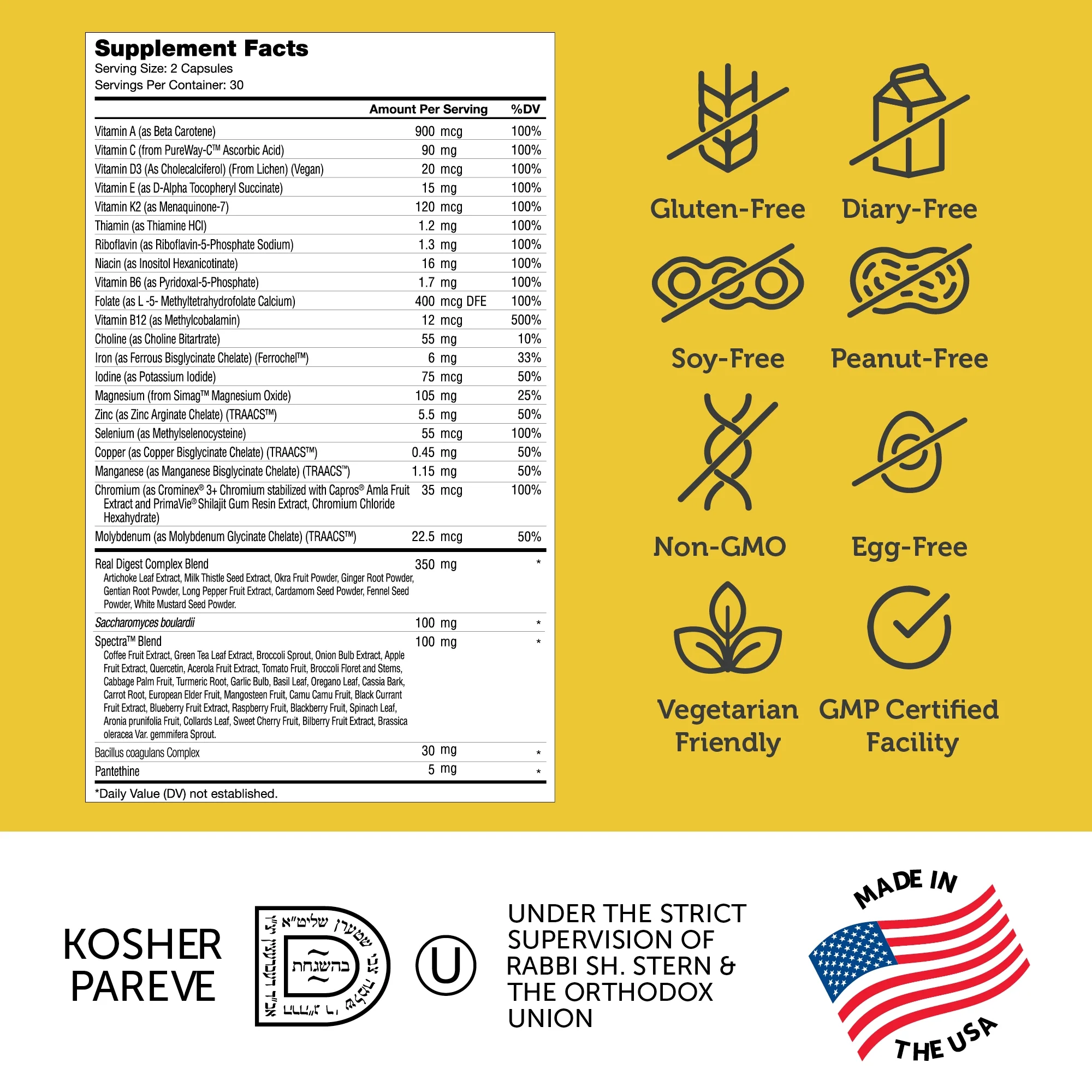 Multivitamin Digestion, Daily Multi + Gut Health Support With Digest Complex & Probiotics, 60 Capsules, Zahler