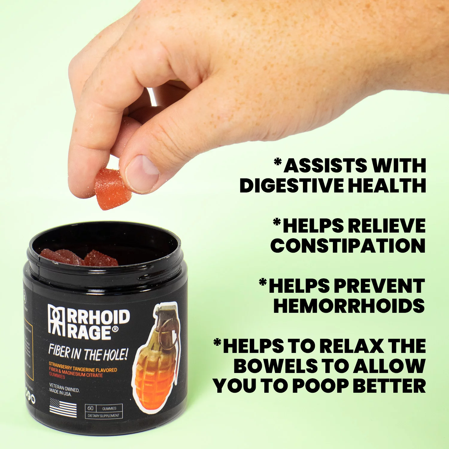 Rrhoid Rage - Fiber and Magnesium Gummies, Supports Digestive Health, Relieves Constipation, Helps Prevent Hemorrhoids, Has Both Soluble and Insoluble Fiber, Made in USA, 60 ct