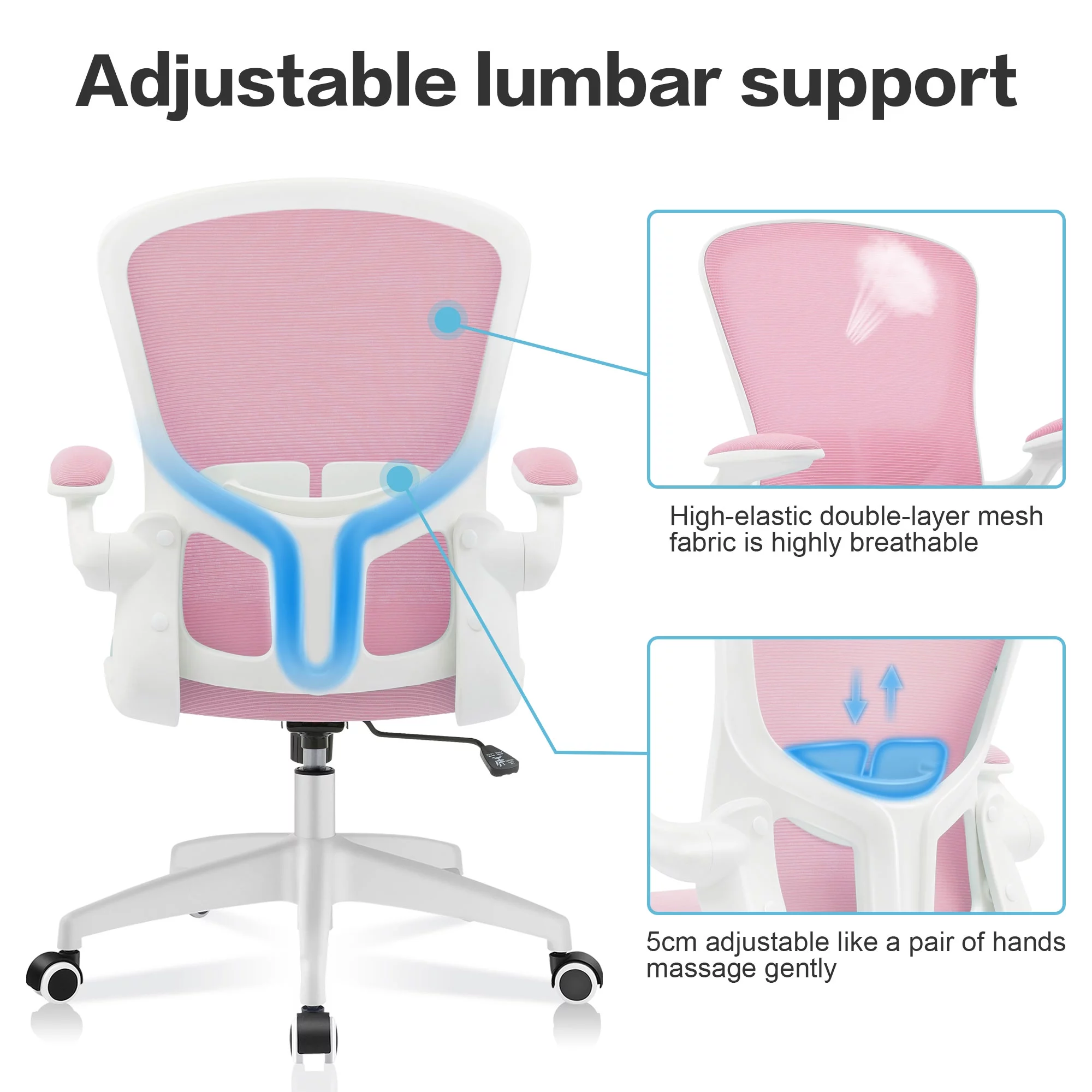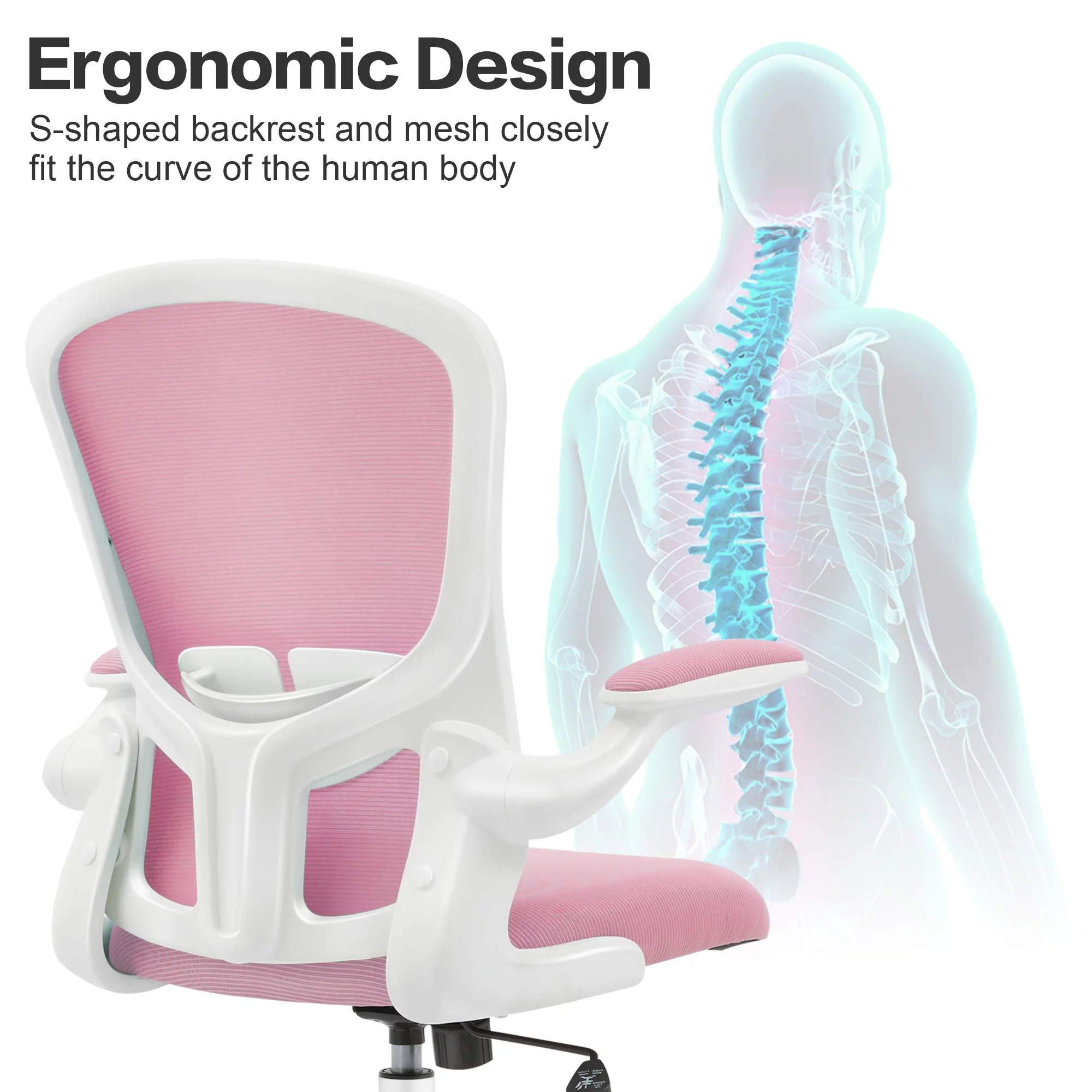 Office Chair, AMZFUN Ergonomic Desk Chair with Adjustable Height, Swivel Computer Mesh Chair with Lumbar Support and Flip-up Arms