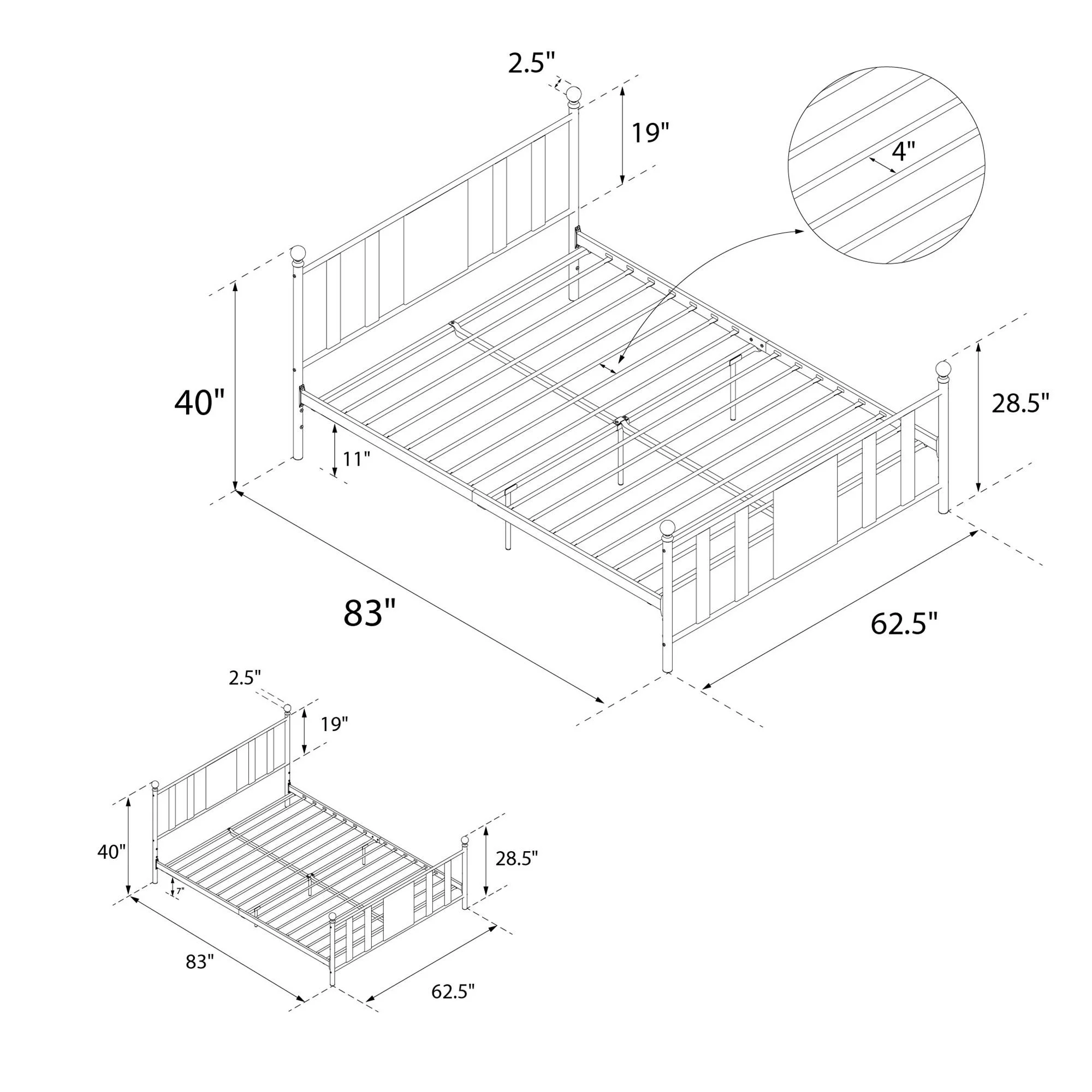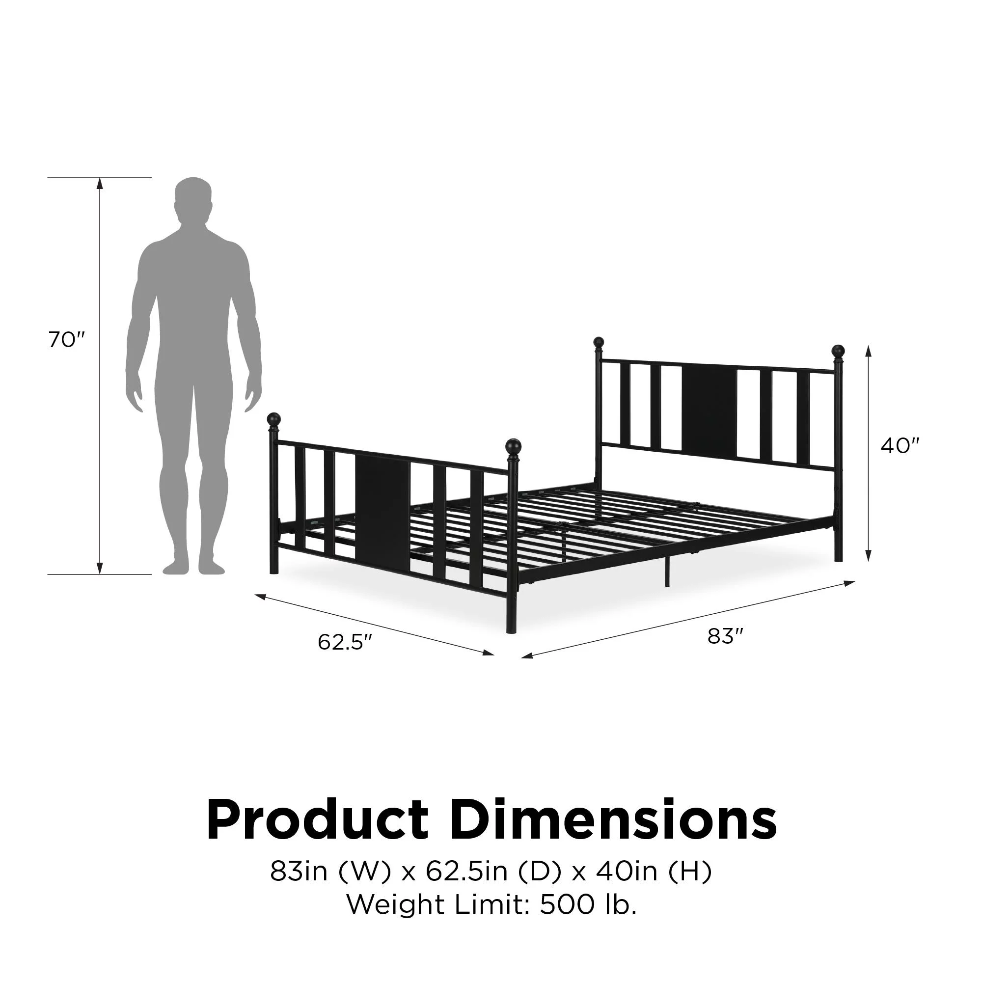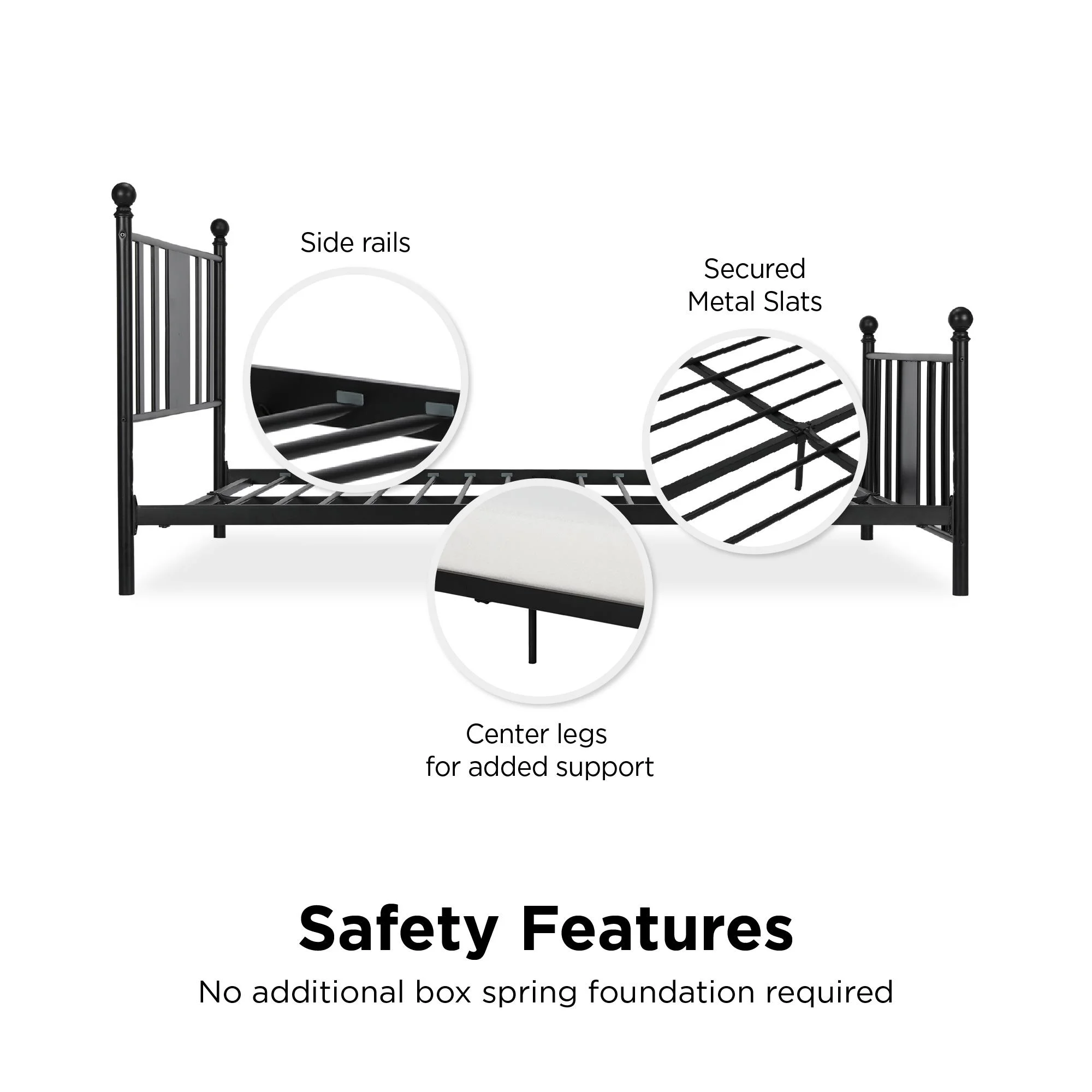 DHP Langham Metal Platform Bed with Adjustable Height, Queen, Black
