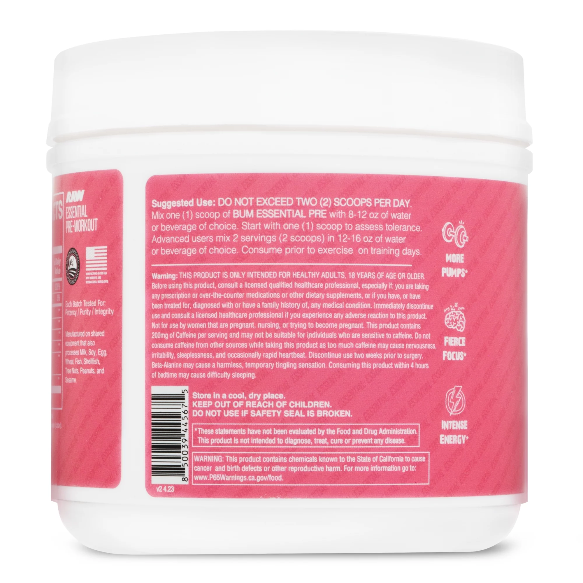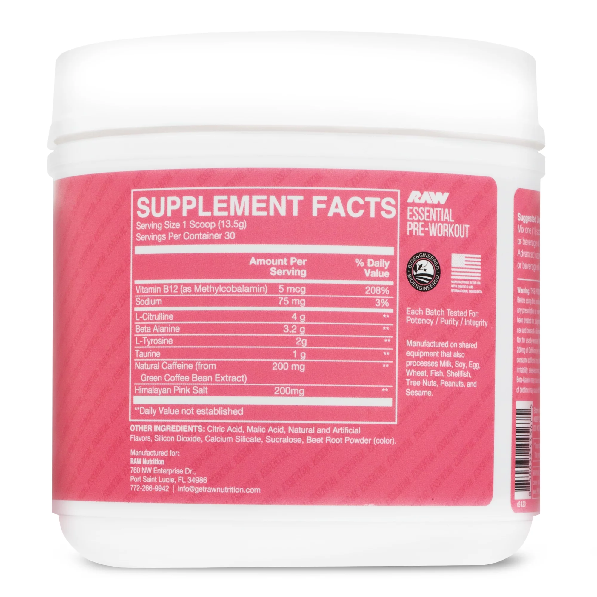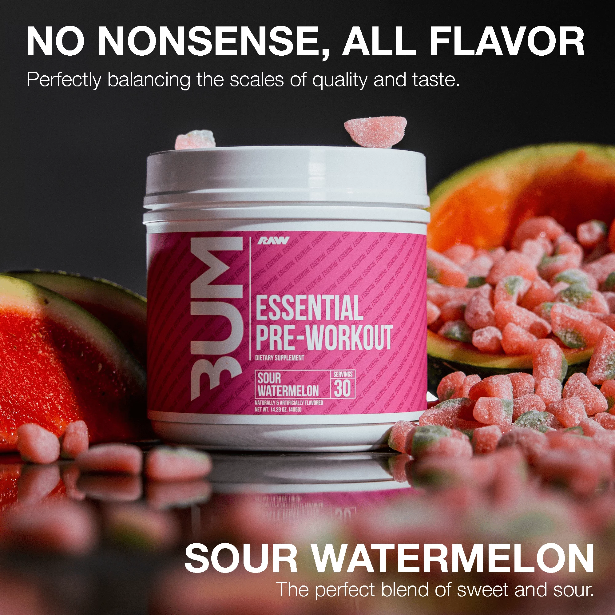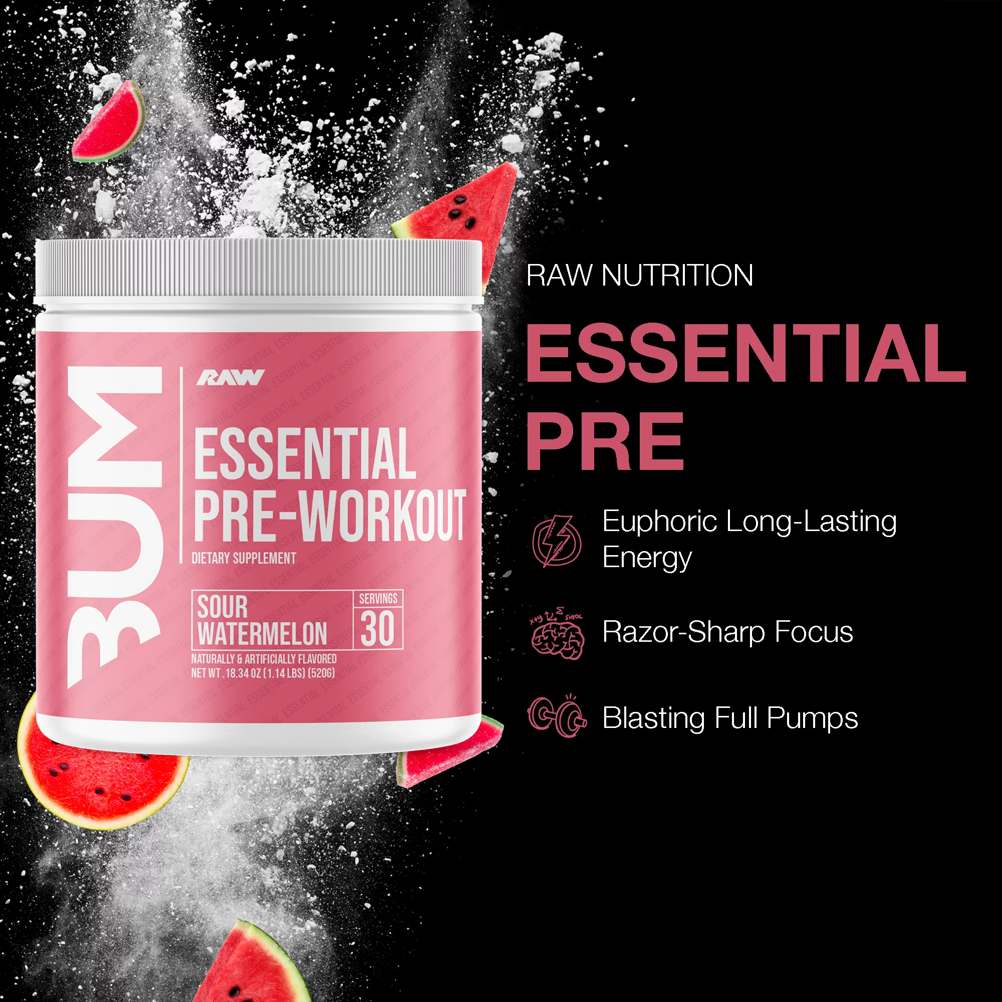 RAW Nutrition Essential Pre Workout Powder, Sour Watermelon, 30 Servings
