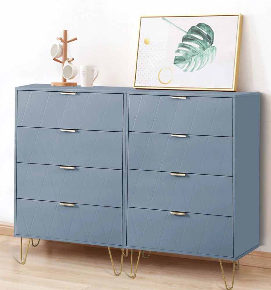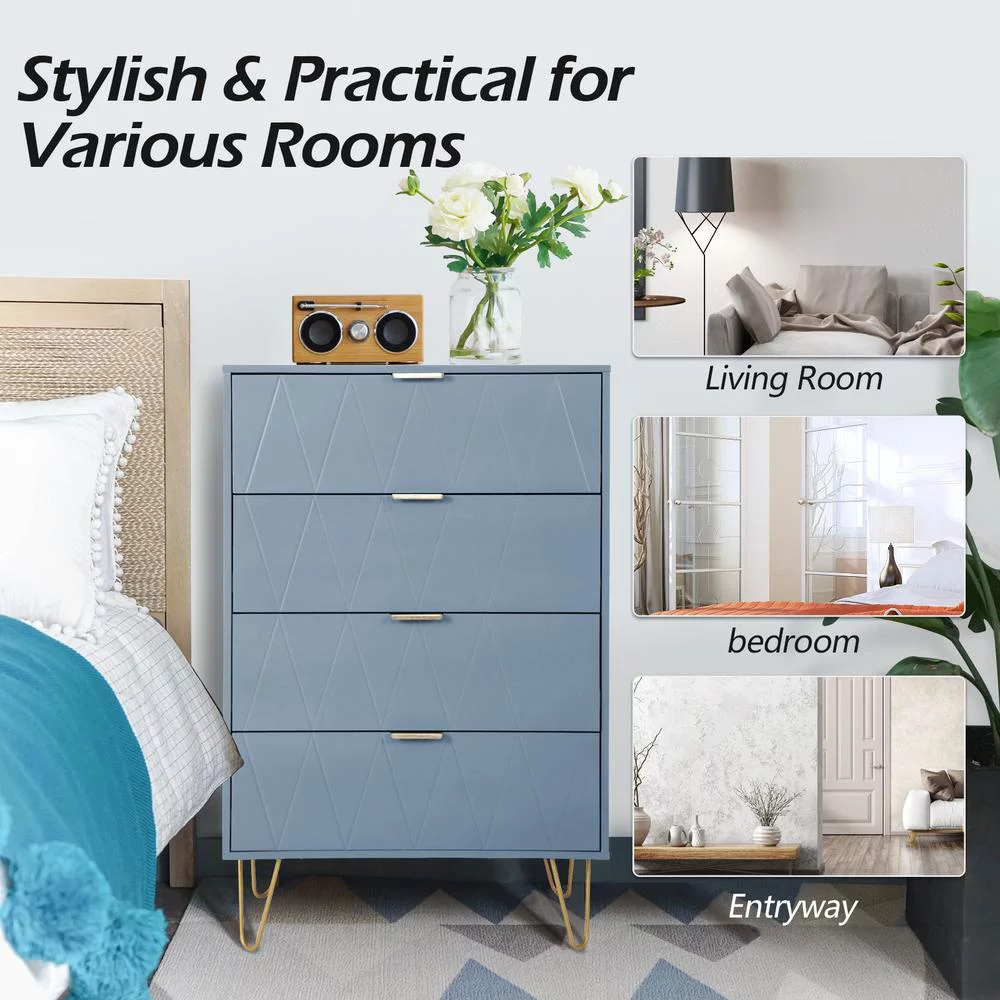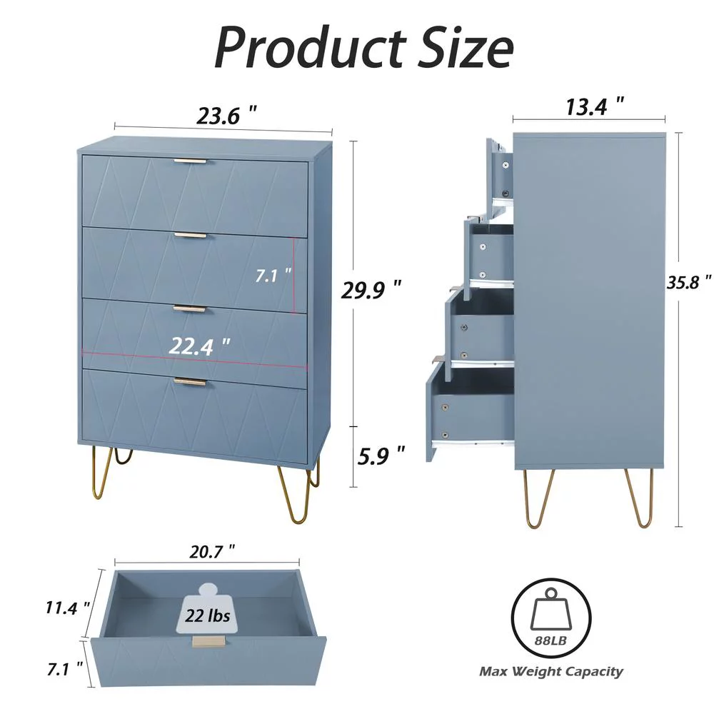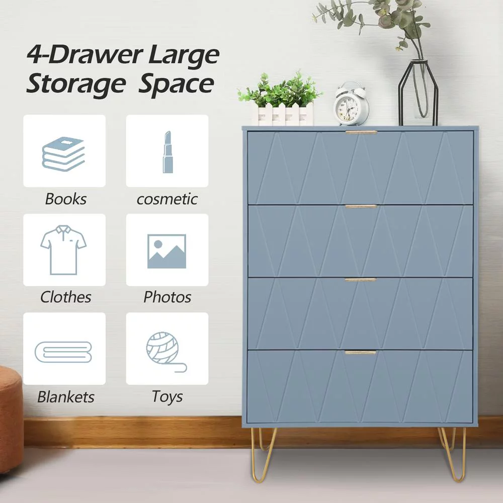 Eclife 24" Wood 4 Drawer Dresser Chest Storage Accent Cabinet Organizer Unit with Metal Legs for Adult Kids Bedroom Makeup Bathroom Clothes Living Room Closet in Blue