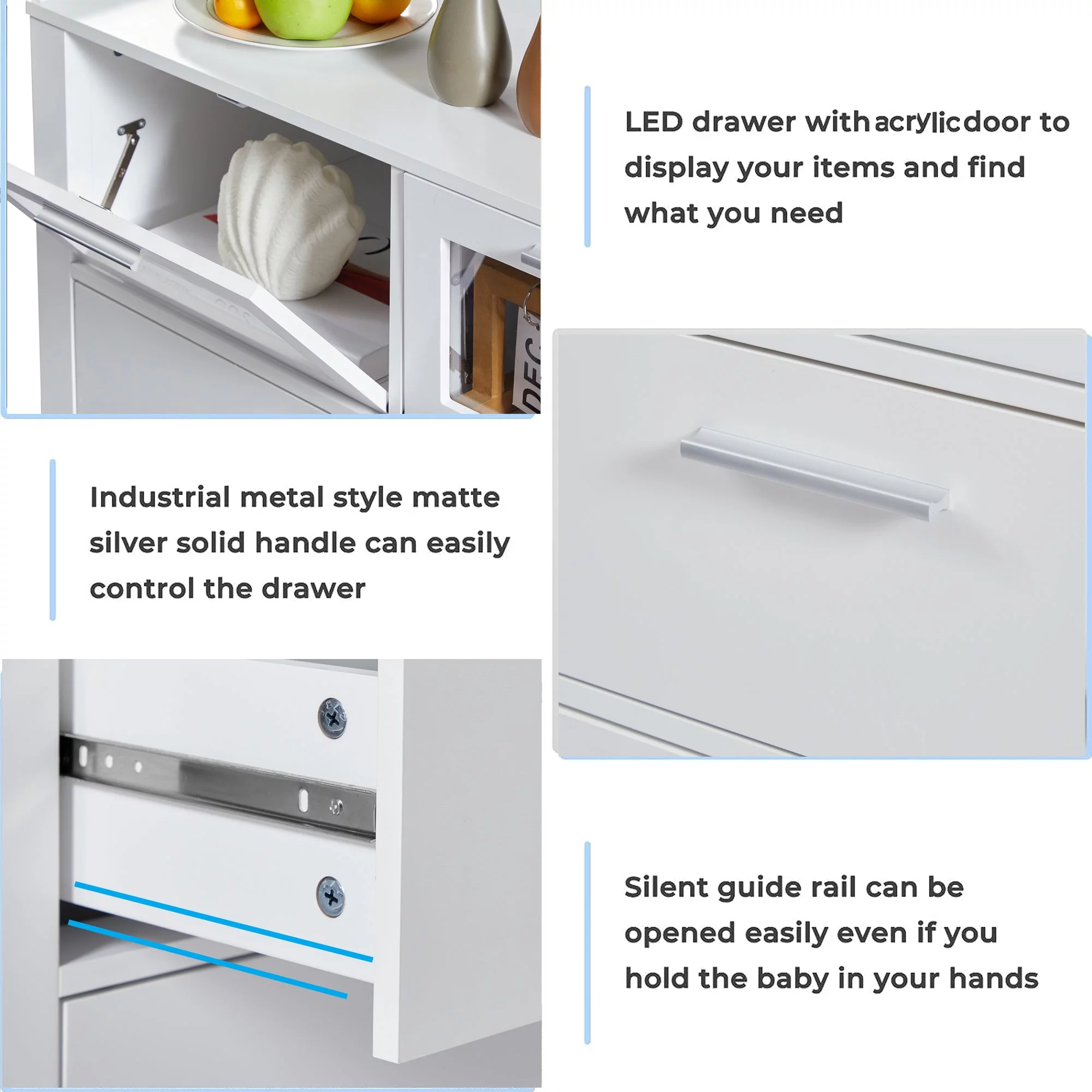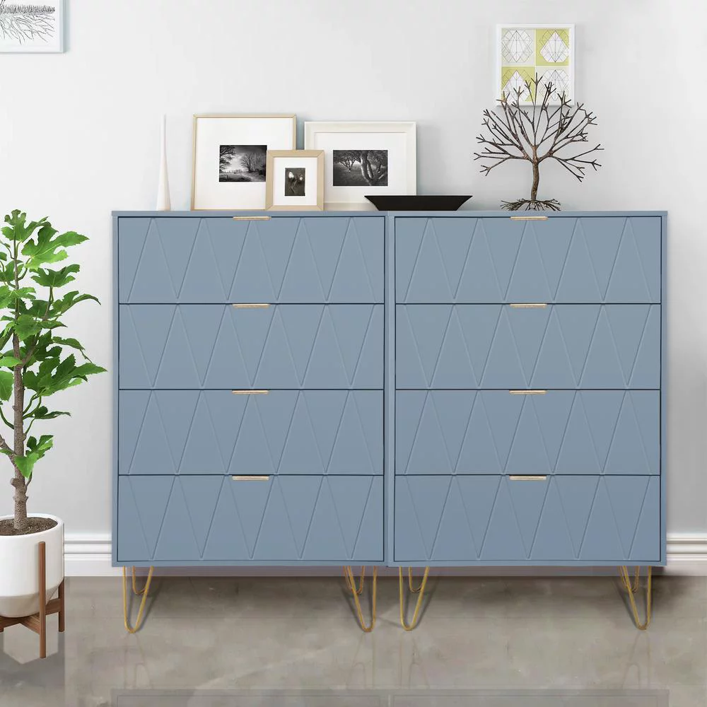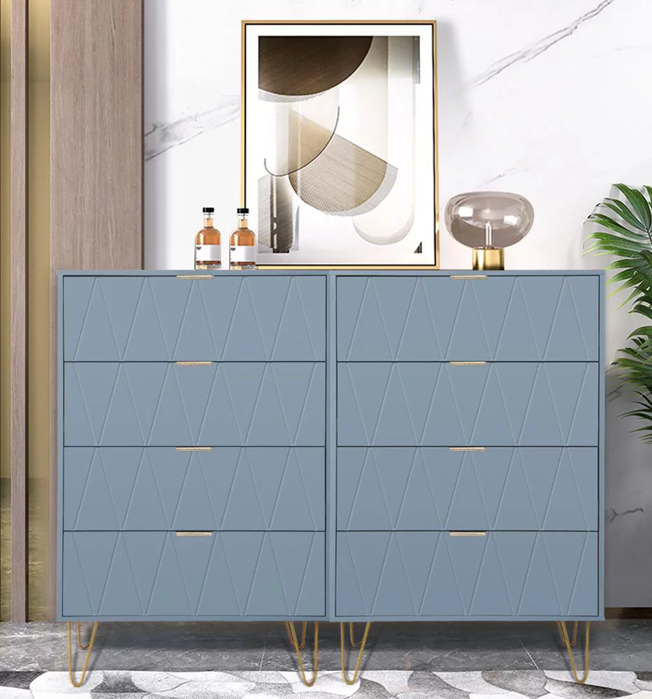 Eclife 24" Wood 4 Drawer Dresser Chest Storage Accent Cabinet Organizer Unit with Metal Legs for Adult Kids Bedroom Makeup Bathroom Clothes Living Room Closet in Blue