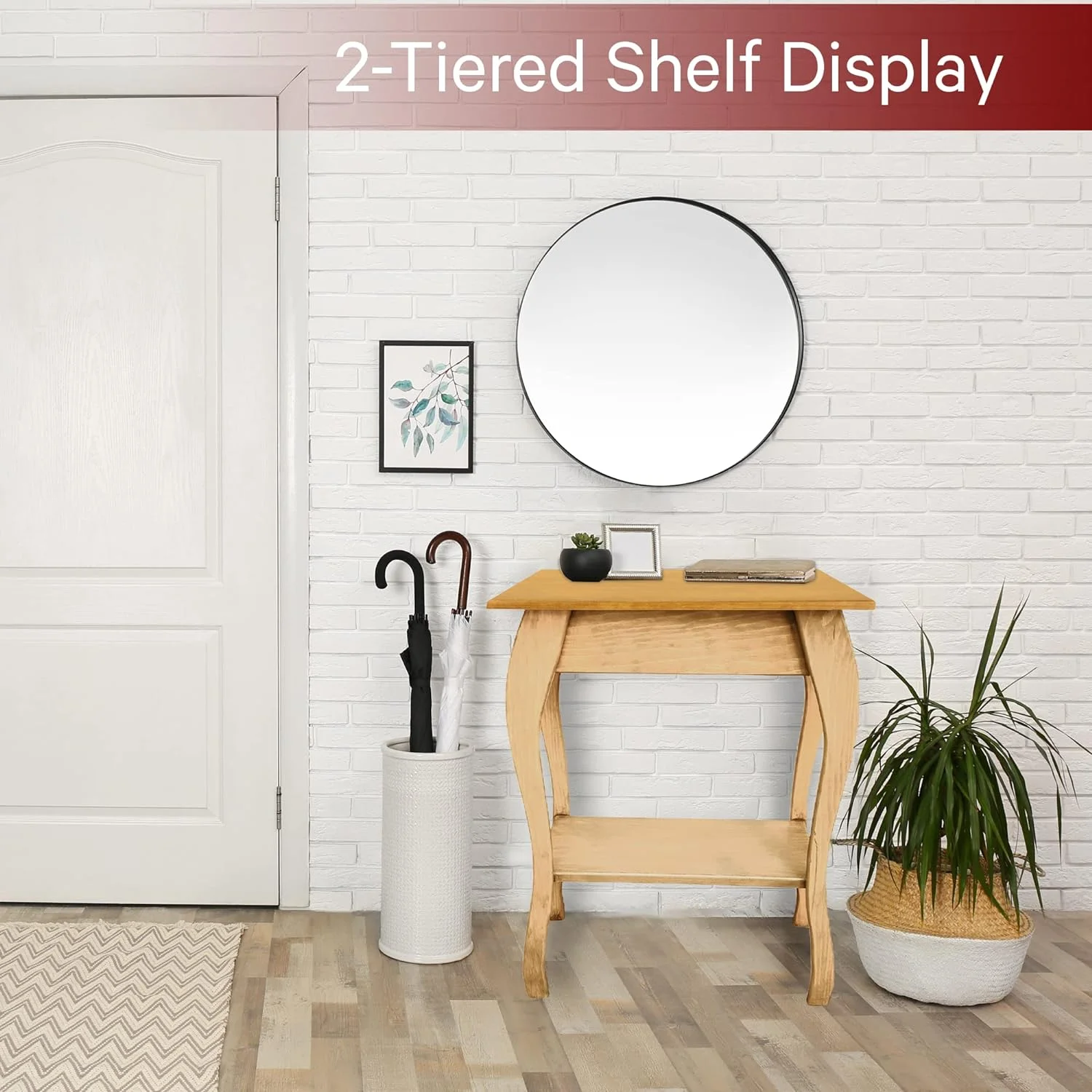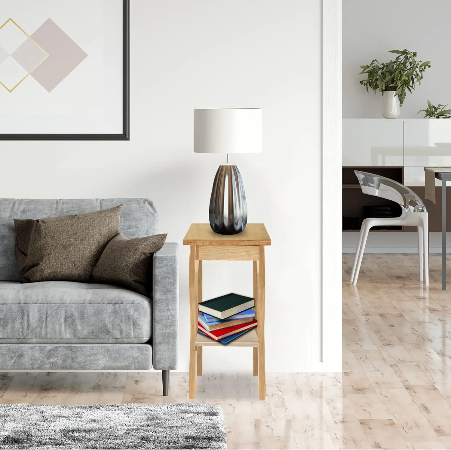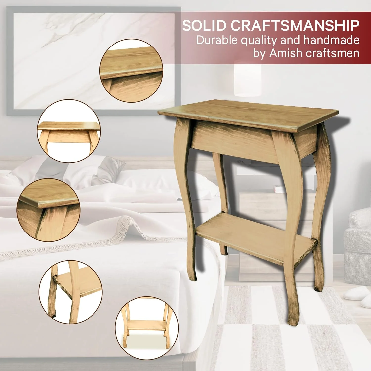 Wooden End Table- Amish Handmade Slim Side Table For Living Room, Bedroom, Entry Way, & Hallway, Thin Narrow End Table With 2-Tiered Shelves For Display & Storage, Unfinished
