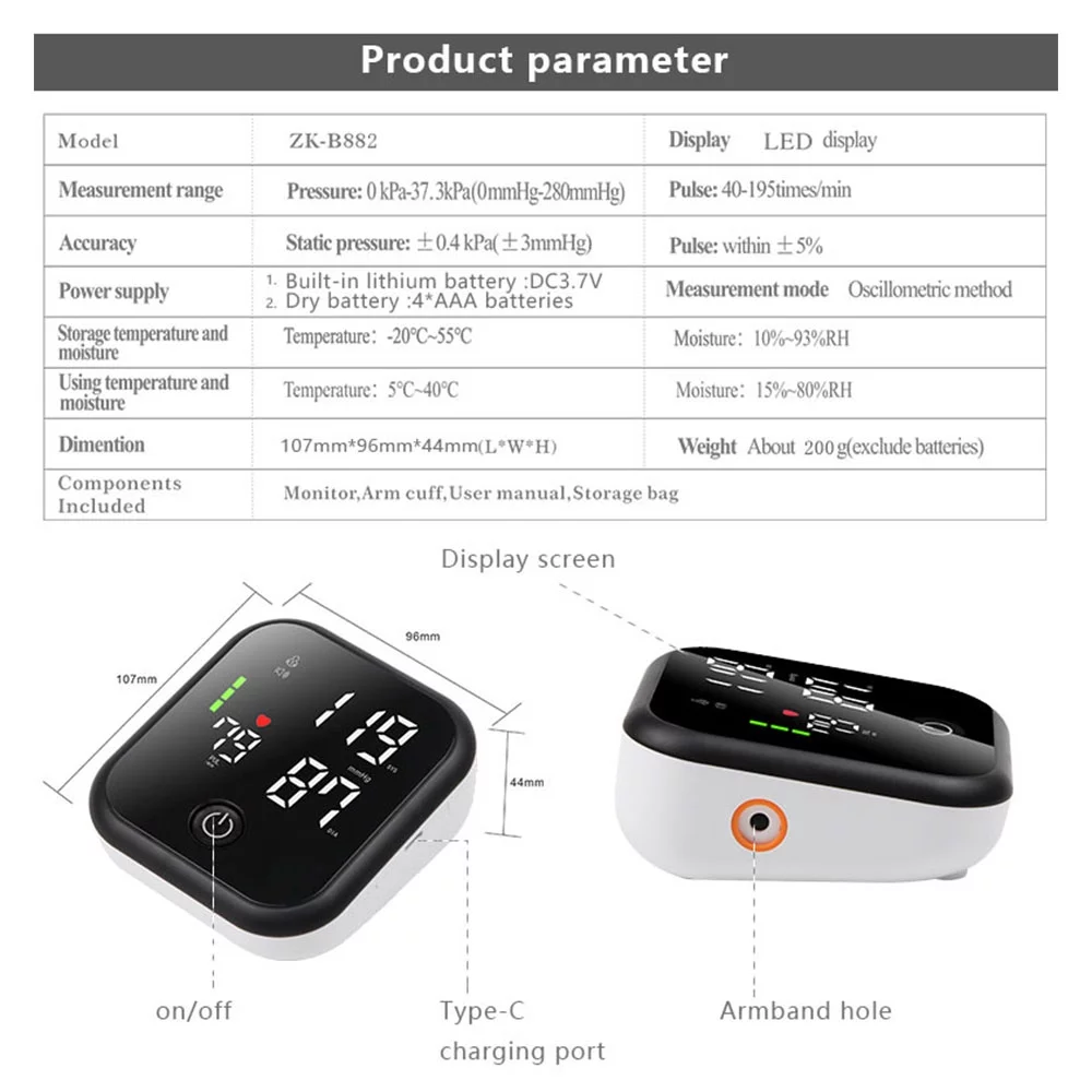 ZK B882 Electronic Sphygmomanometer with Large LED Screen Household for Home Use