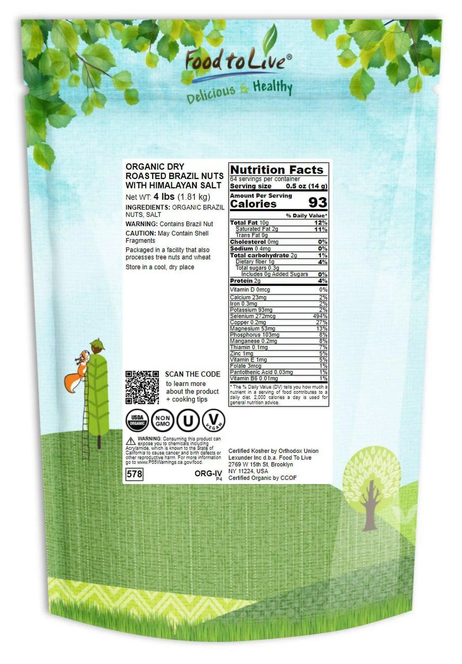 Organic Dry Roasted Brazil Nuts with Himalayan Salt, 4 Pounds — Non-GMO, Kosher, Vegan — by Food to Live