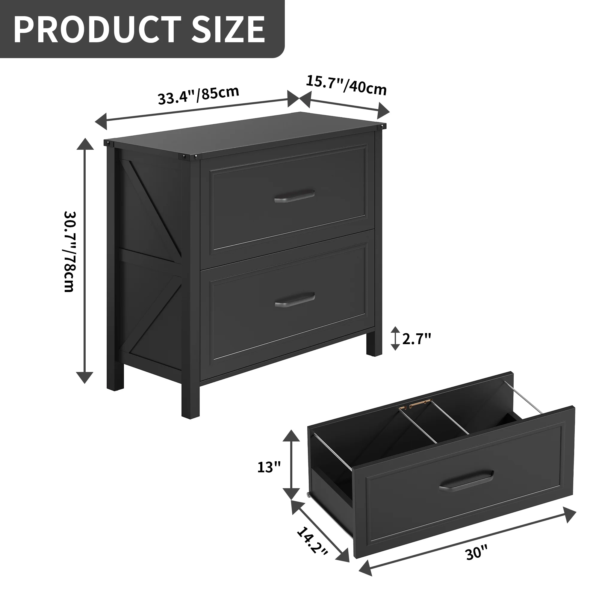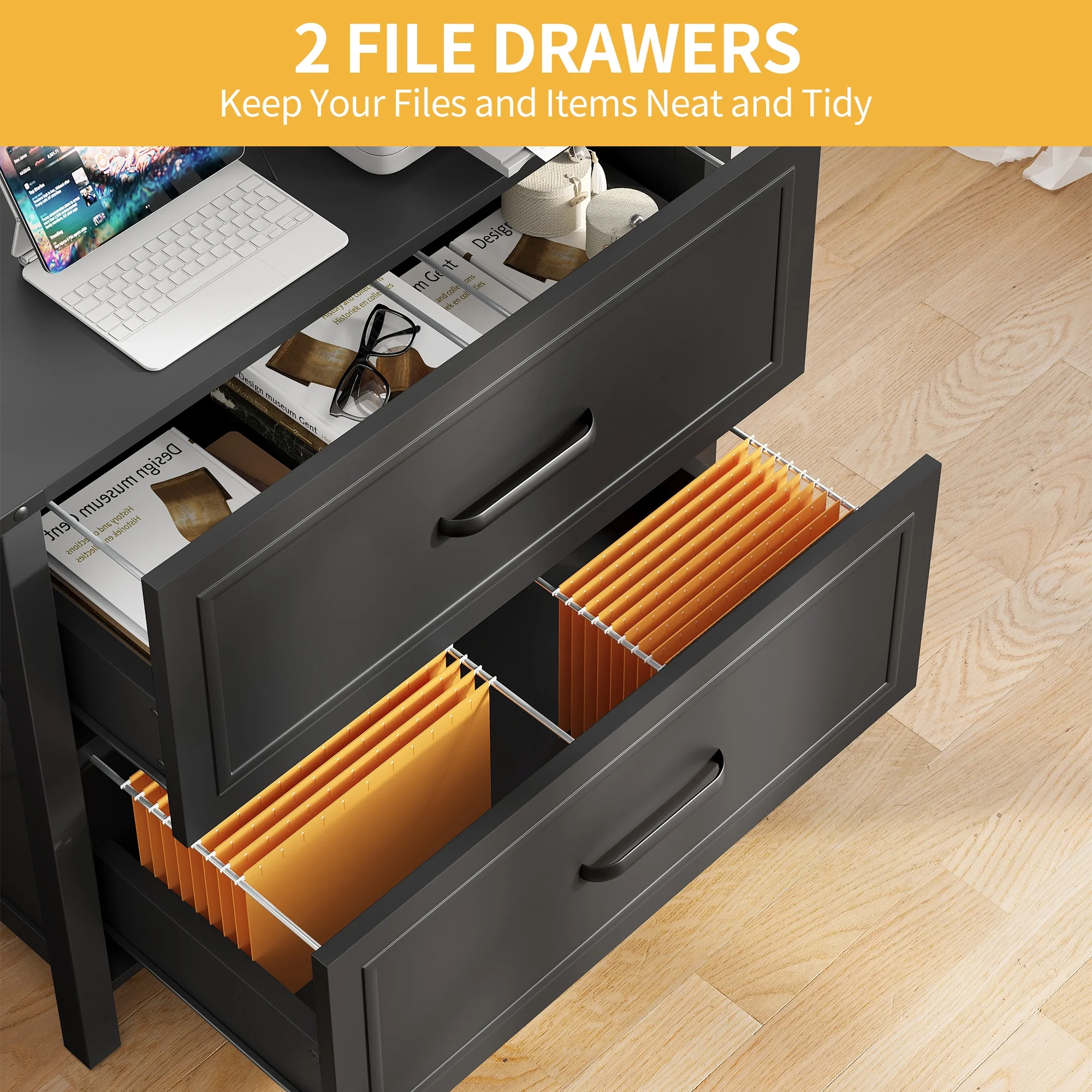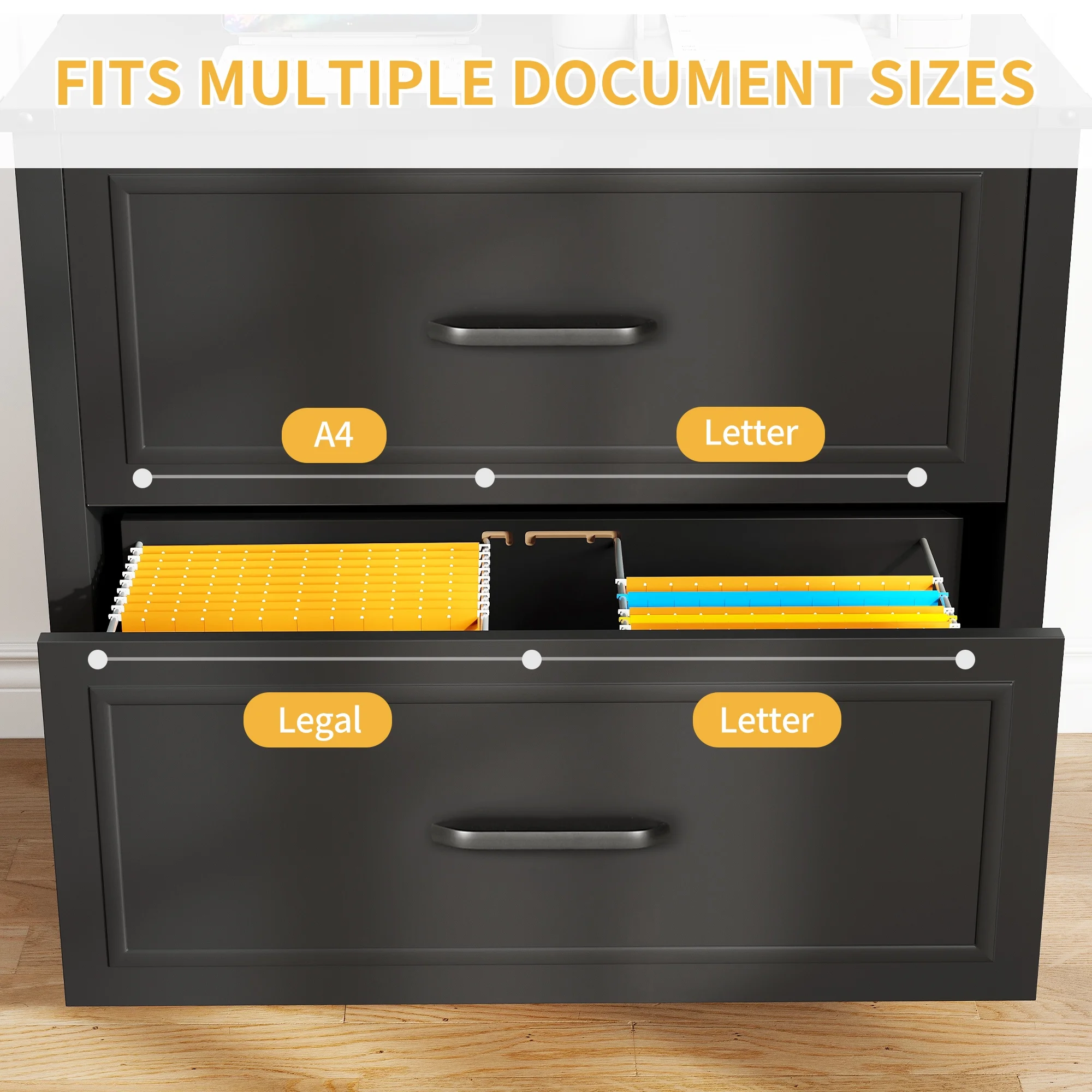 DWVO 2-Drawer Lateral File Cabinet for Home Office , Large Filing Cabinet for Letter A4-Sized Files, Office Storage Organizer , Black