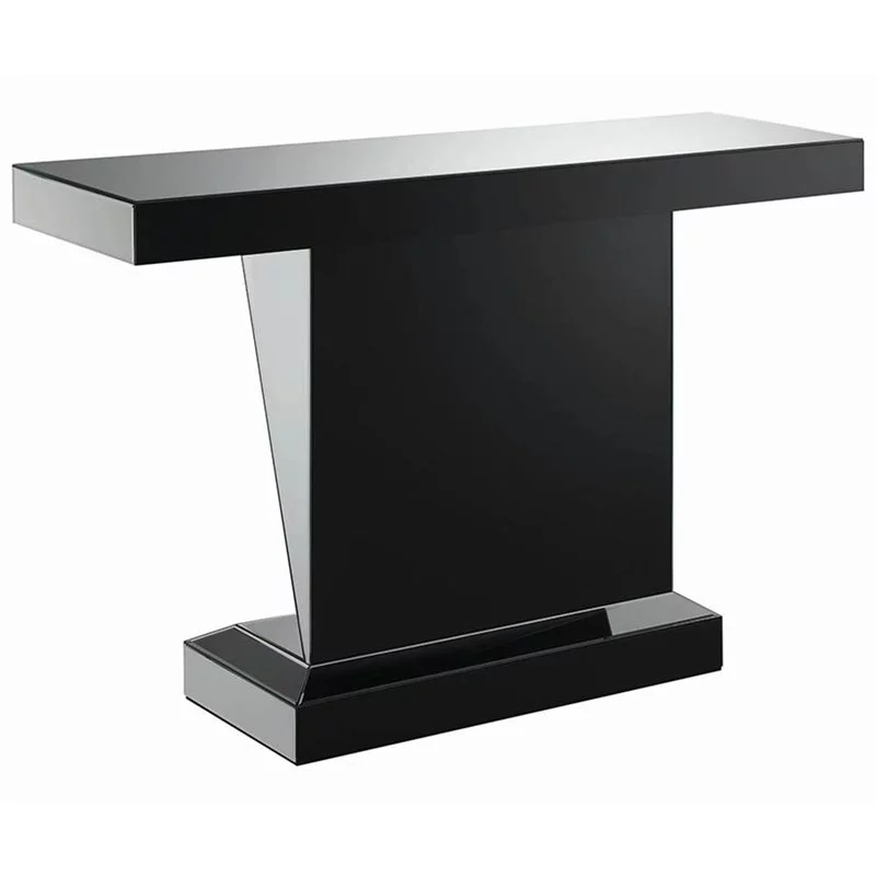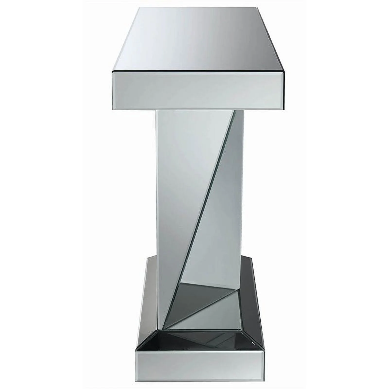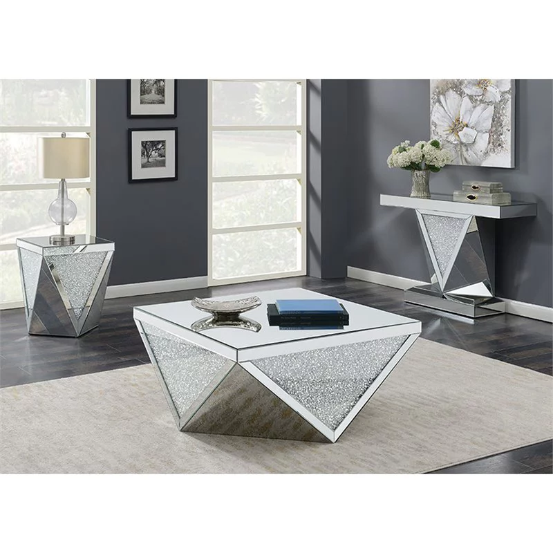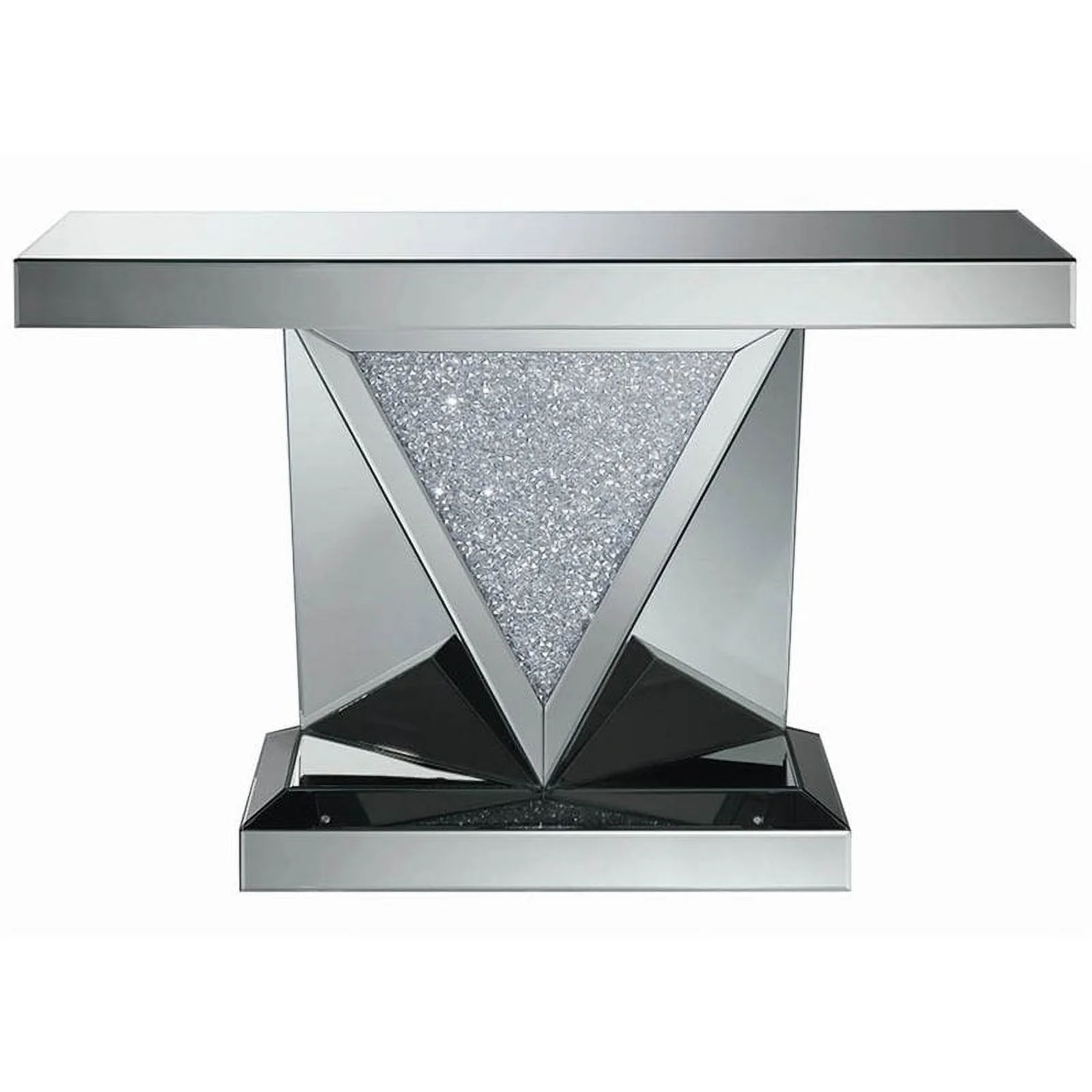 Amore Rectangular Sofa Table with Triangle Detailing Silver and Clear Mirror