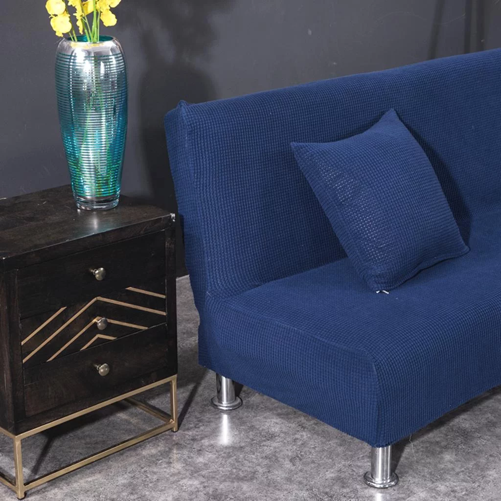 Non-Slip Armless Sofa Cover Full Folding Sofa Bed Slipcover Dark