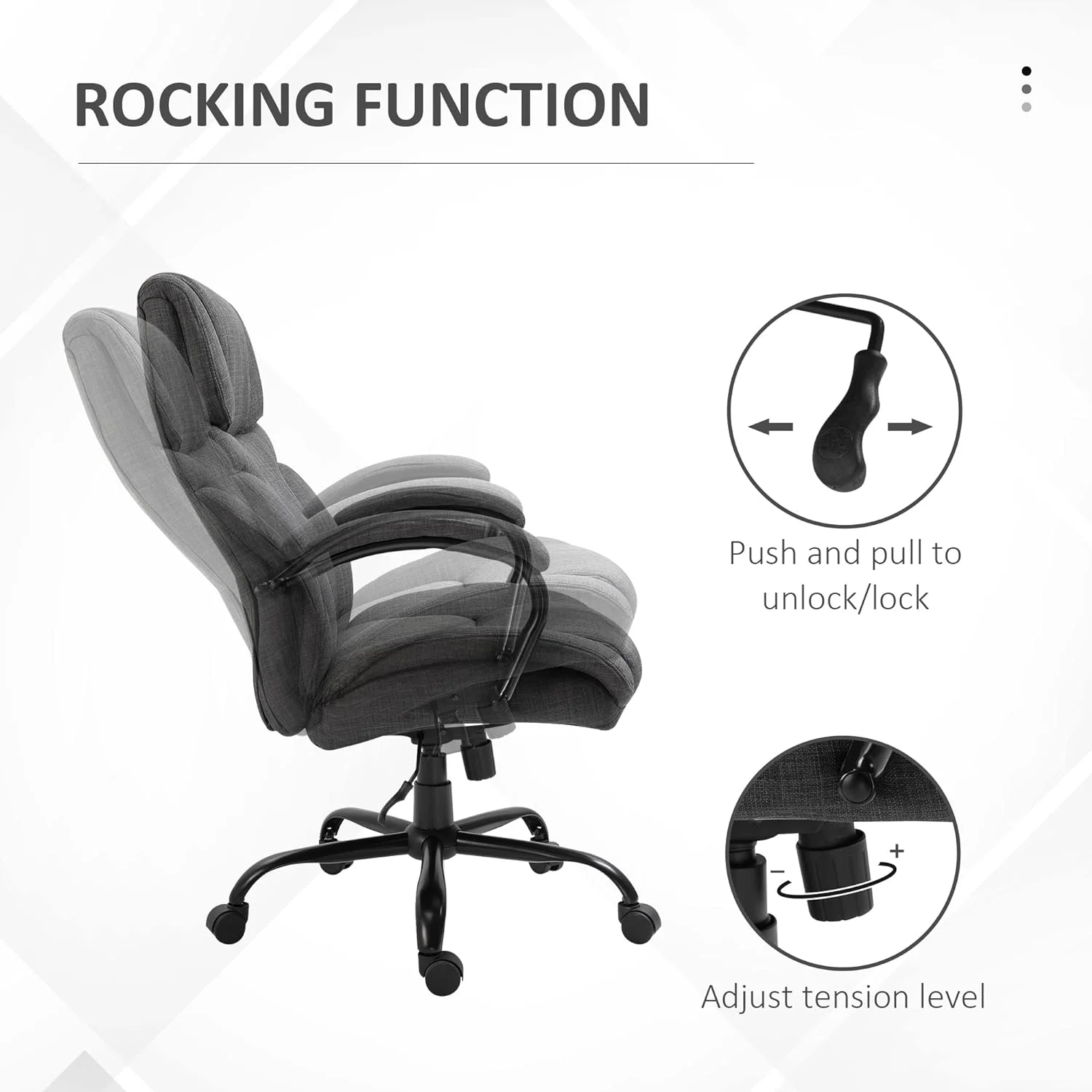 500Lbs Big And Tall Office Chair With Wide Seat, Ergonomic Executive Computer Chair With Adjustable Height, Swivel Wheels And Linen Finish, Dark Grey