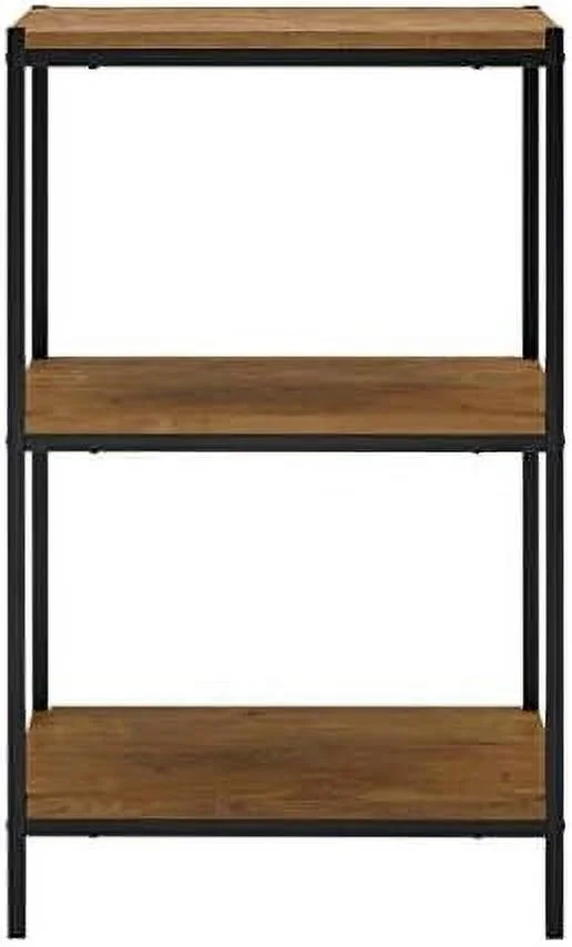 3 Tier Bookshelf By Aaron Furniture Designs Rustic Industrial Bookcase With Modern Open Shelves | Oak Brown Wood Look Accent Furniture Metal Frame | Storage Rack Shelf Unit | Bathroom | Living Room