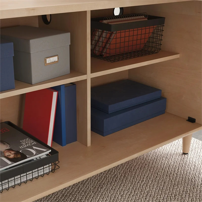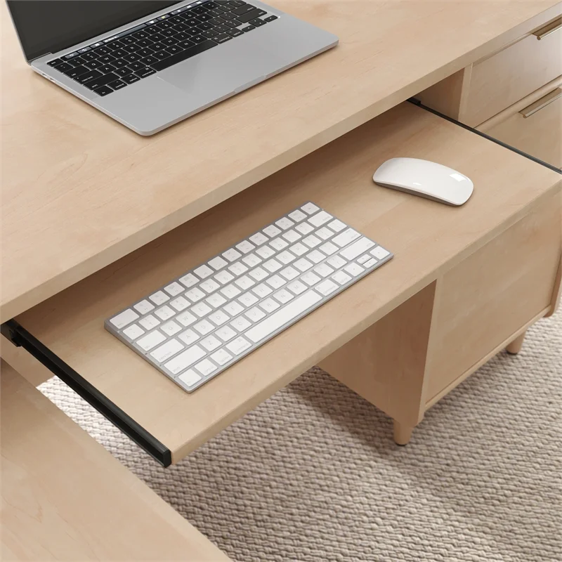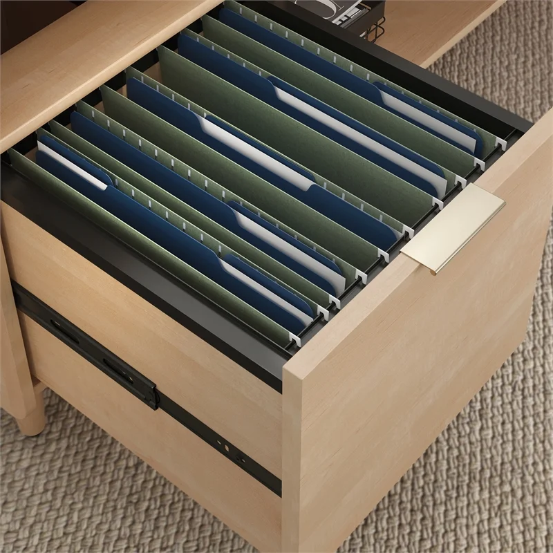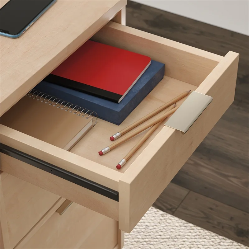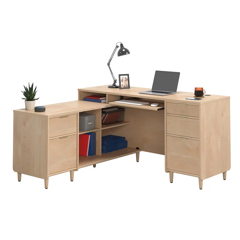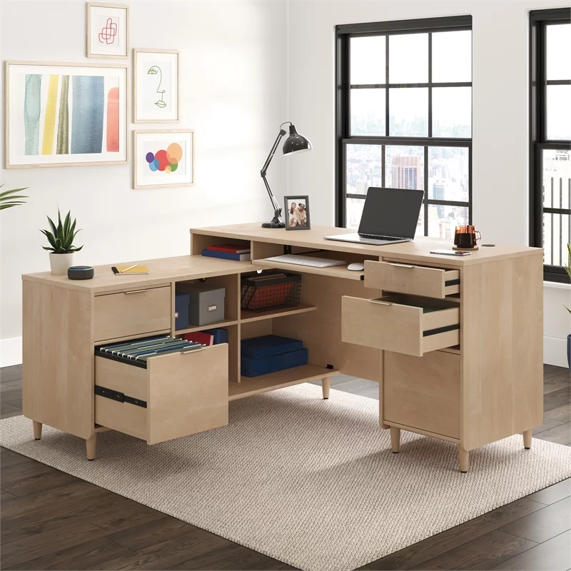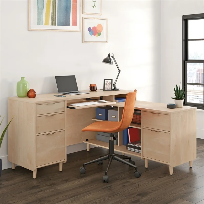 Pemberly Row Contemporary Engineered Wood L-Shaped Desk in Natural Maple