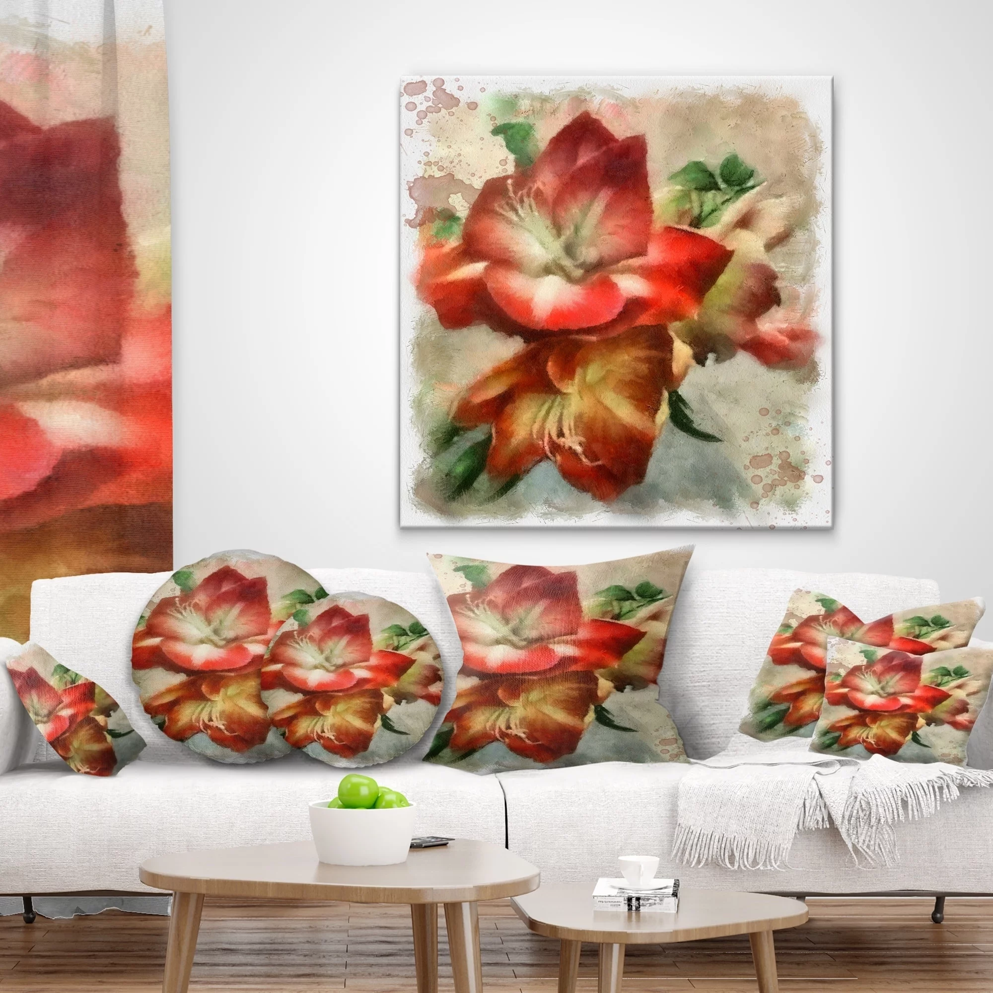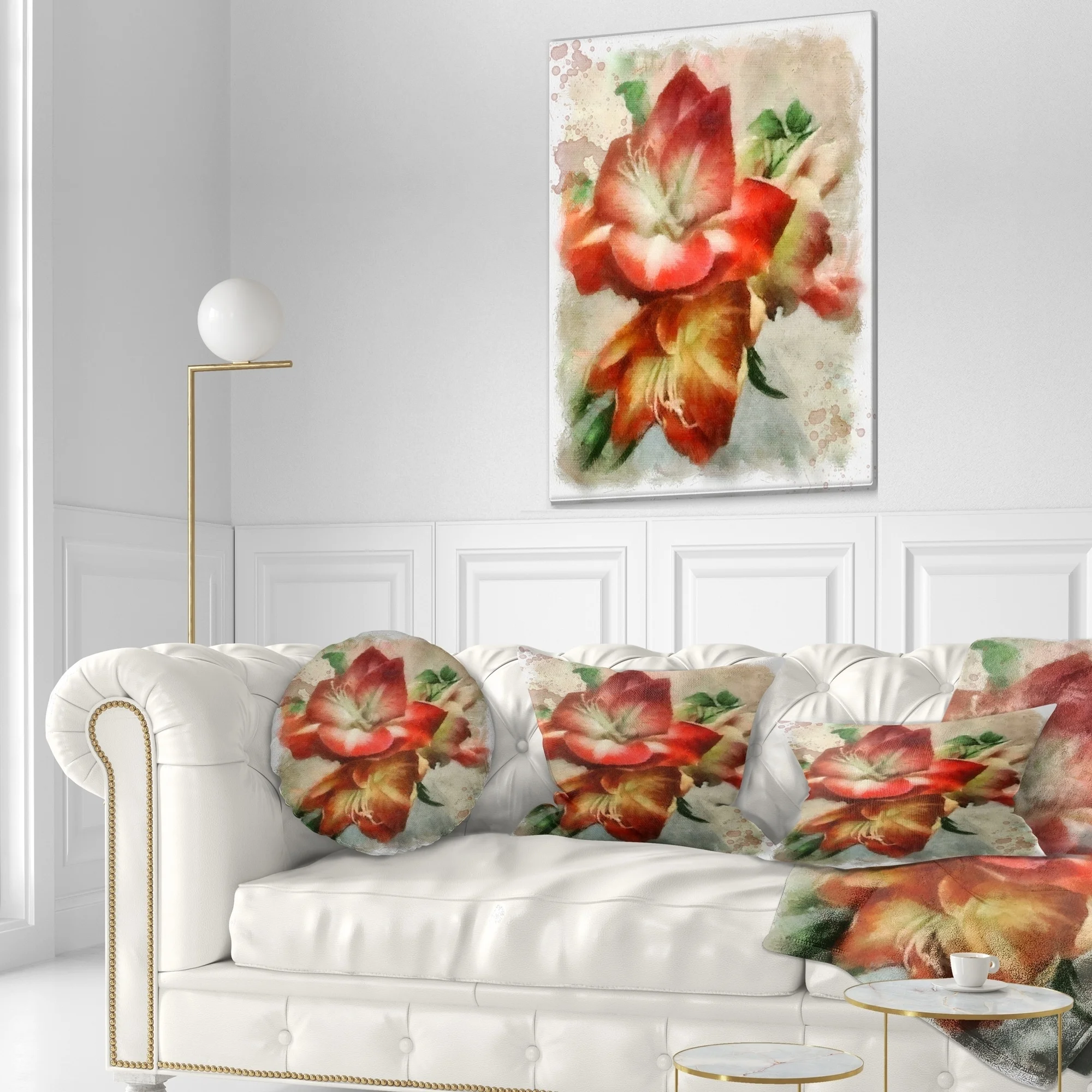 DESIGN ART Designart 'Bunch of Amaryllis Flowers Drawing' Floral Throw Pillow 16 in. x 16 in. Small