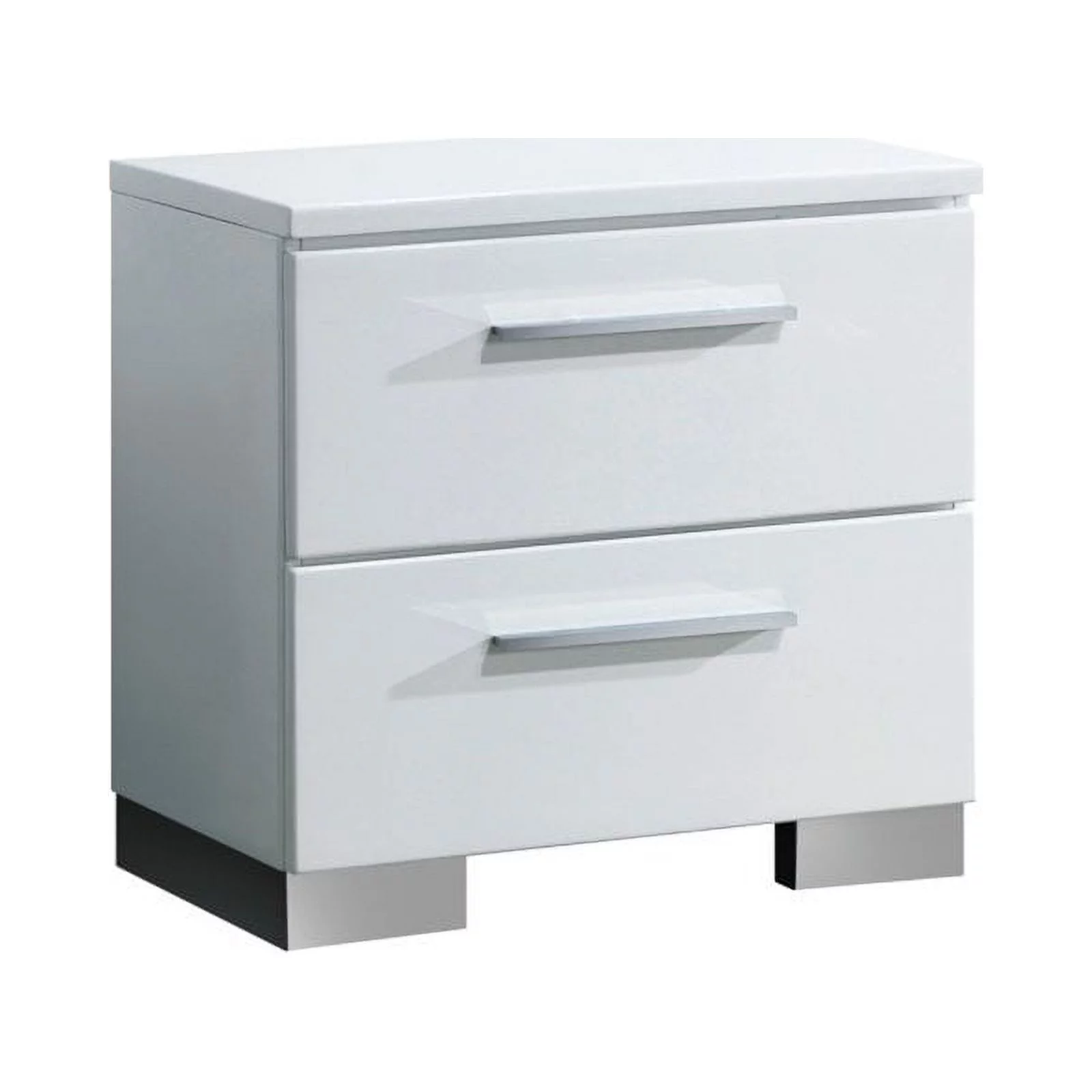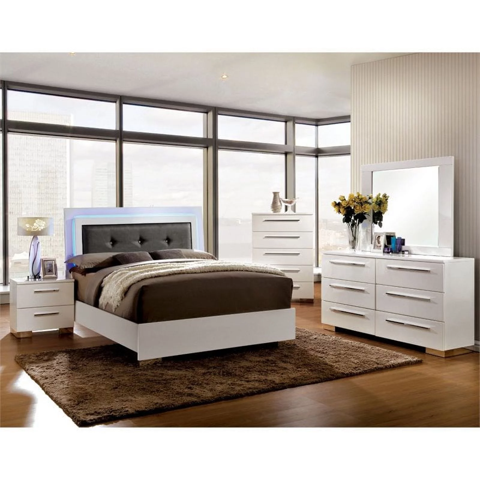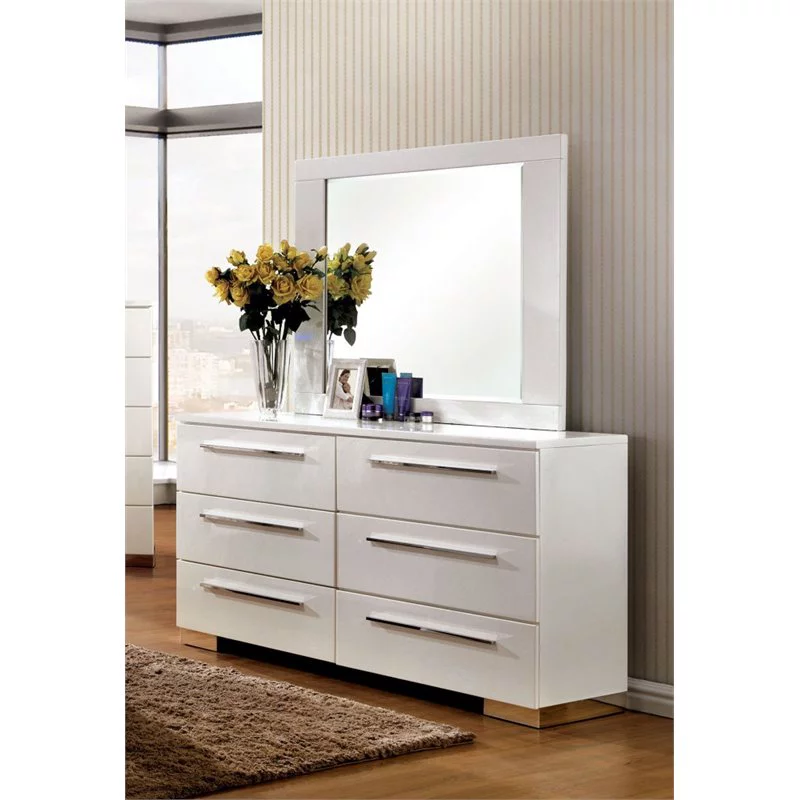 FOA Rayland 4pc Glossy White Wood Bedroom Set - King+Nightstand+Dresser+Mirror