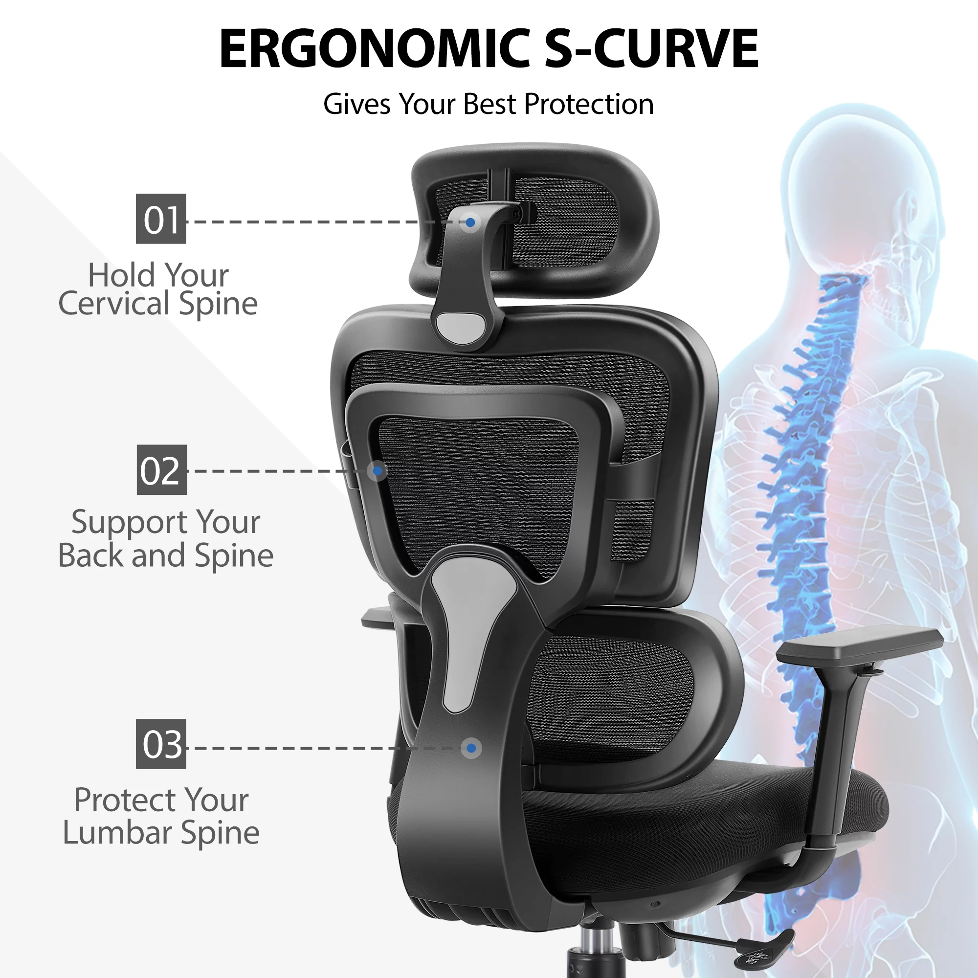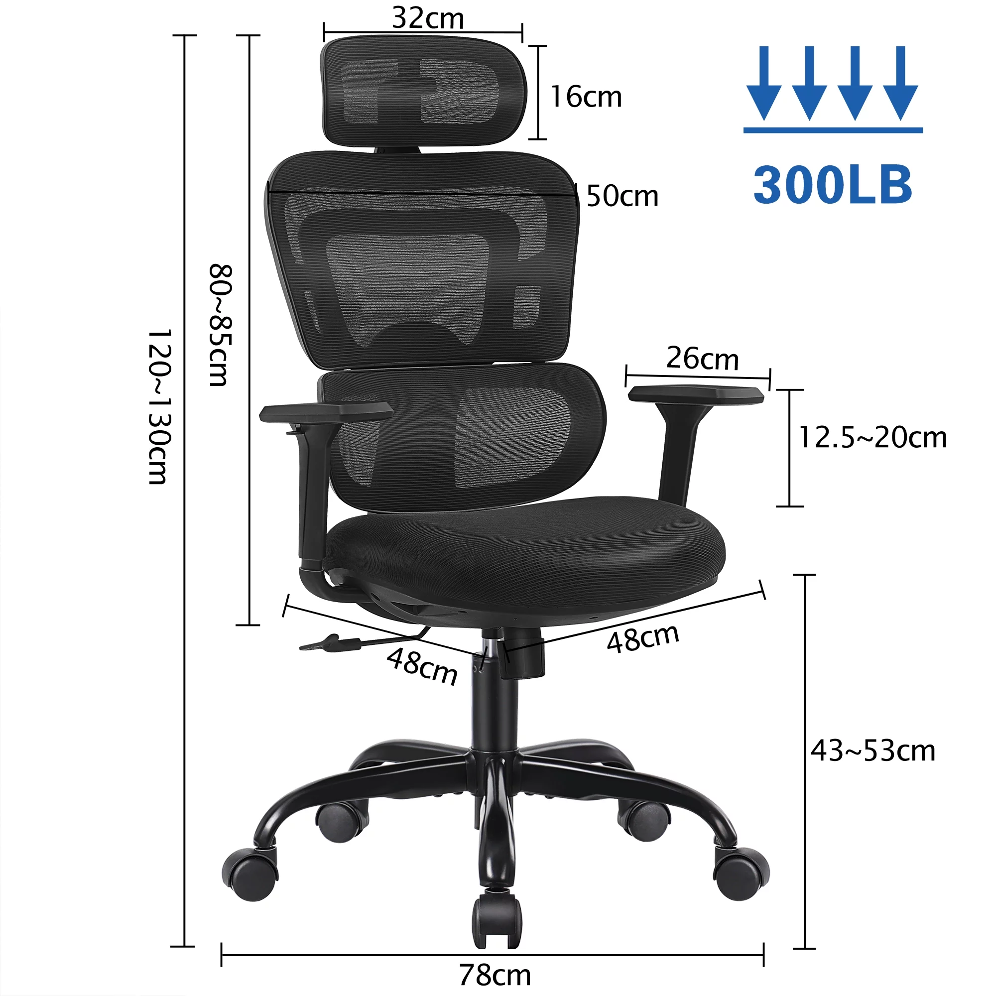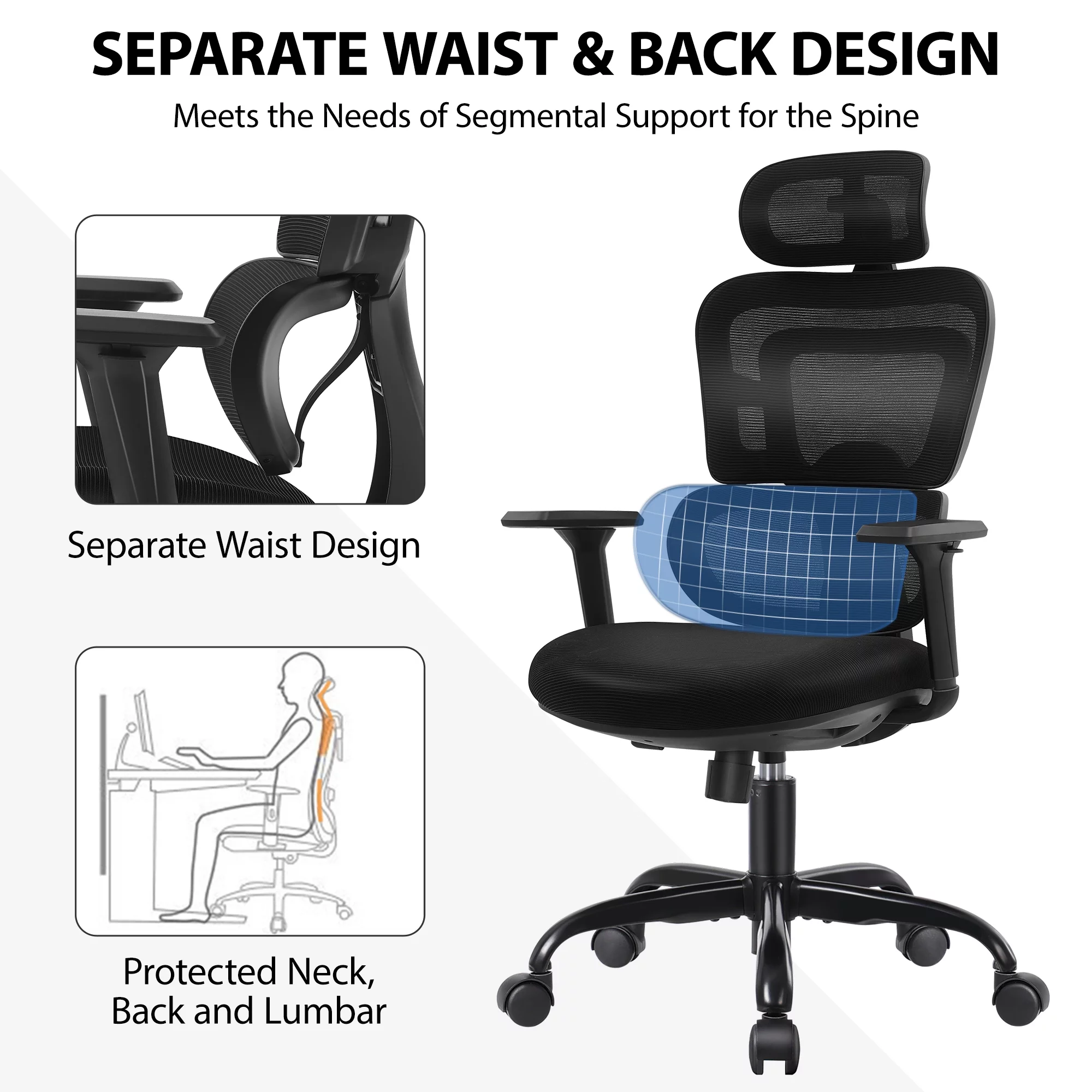 CoolHut Ergonomic Office Chair Desk Chair High Back Computer Chair with Lumbar Support, 300lbs, Black (Upgraded Sponge Cushion)