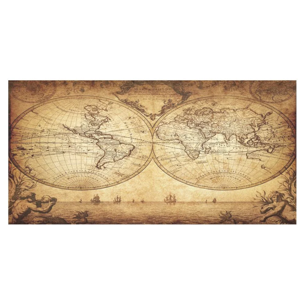 MYPOP Retro World Map Cotton Linen Tablecloth Sets 60x120 Inches - Yellow Old Style Ancient Map Desk Sofa Table Cloth Cover for Party Decor