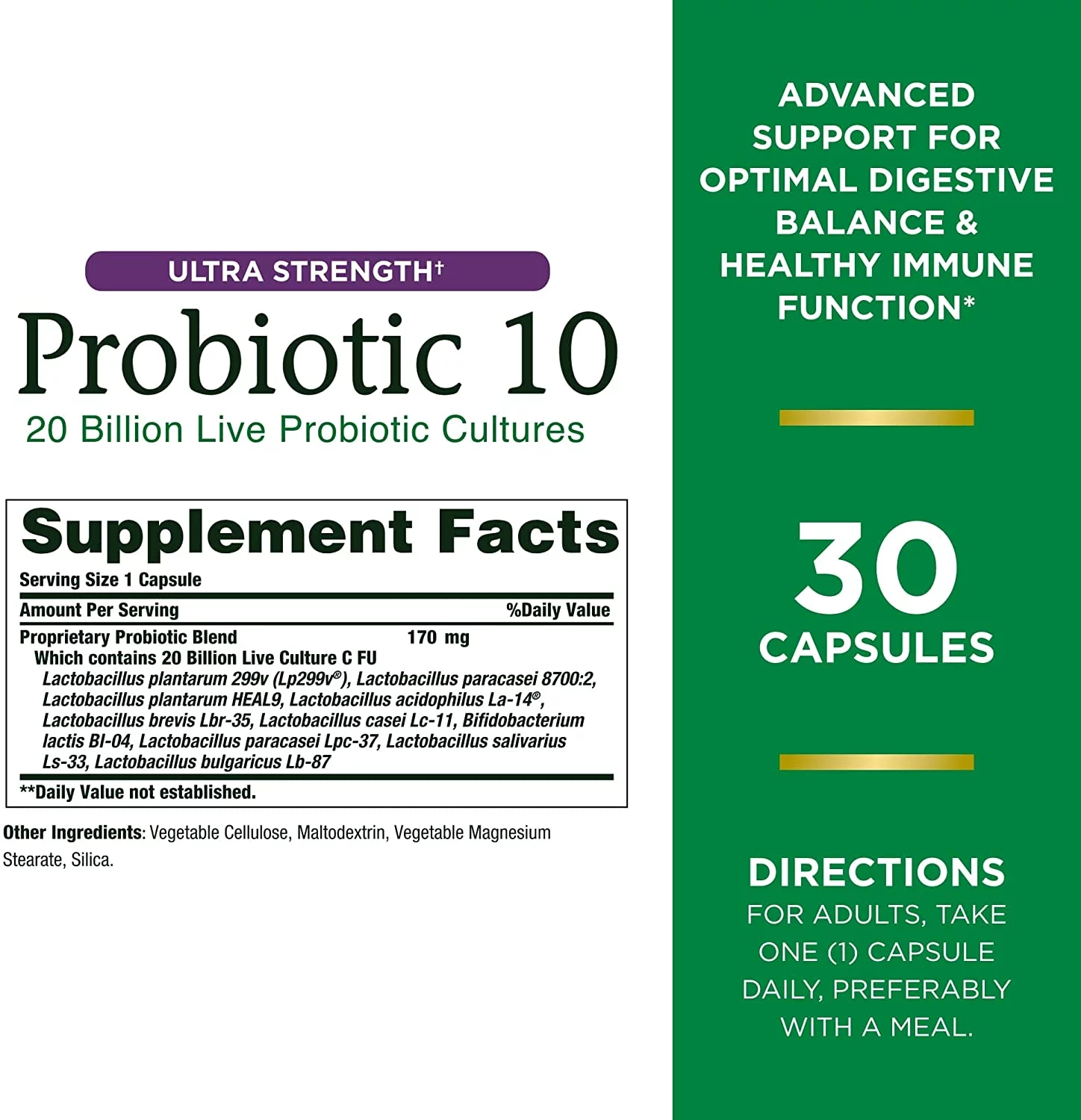 Nature's Bounty Ultra Strength Probiotic 10 Capsules for Digestive Health, 30 Count - Pack of 6
