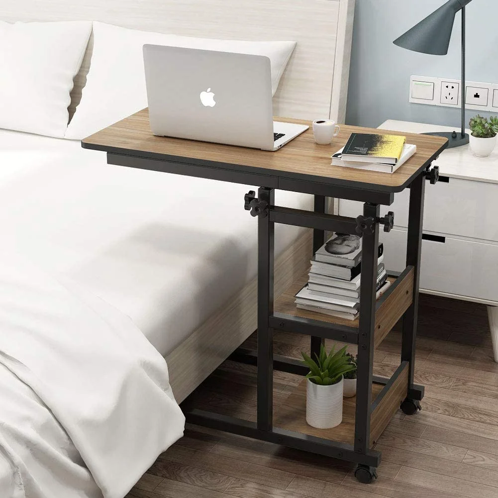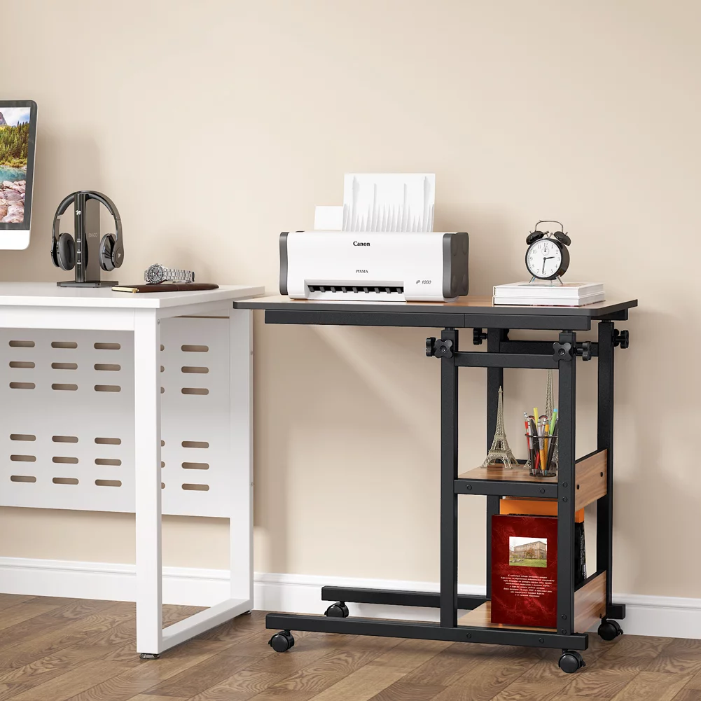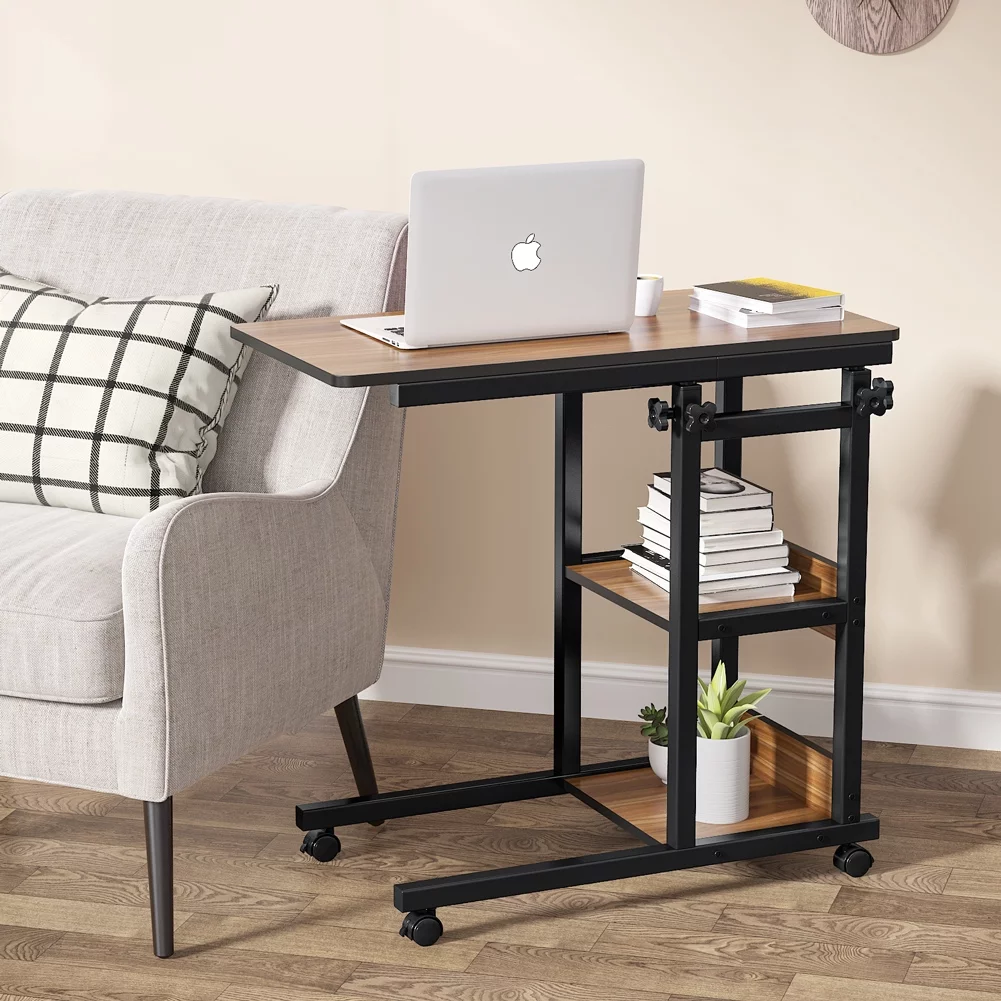 TribeSigns Overbed Bedside C Table Small Computer Desk Sofa Table with Storage Shelves, Mobile Couch Table Tray Snack TV Laptop Table with Wheels