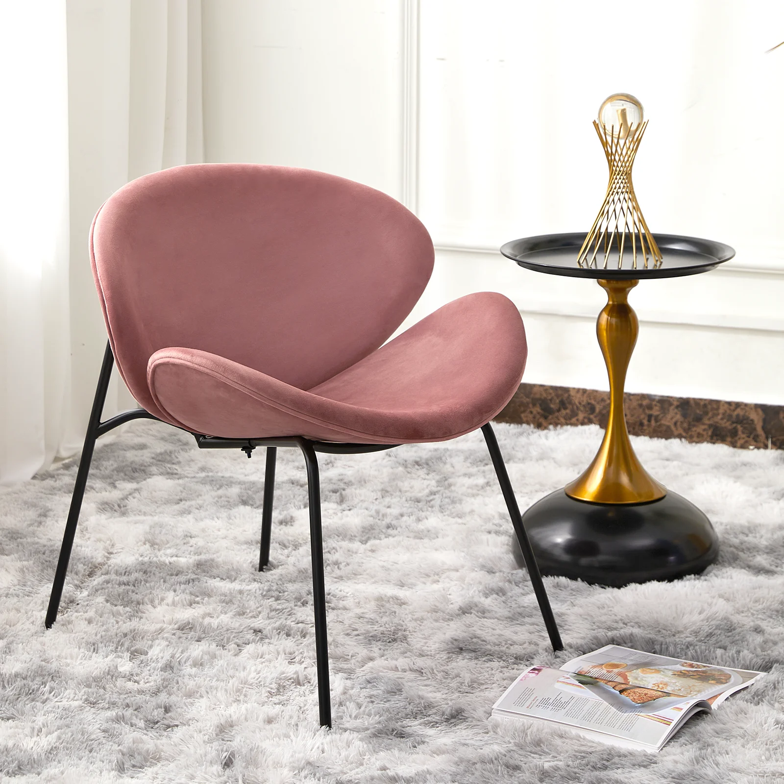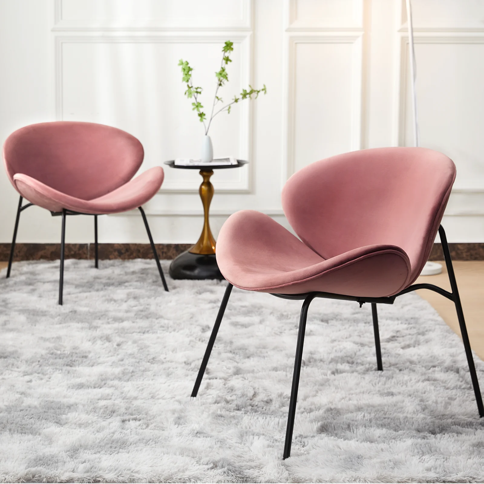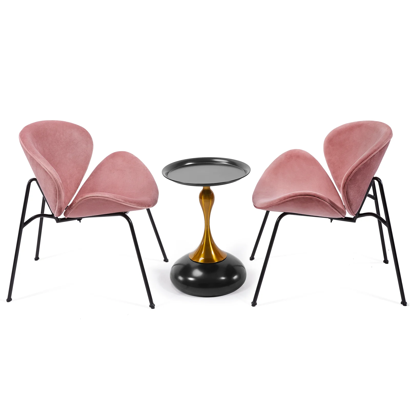 FAGAGA Velvet Accent Chair Set of 2 with End Table, Living Room Armless Chairs with Soft Seat for Bedroom Reading Room Waiting Room (Pink)