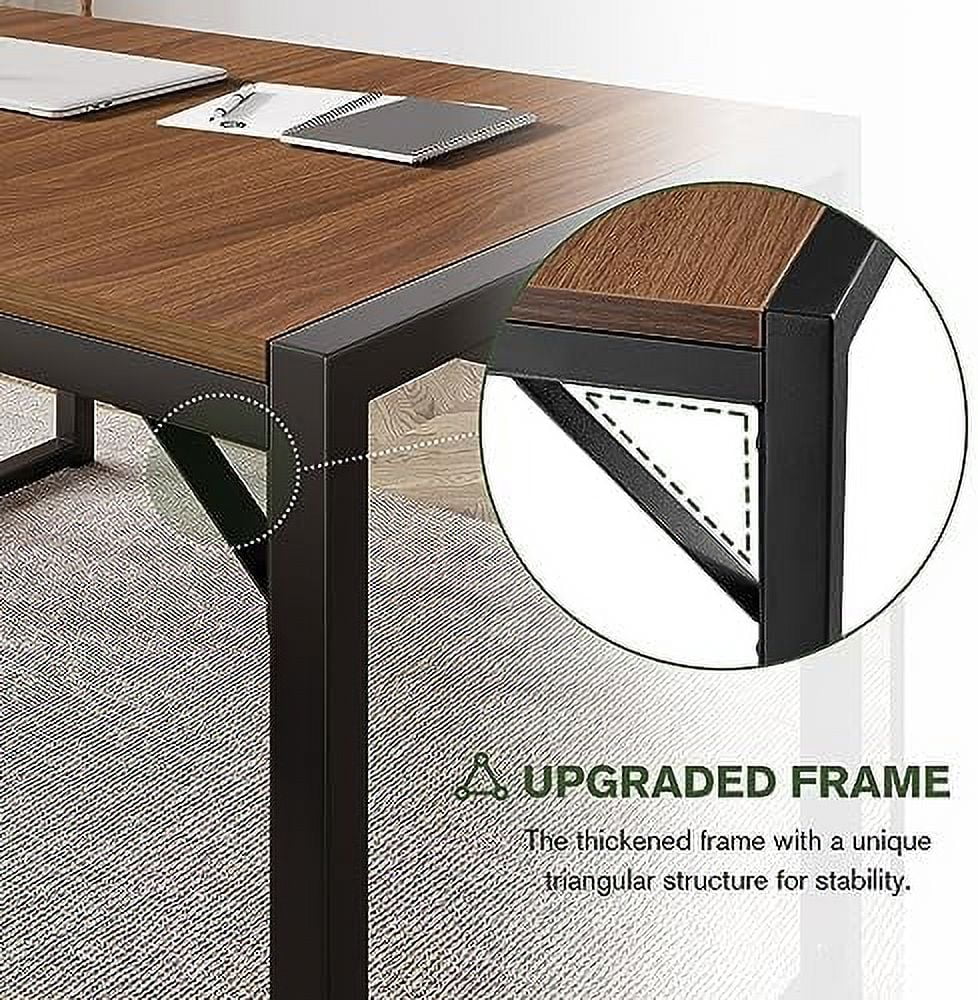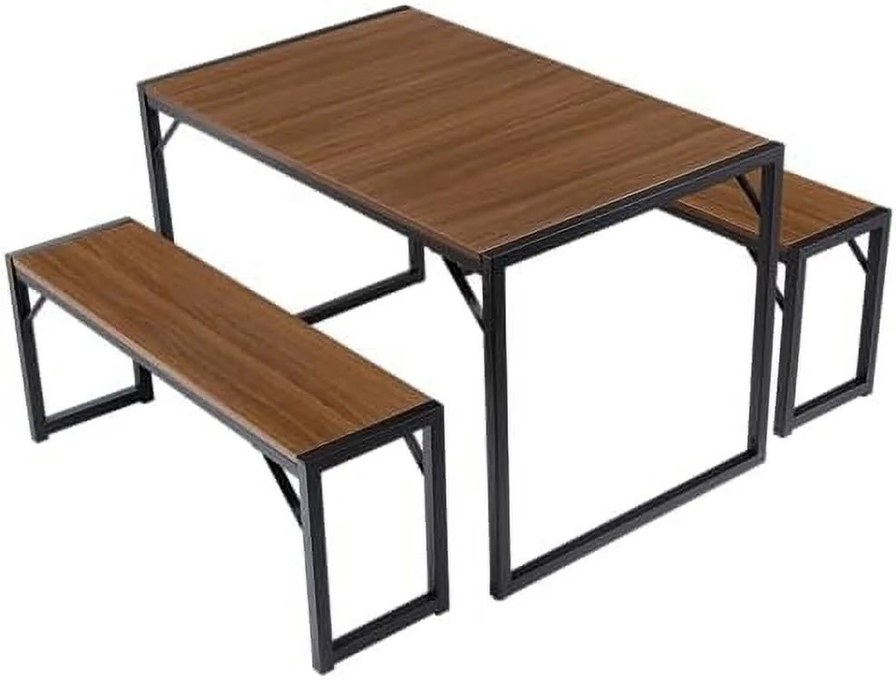 TJUNBOLIFE Dining Table Set for 4-6 Modern Rustic Table with Metal Frame and Wood Board for Kitchen & Dining Room with Benches Space-Saving Dinette for Small Space Black&Walnut 3