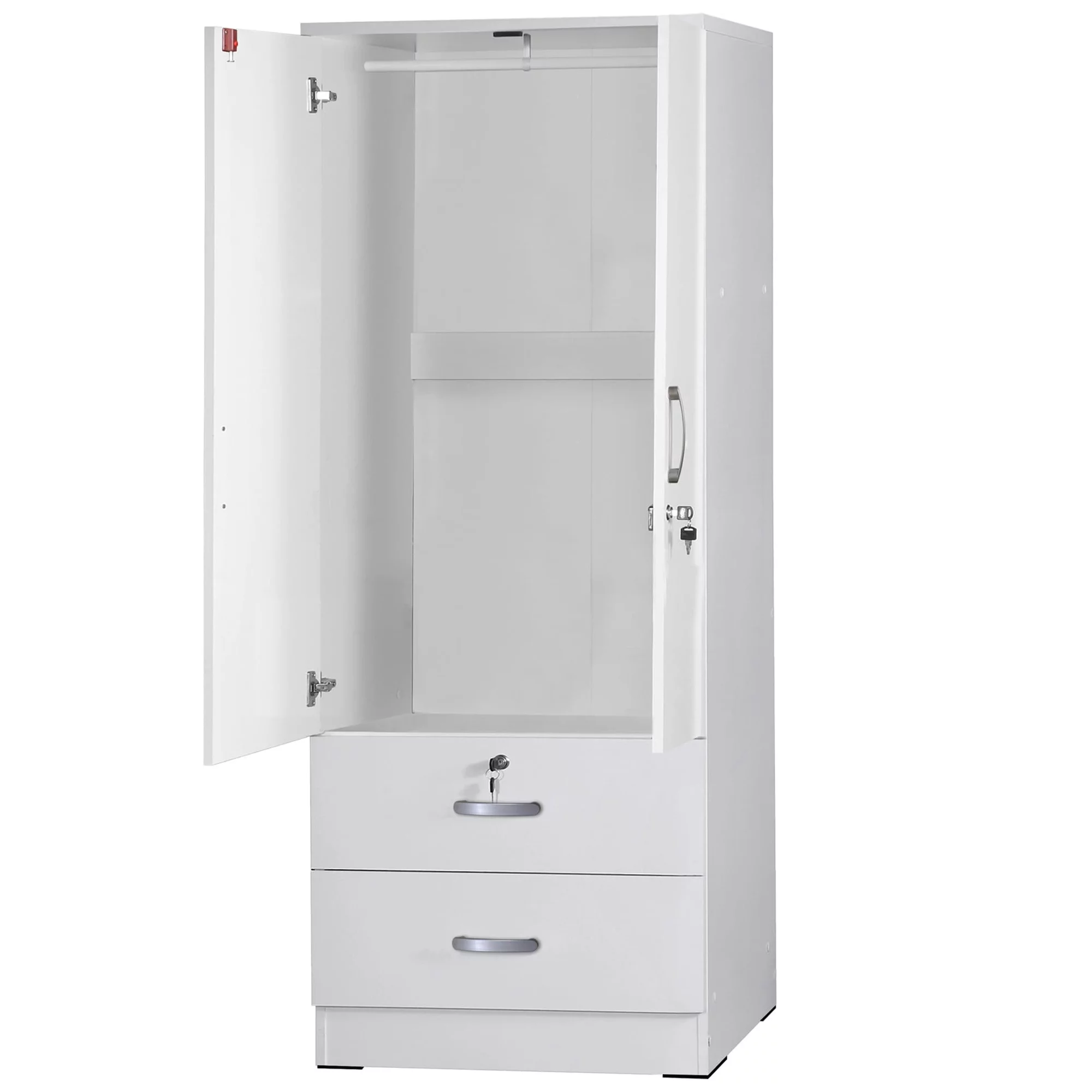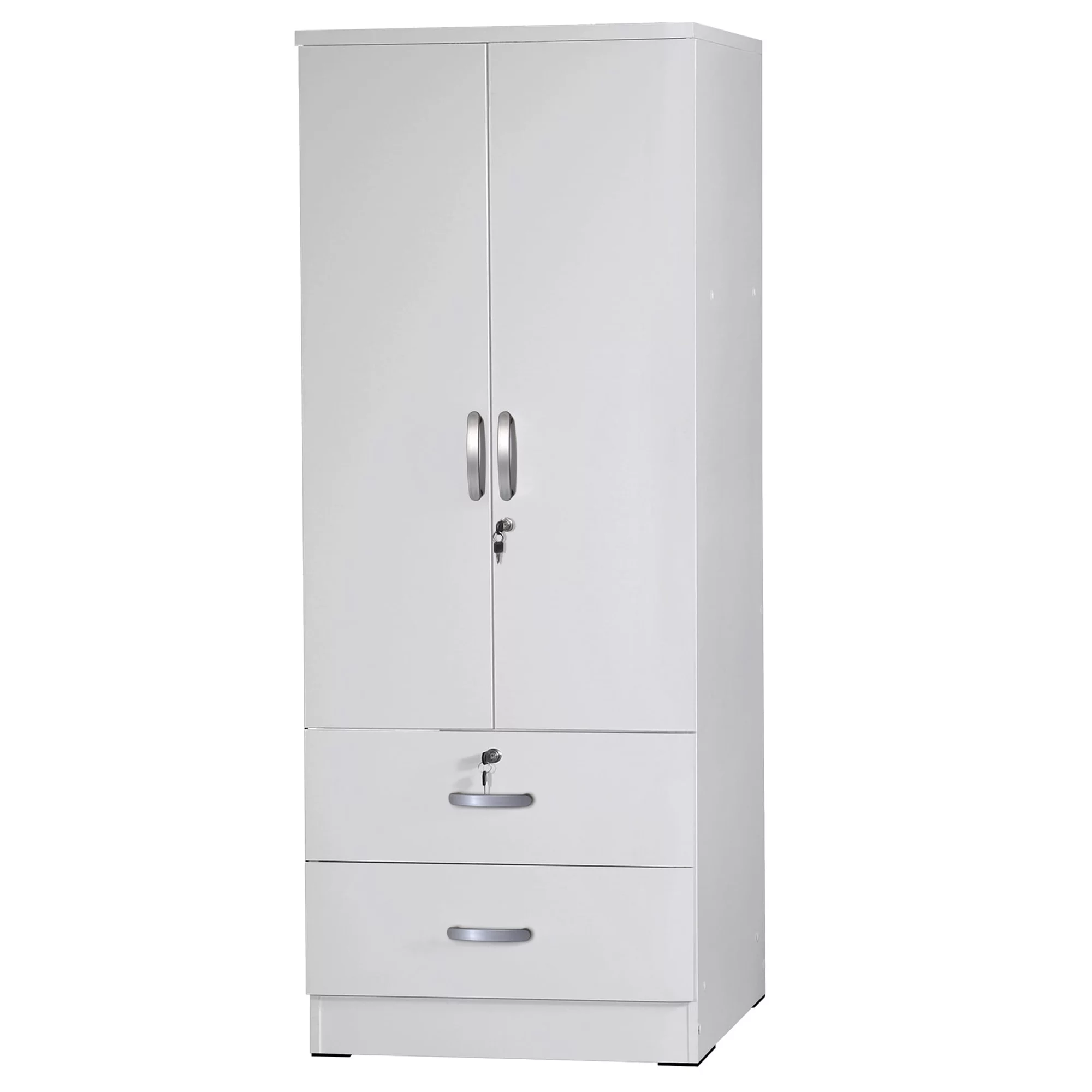 Better Home Products Grace Wood 2-Door Wardrobe Armoire with 2-Drawers in White
