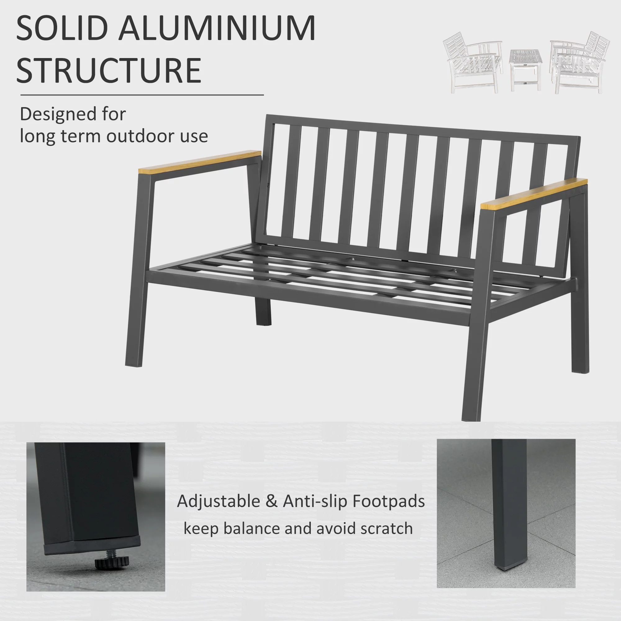 Outsunny 4 Piece Patio Furniture Set Aluminum Conversation Set Outdoor Garden Sofa Set w/ 2 Armchairs, Loveseat Sofa, Center Coffee Table, Cushions for Garden, Patio, Dark Gray