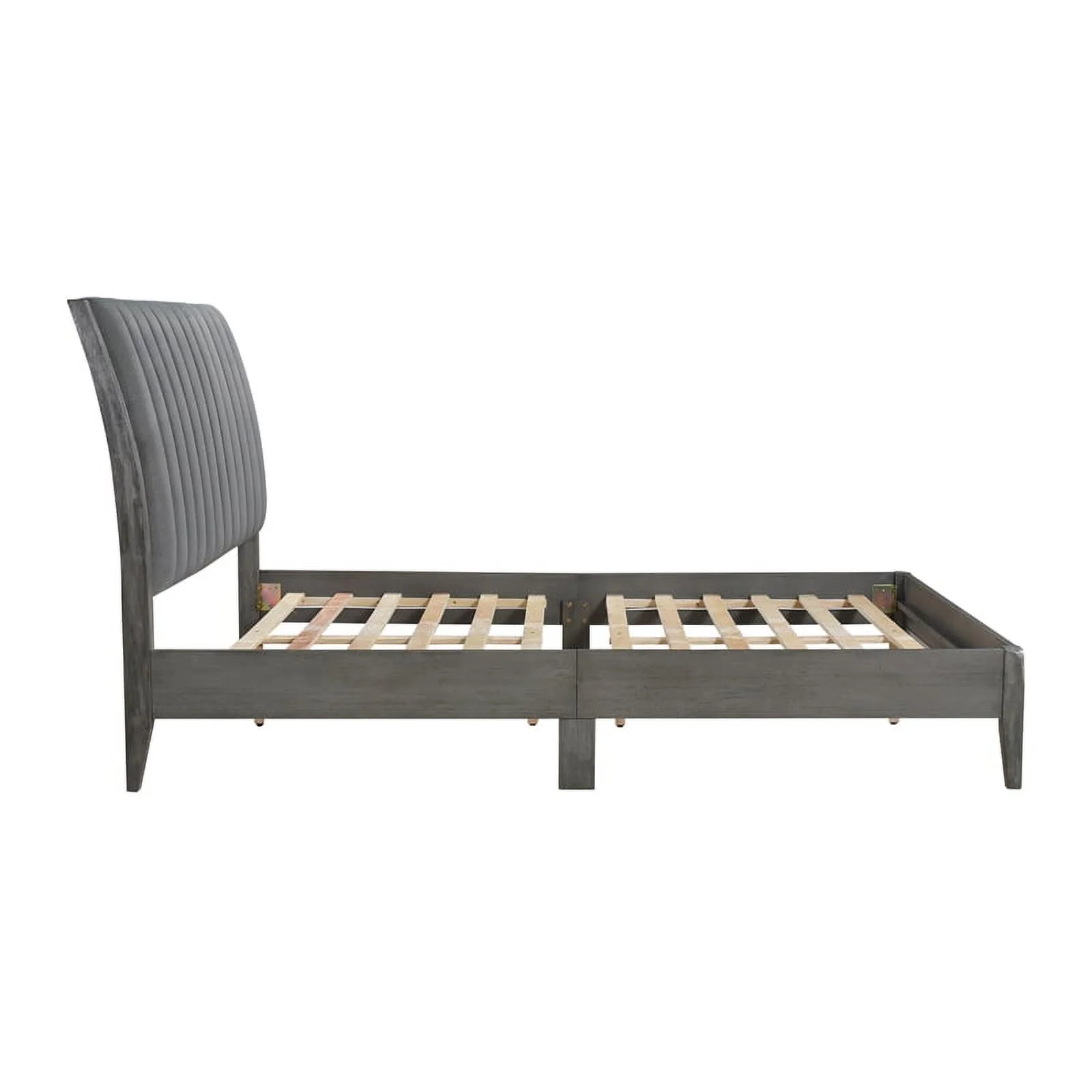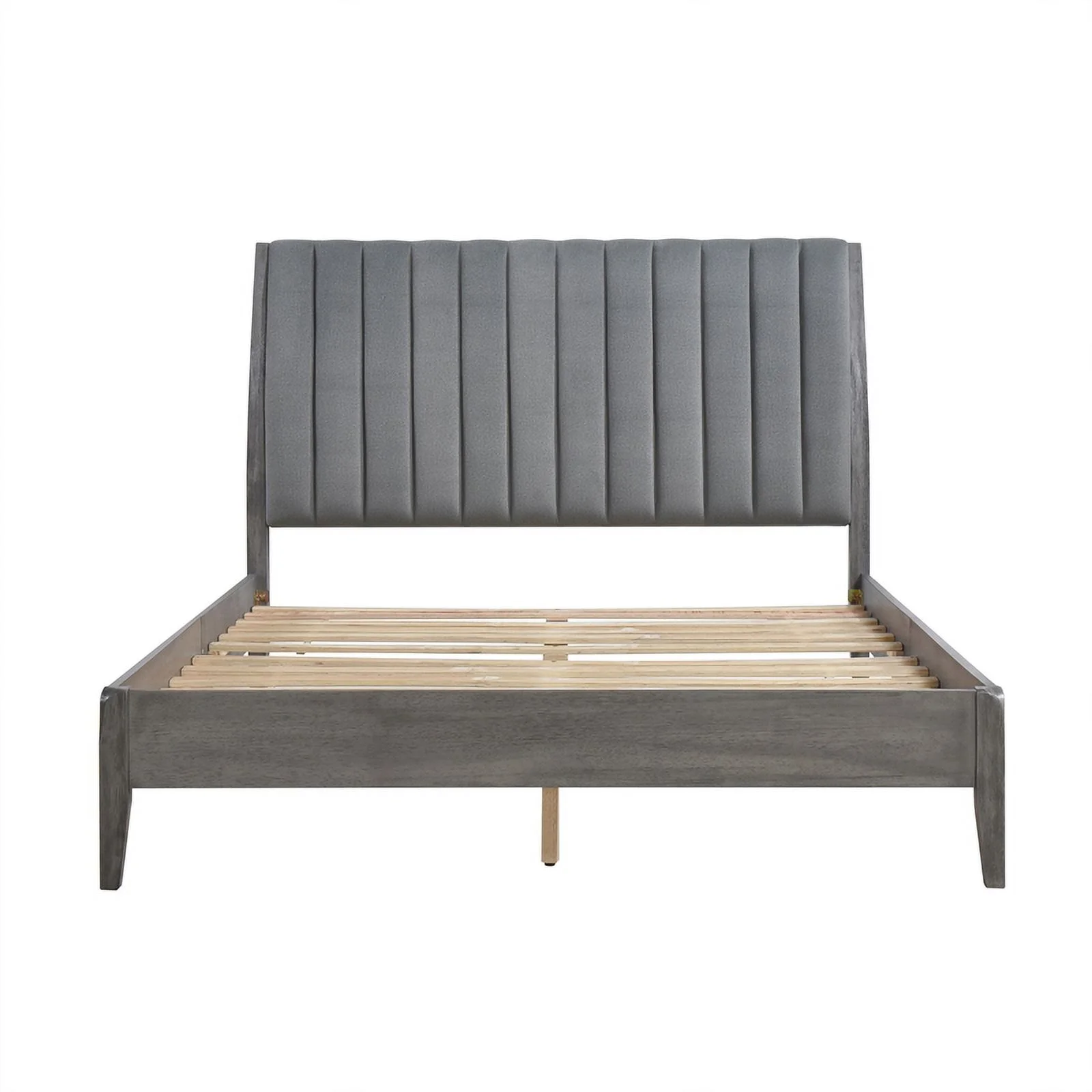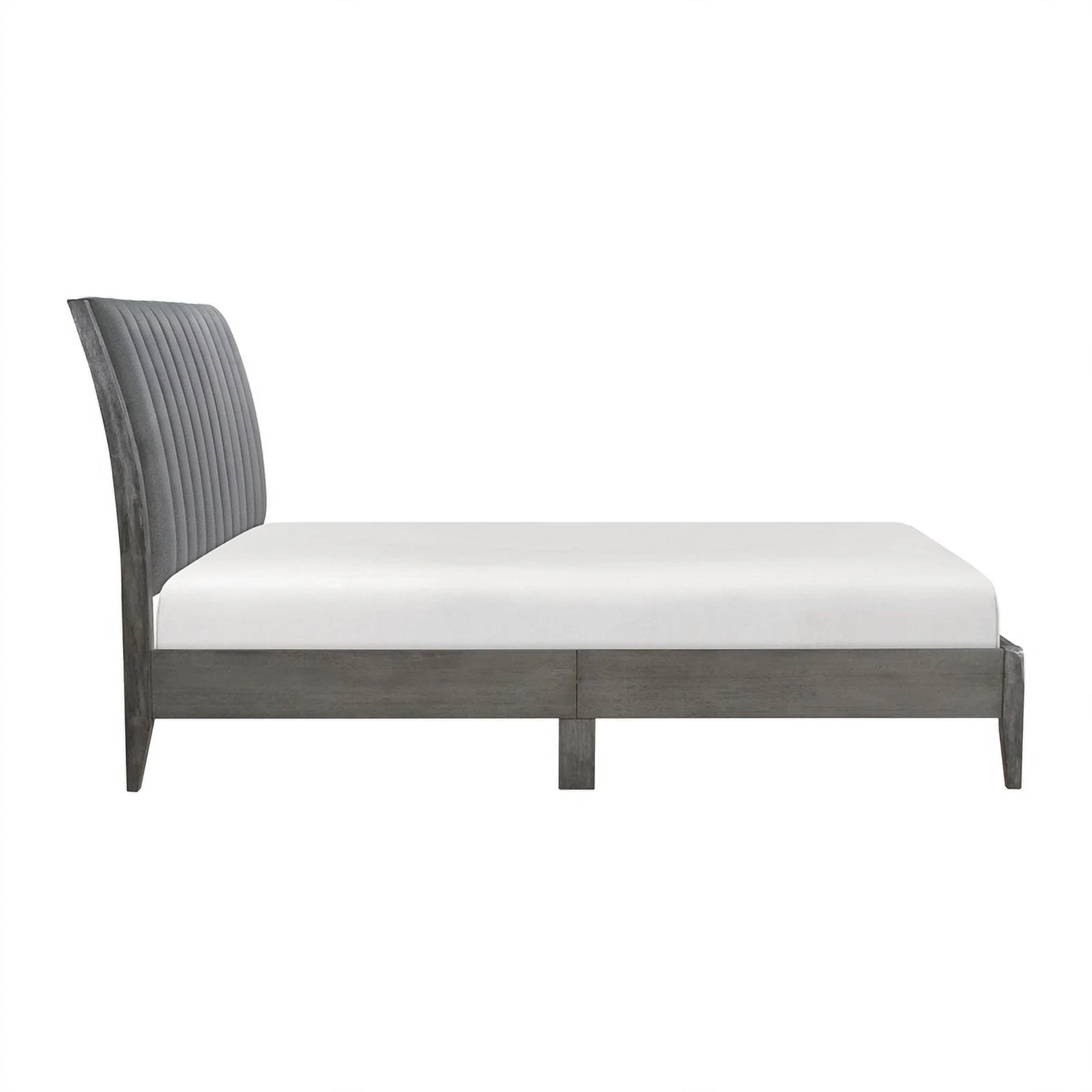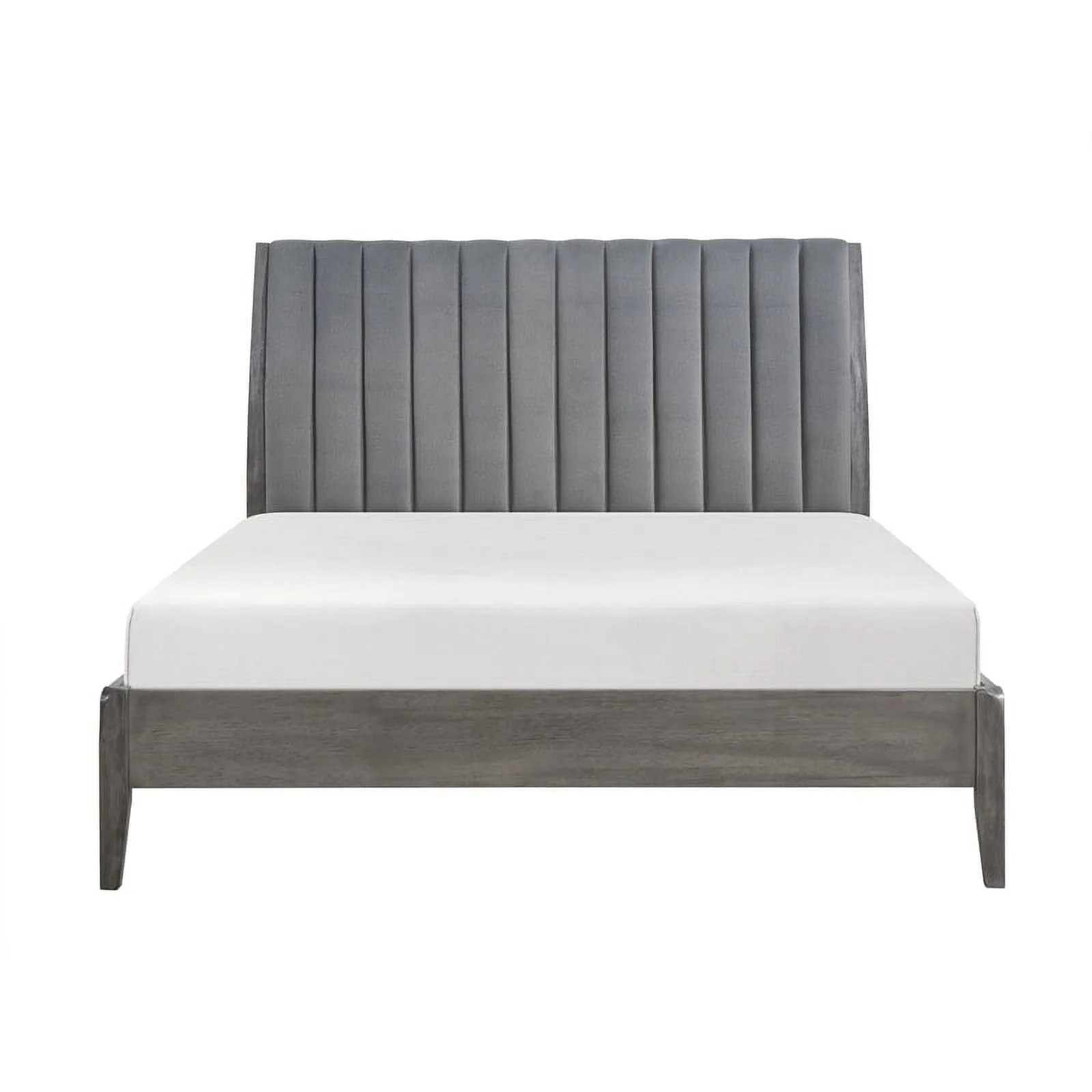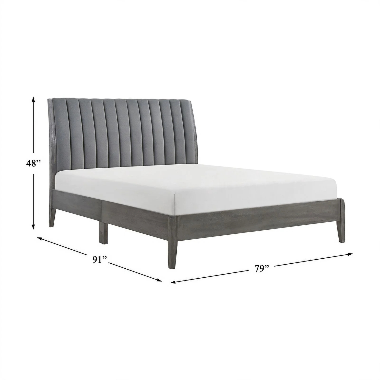 Pemberly Row Contemporary Wood & Velvet Eastern King Size Platform Bed in Gray