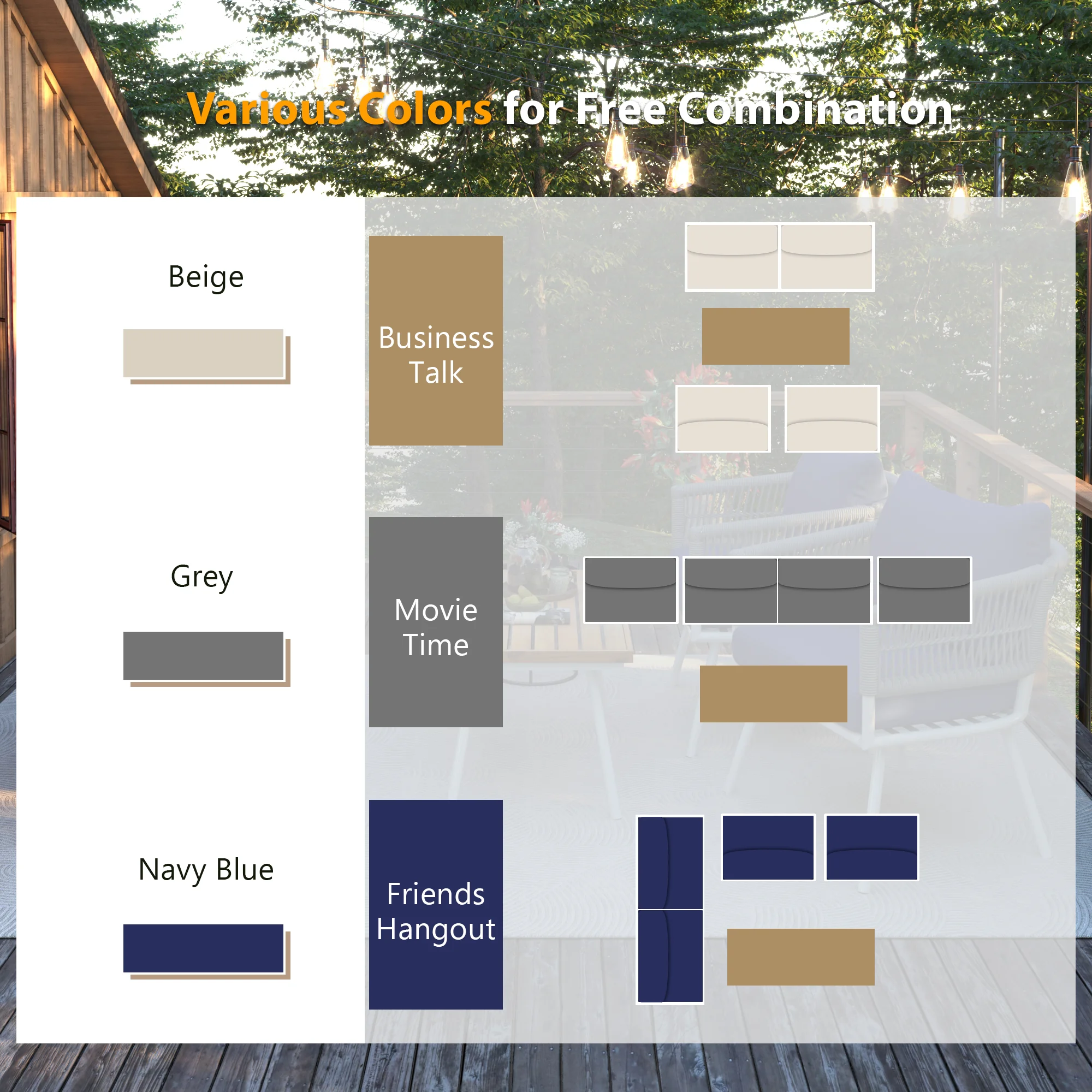 SEGMART 4 Piece Patio Conversation Set, Boho Rope Patio Furniture Set with Acacia Wood Table, All-Weather Outdoor Woven Rope Sofa Set with Thick Cushion for Porch Backyard Balcony, Navy Blue