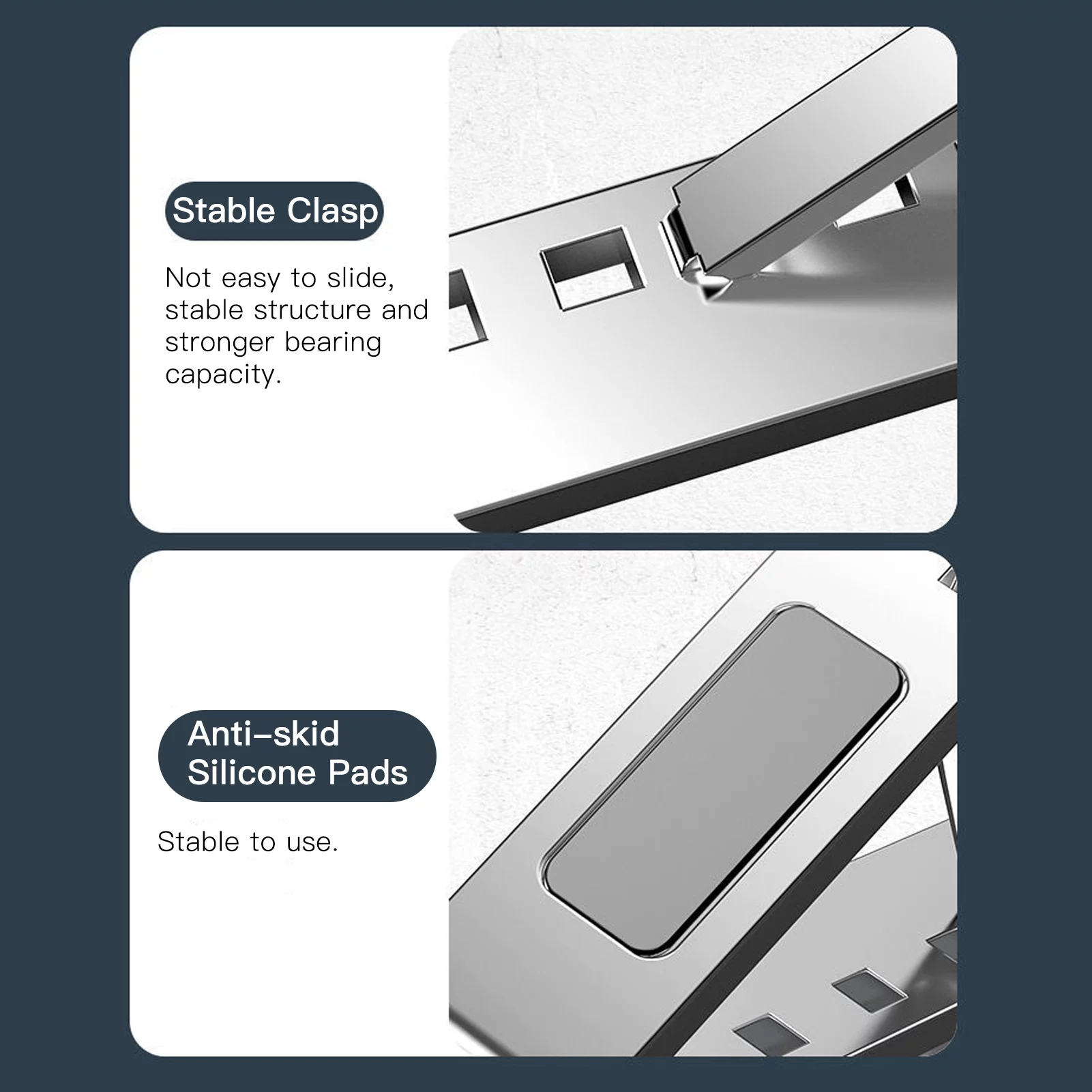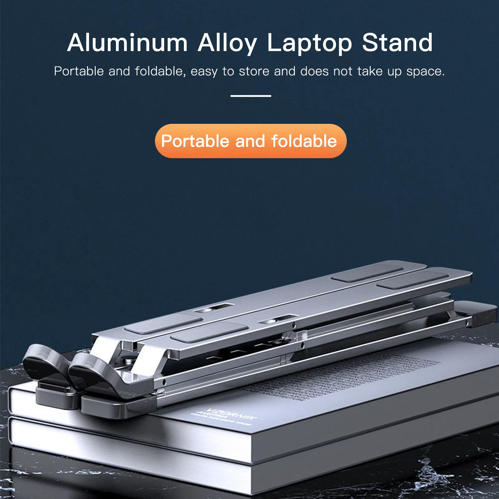 Meterk Portable Laptop Stand Ergonomic Aluminum Alloy Laptop Riser Double Height Adjustment Foldable Computer Notebook Holder Stand for 11-17 Inches Laptop Tablet