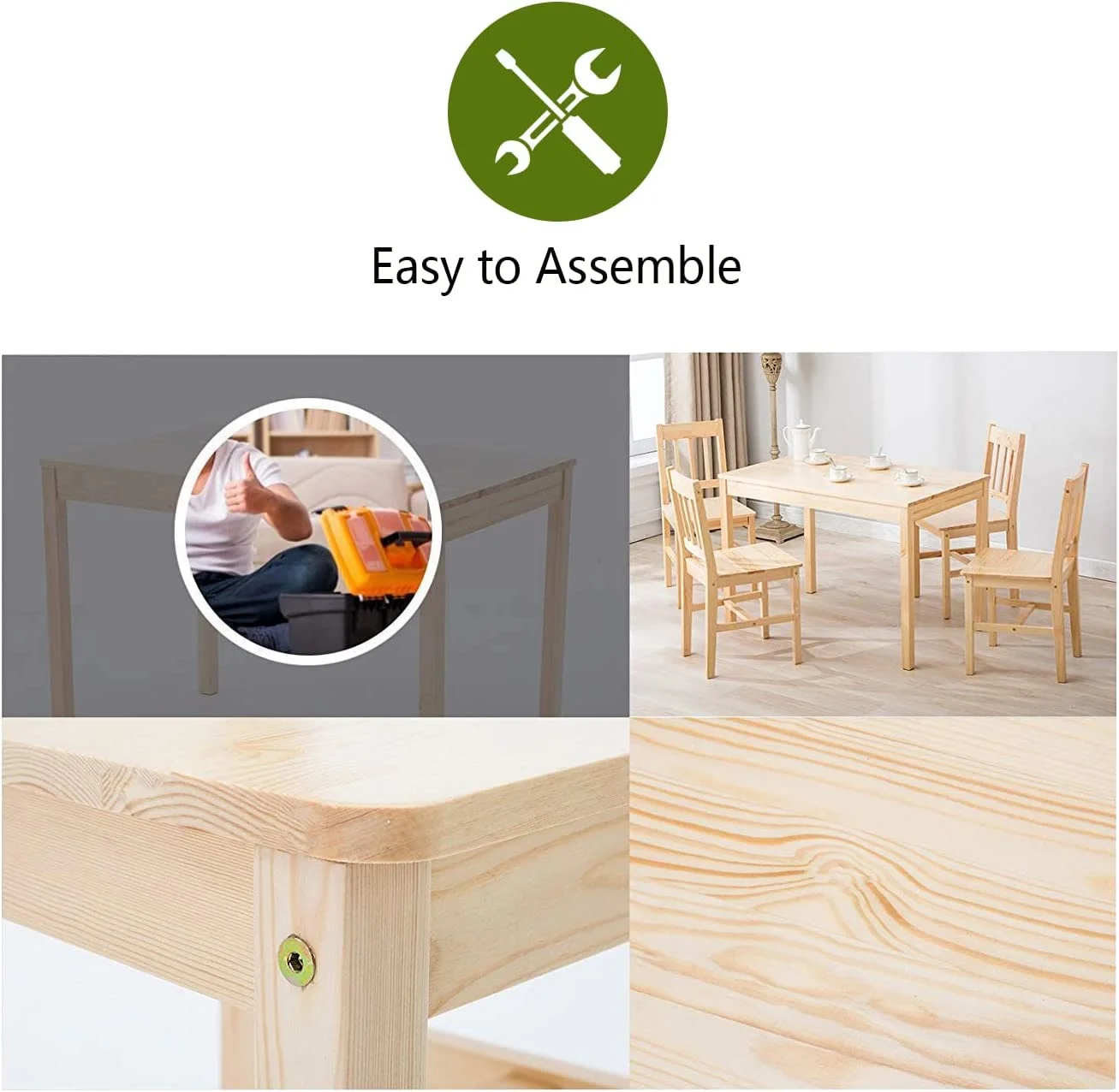 RUNFAYBIU Dining Table Set for 4 Pine Wood Kitchen Table and Chairs for Dining Room Table Set for Small Space Wood Kitchen Dinette Table with 4 Chairs