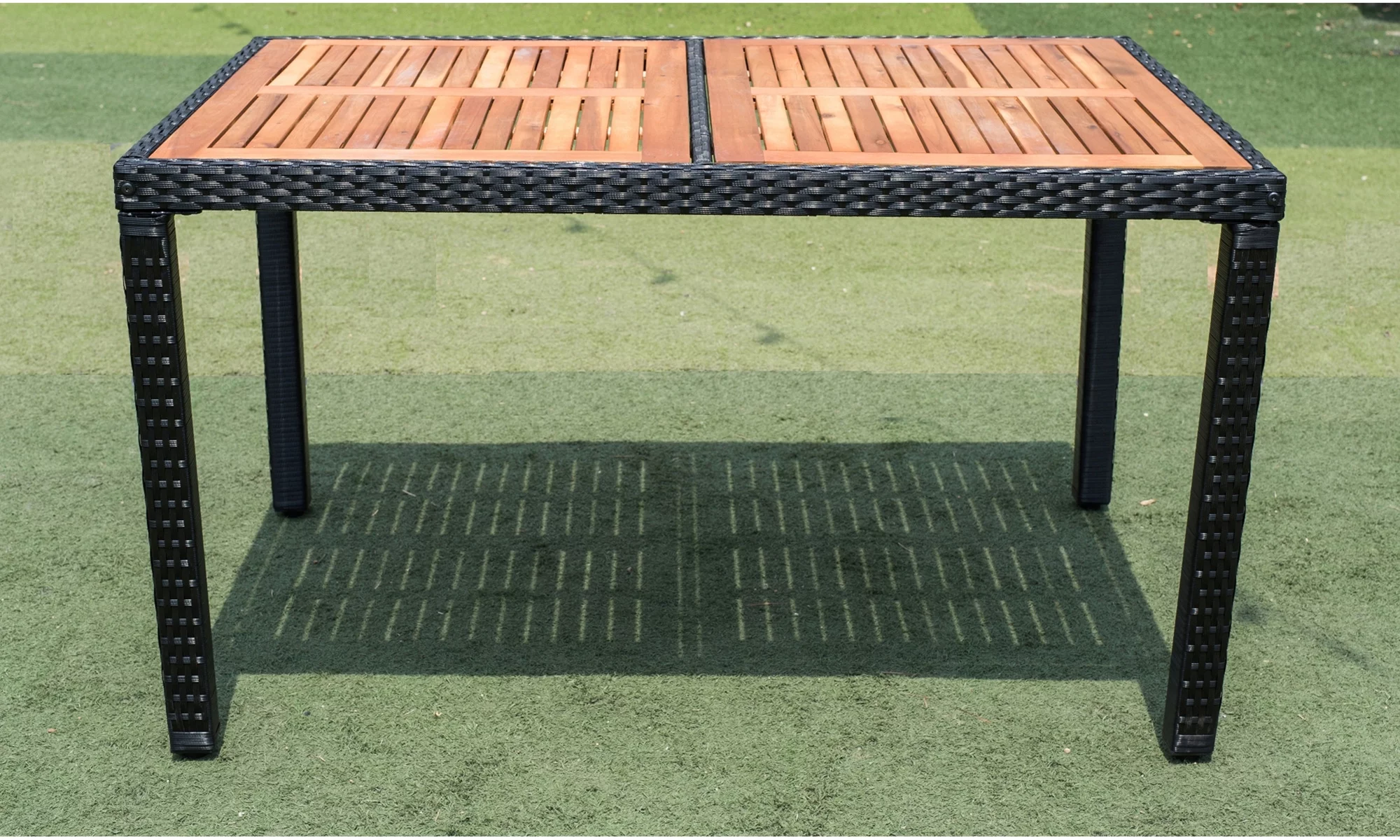 7 piece Outdoor Patio Wicker Dining Set Patio Wicker Furniture Dining Set w/Acacia Wood Top