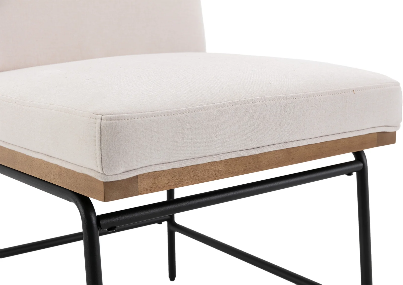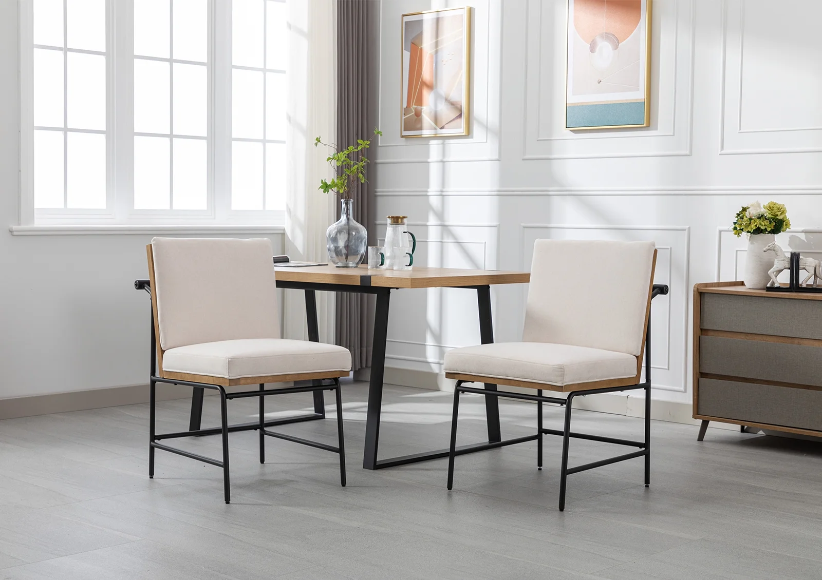 Dayalane Modern Dining Chair Set of 2, Linen Upholstered Armless Side Chairs, Comfy Kitchen Chairs with Rear Handle and Metal Legs for Dining Room Living Room Kitchen, White
