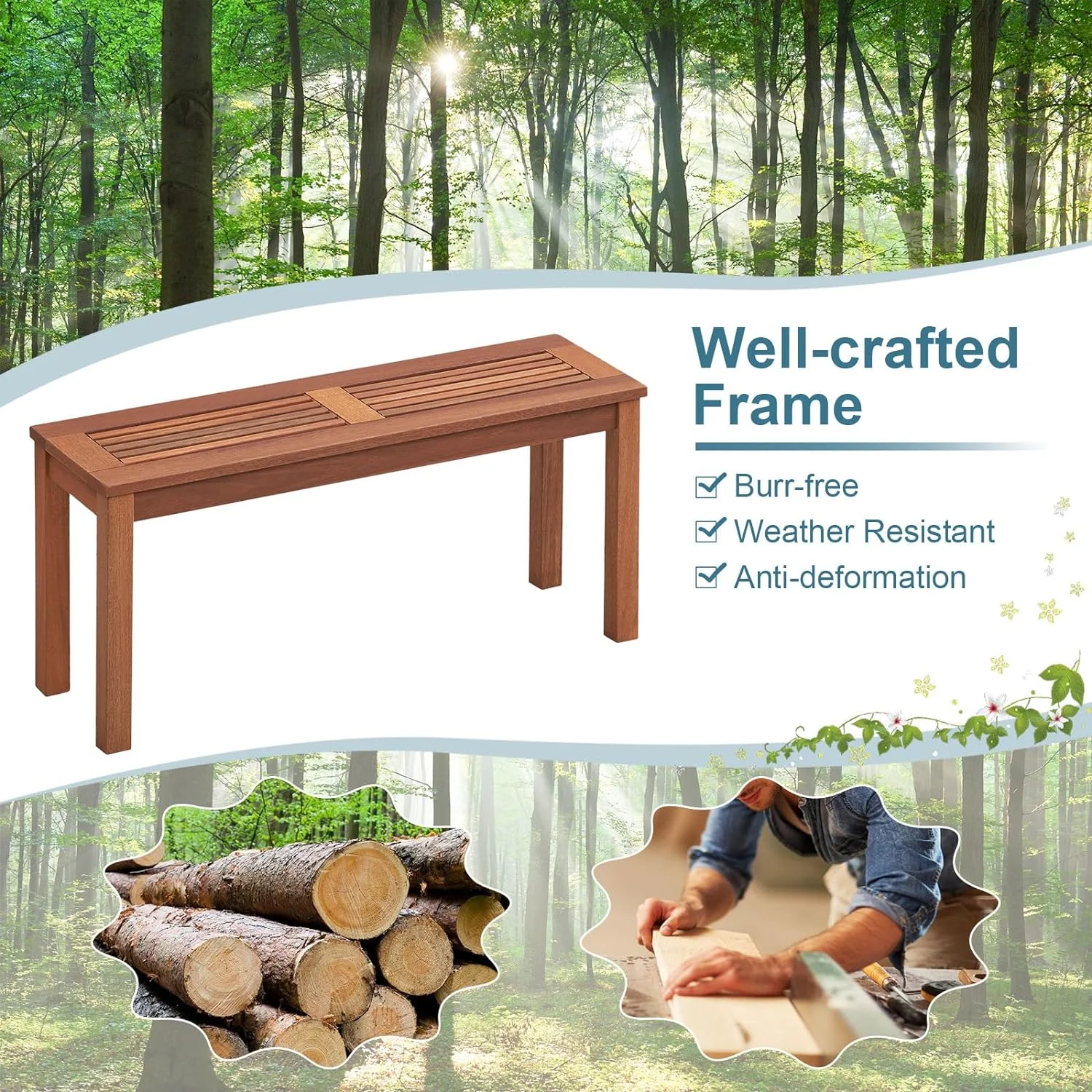 Wooden Outdoor Bench - Patio Bench With Slatted Seat, Weather Resistant Solid Wood Frame, Garden Bench, 2 Seater Park Bench For Deck, Poolside, Balcony, Porch, Lawn, Outside Bench (1)
