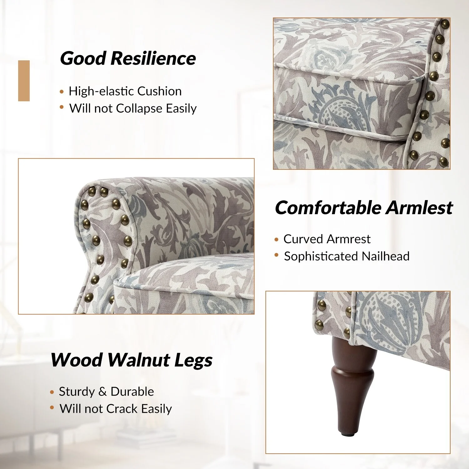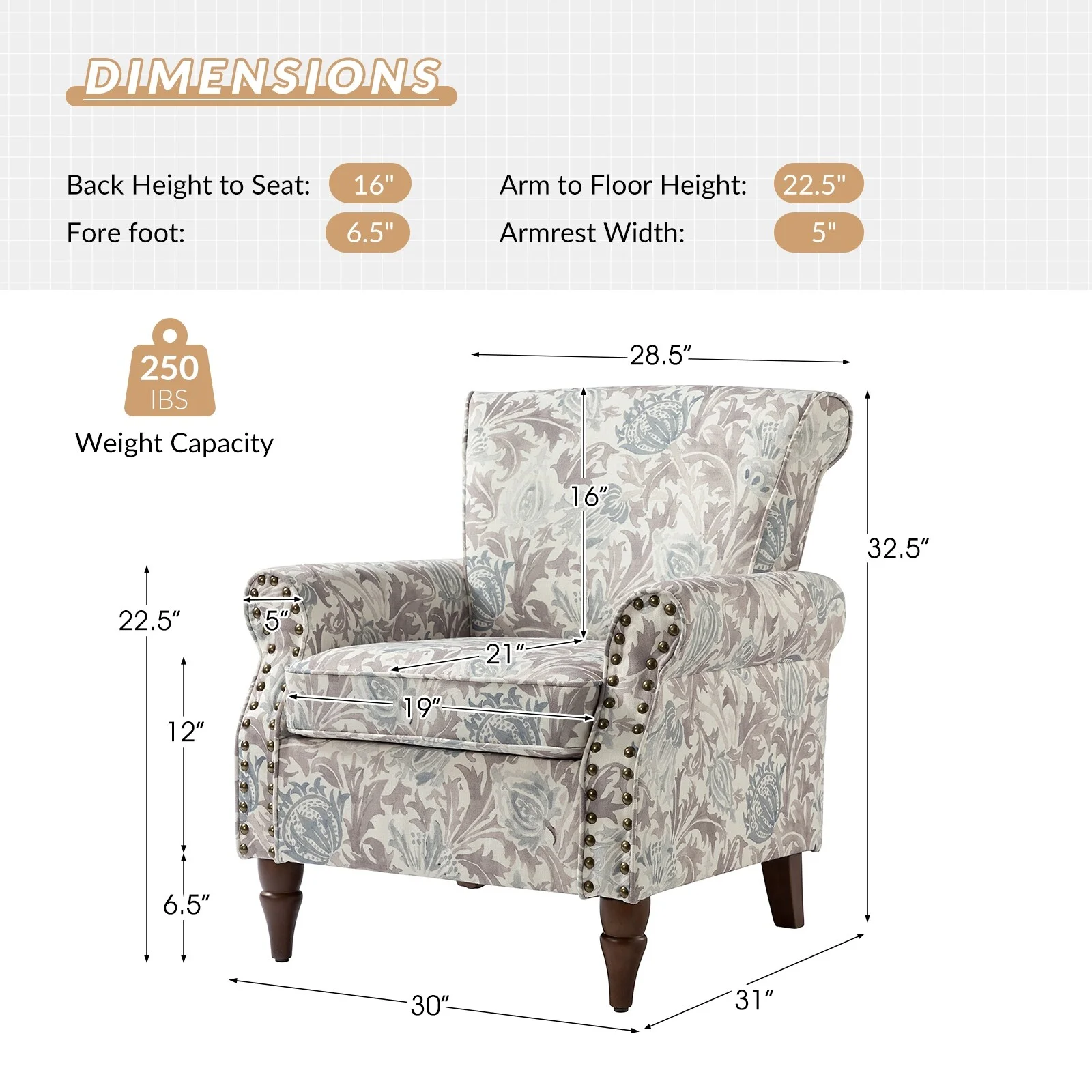 HULALA HOME Avelina Upholstered Accent Armchair Floral Pattern with Nailhead Rolled Arms Set of 2 Grey Floral Modern & Contemporary, Traditional